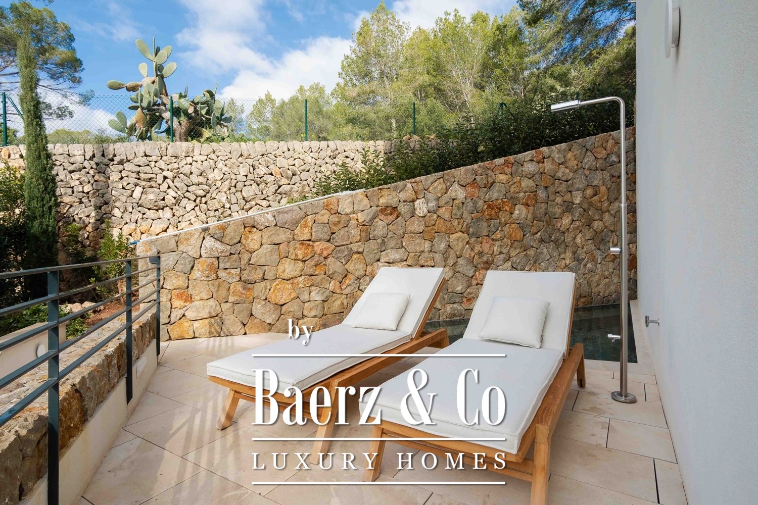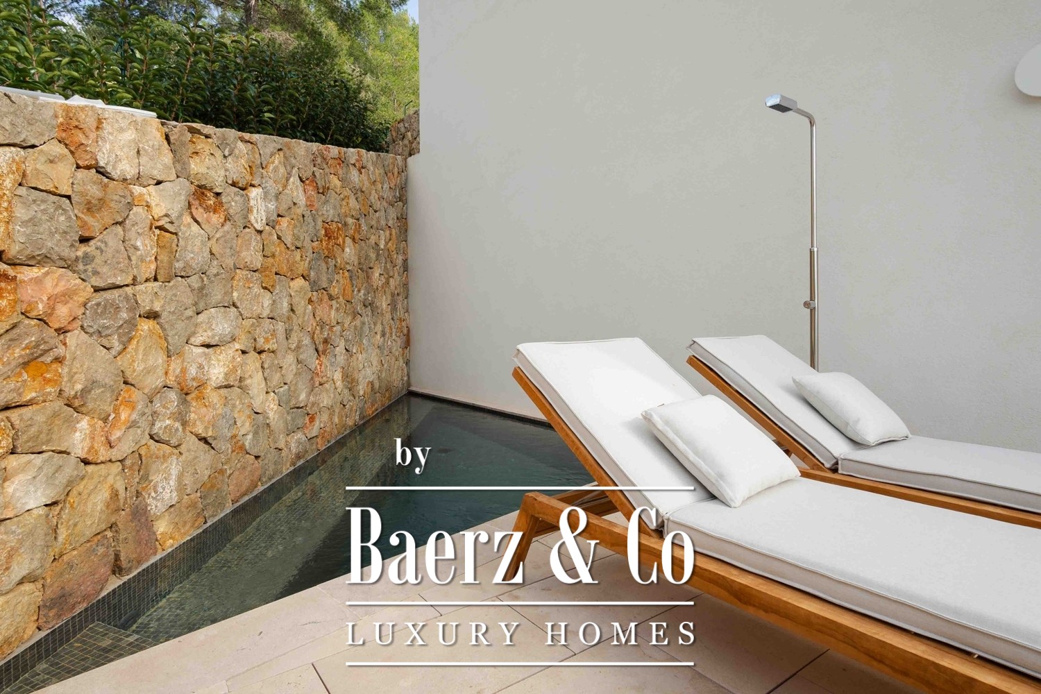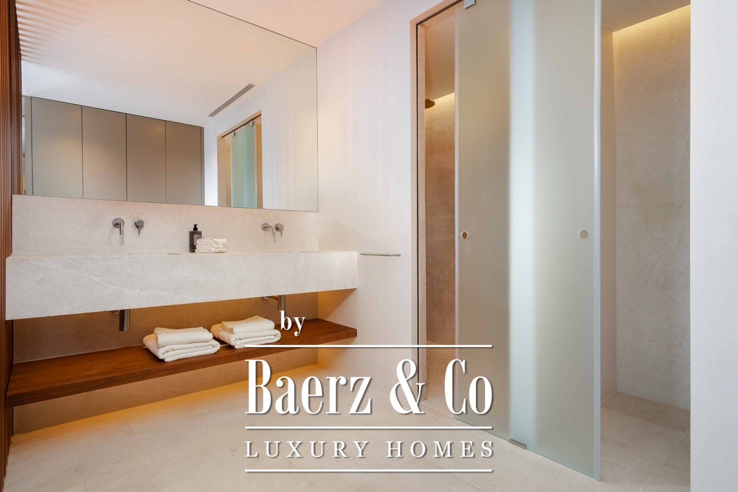 A Miele-equipped kitchen blends performance with elegance. Living comfort is elevated with underfloor heating, air conditioning, and double-glazed windows, while LG entertainment and Bang & Olufsen audio set the stage for everyday ease. The main terrace adjoins the living area, featuring a private pool for sunlit afternoons and gatherings. Descend to a secondary terrace with a full outdoor kitchen and lounge, extending life outdoors. A private garden enhances the sense of seclusion and green tranquility.