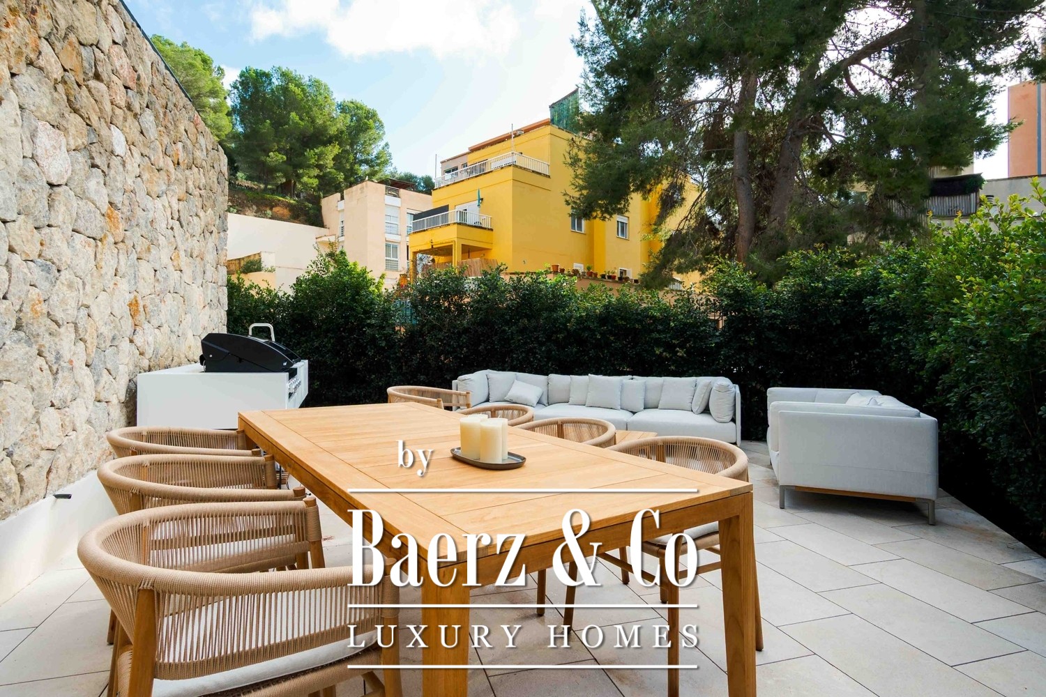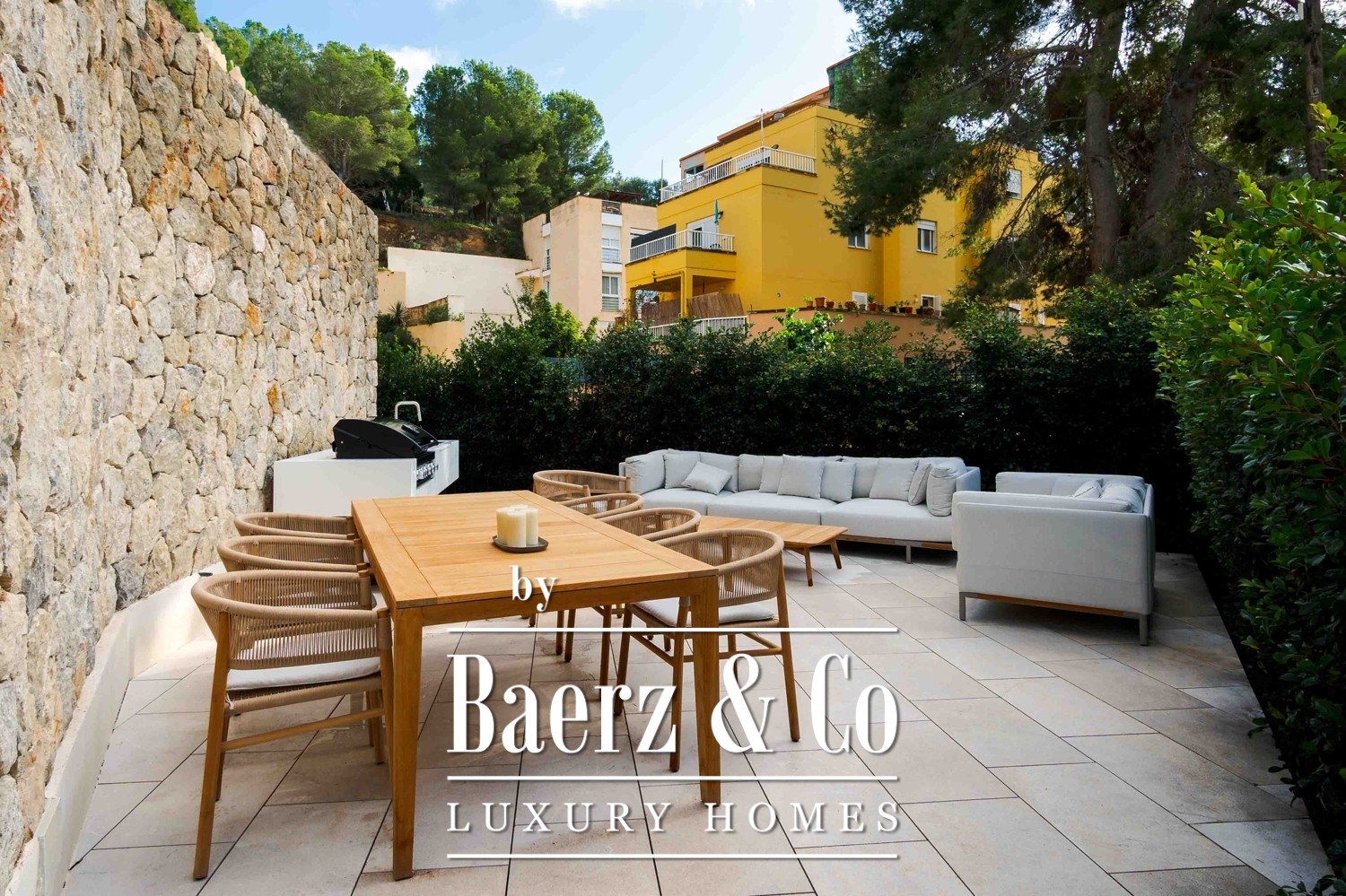 Apartment Palma De Mallorca invites a quiet pace of Mediterranean living in the hills of Cala Major. This ground-floor residence is shaped by seamless transitions between a refined modern interior and expansive private outdoor spaces. The open-plan living and dining area is suffused with natural light through floor-to-ceiling windows, inviting the outside in. Here, 97 m² of thoughtfully designed space include two well-proportioned bedrooms and two bathrooms, highlighted by bespoke Mallorcan carpentry and Italian furnishings.