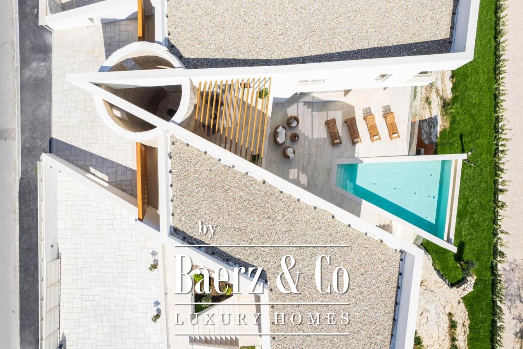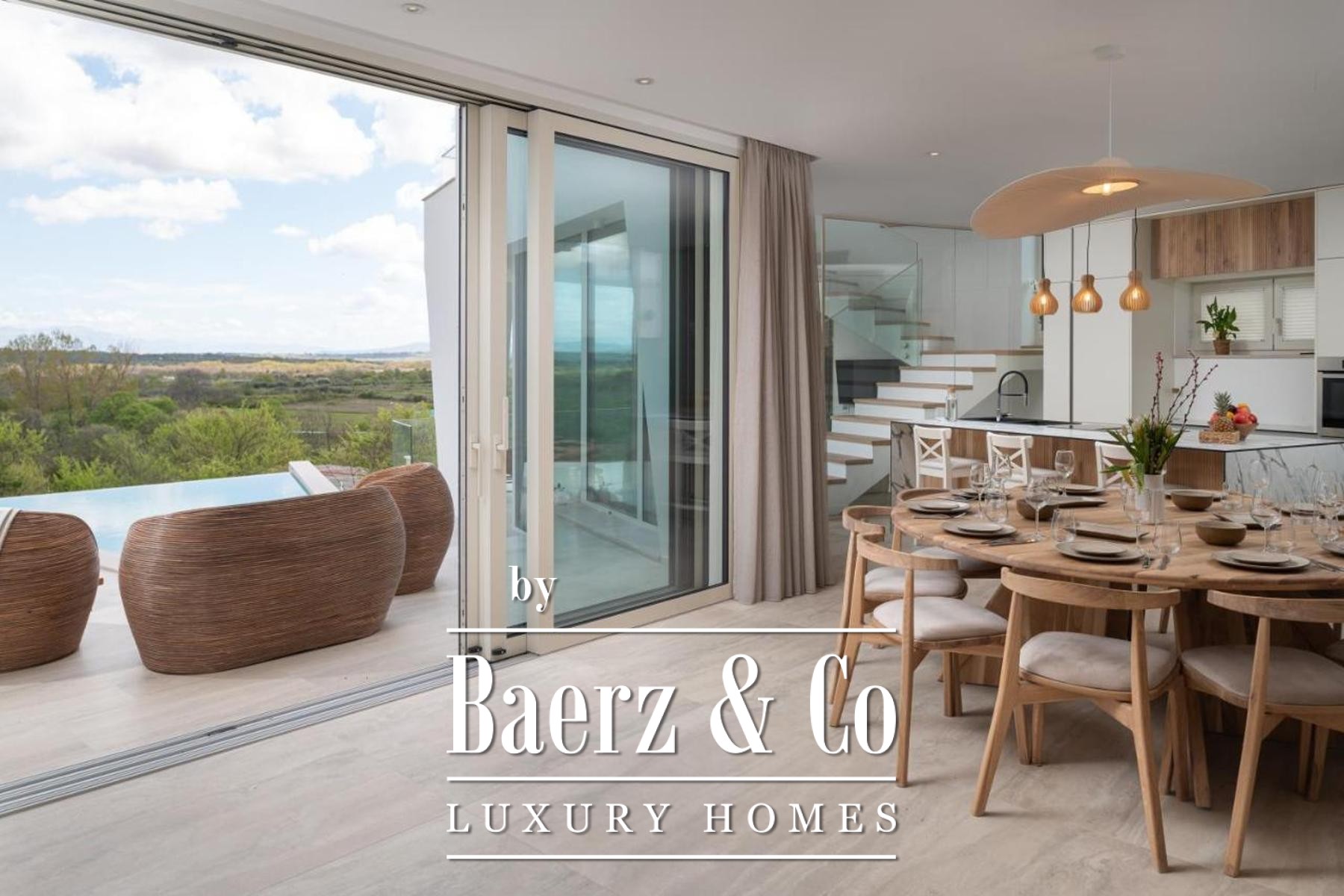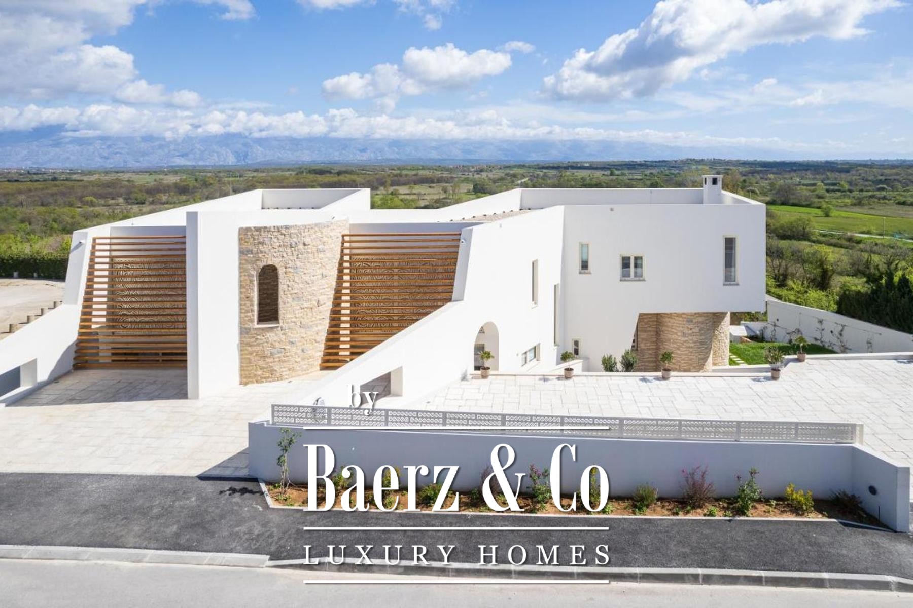 Modern villa Poličnik captures a thoughtful intersection of refined architecture and sweeping natural vistas. This modern villa Poličnik unveils 414 m² of living space, curated to balance sophisticated design with the tranquil rhythm of its surroundings near Zadar. Set on a 1,191 m² plot, the property features a meticulously designed outdoor area, including six private parking spaces, expansive terraces, and a pool that basks in generous light.