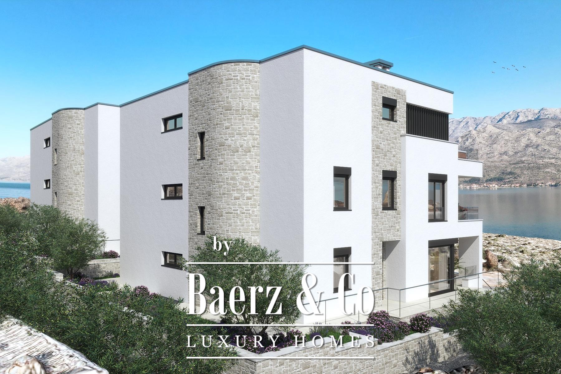 Villa Posedarje with Expansive Sea and Mountain Views offers a rare intersection of architectural clarity and coastal serenity in the sought-after enclave of Vinjerac, Zadar. This modern villa spans approximately 440 m², set on a meticulously landscaped plot of 480 m², just one row from the sea. Floor-to-ceiling windows and graceful transitions create a sustained dialogue with the panorama of the Adriatic, Velebit massif, and the Paklenica National Park.