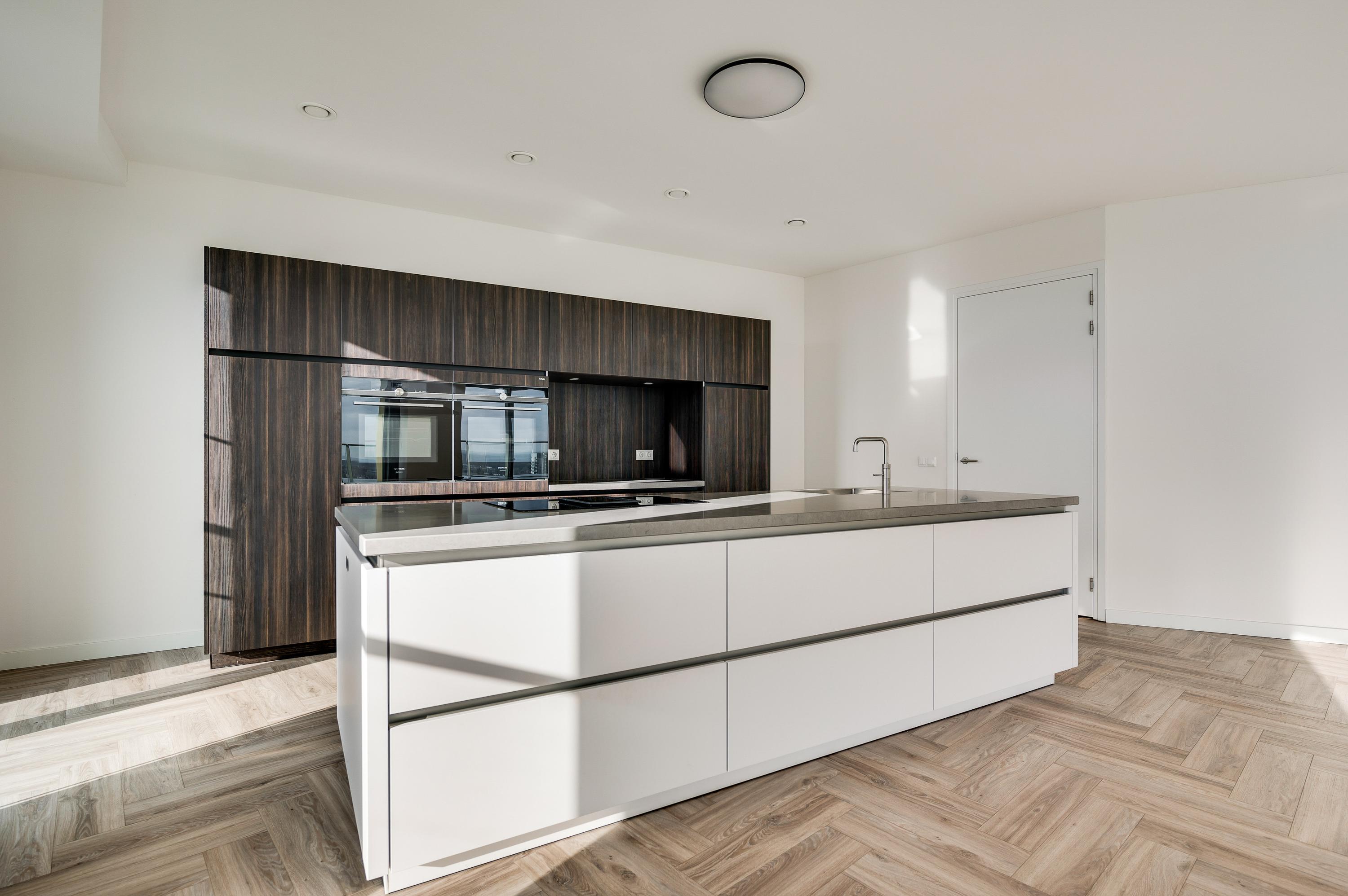 14th floor: Entrance/hallway with access to the various rooms including a separate toilet, the technology room, three bedrooms, two bathrooms and the living and dining room. The spacious living room with luxury kitchen provides space for a large party, with both a spacious seating and dining area. The kitchen is equipped with various Siemens appliances such as: combi oven/microwave, steam oven, induction hob with extractor fan, dishwasher, freezer, quooker and fridge. The floor-to-ceiling windows mean you always enjoy beautiful views.