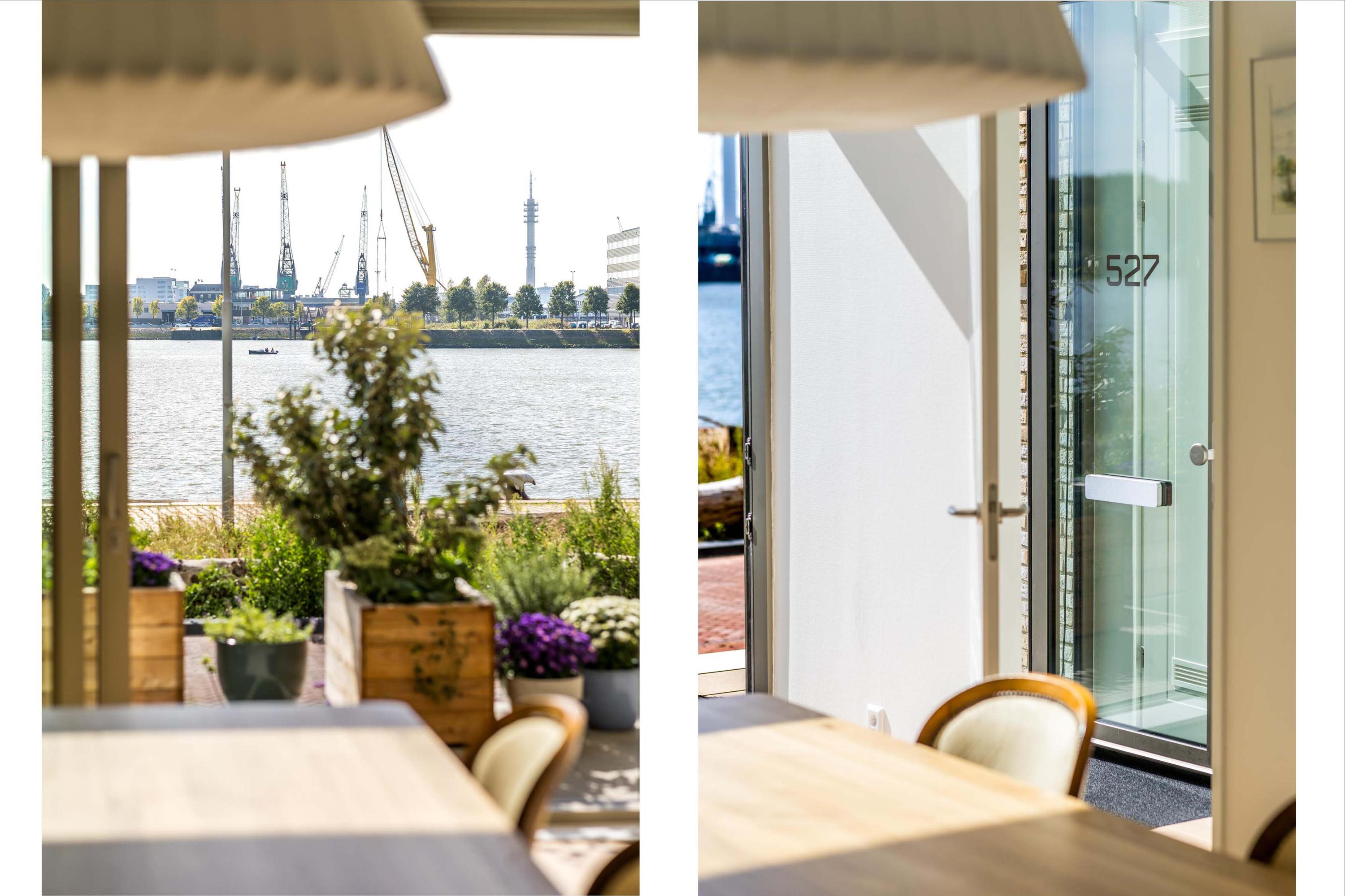 A living painting in your window every day: this spacious and stylishly finished apartment on the Lloydkade offers luxury, space, and panoramic views of the Maas River from sunrise to sunset.