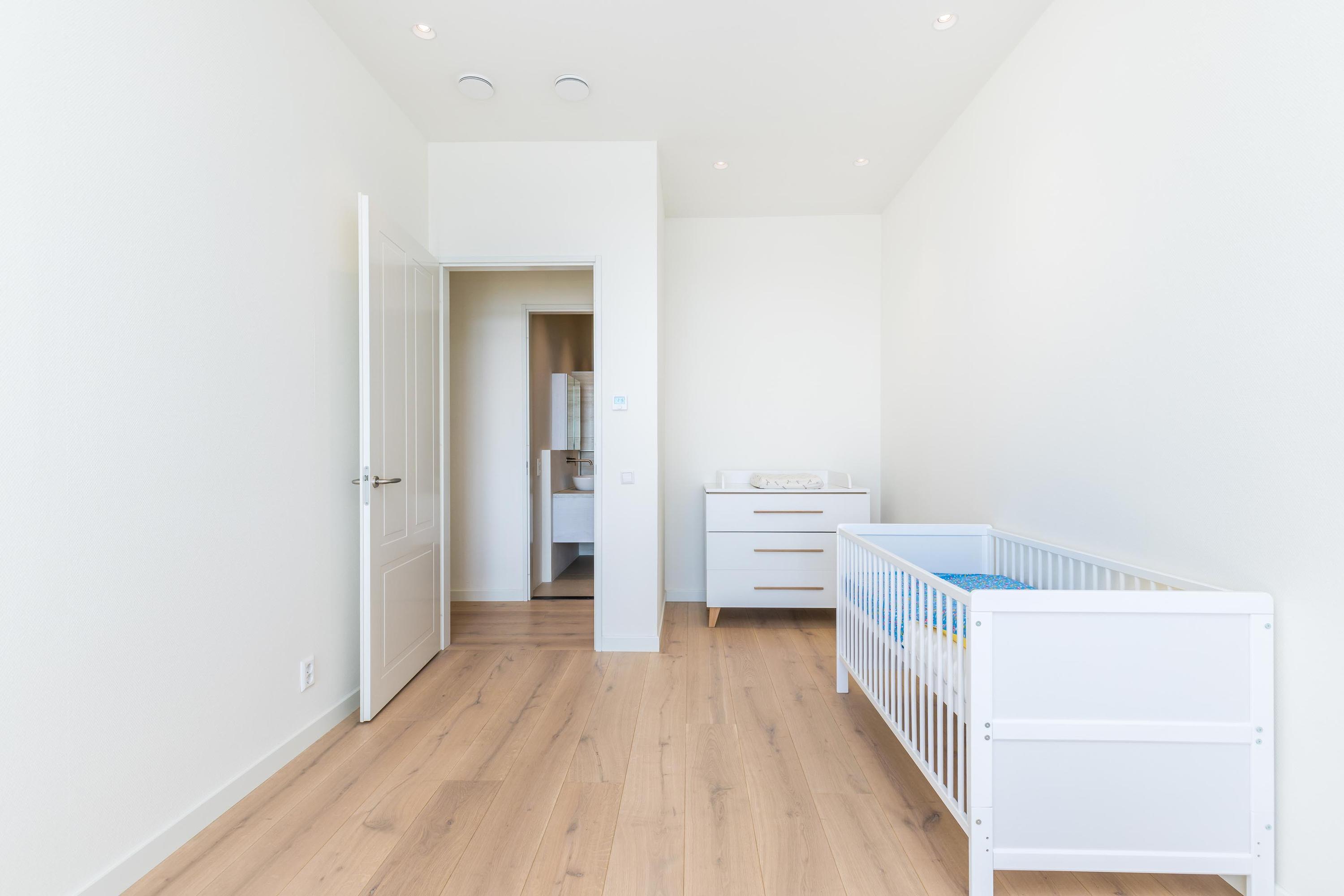 The first floor is designed as a living area and offers a generous living room with floor-to-ceiling windows, seamlessly integrating the waterfront view into your interior. All bedrooms and the living room overlook the Maas River. There are currently two bedrooms, but a third is easily possible.