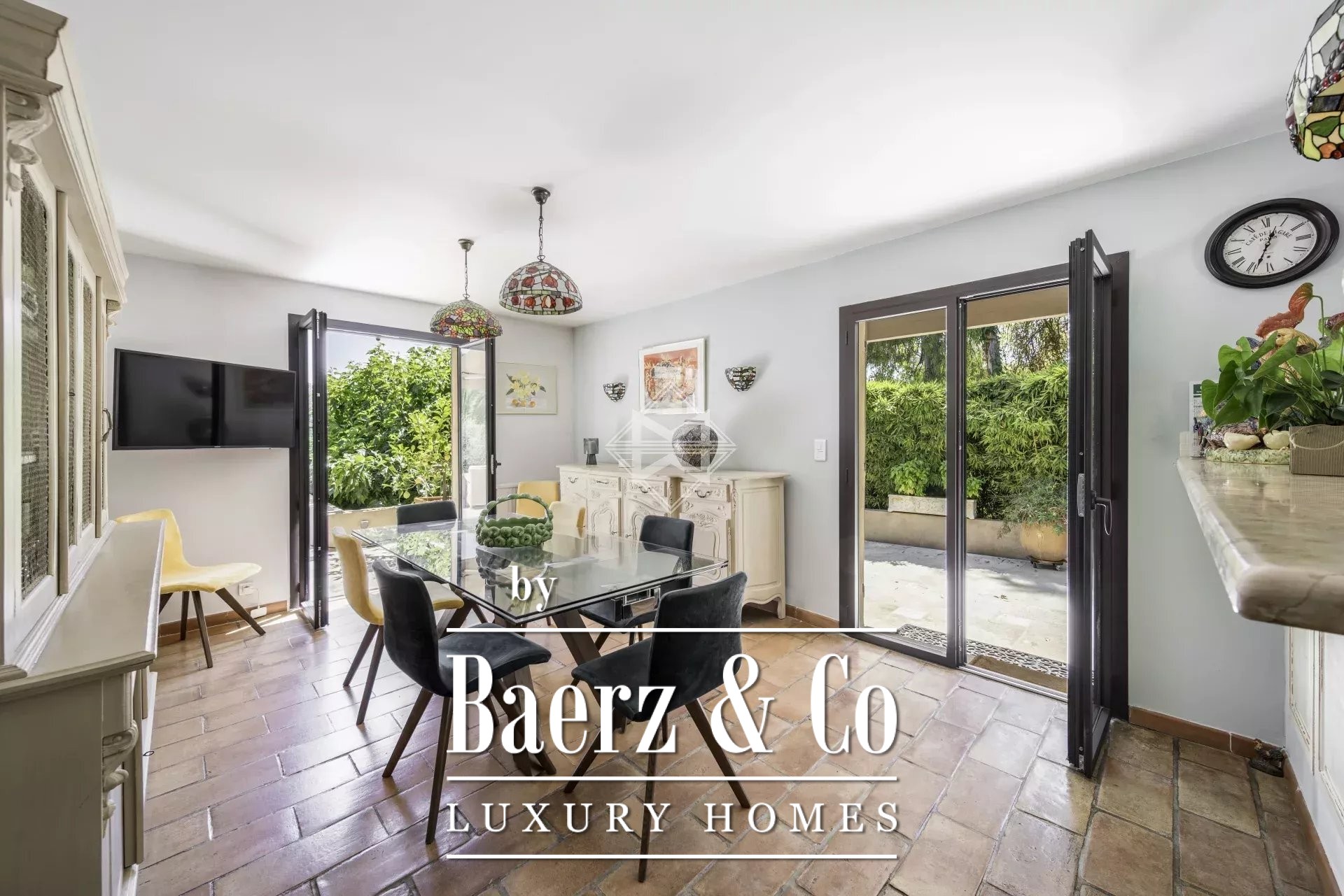 Co-exclusivity : this charming Provençal villa of approximately 265 m² will charm you with its lush surroundings and magnificent panoramic view of the village of Saint-Paul-de-Vence. The villa offers a beautiful, spacious entrance leading to the large living room with its lovely fireplace, a dining room/TV lounge area, a spacious kitchen with a dining area, and a generous terrace
