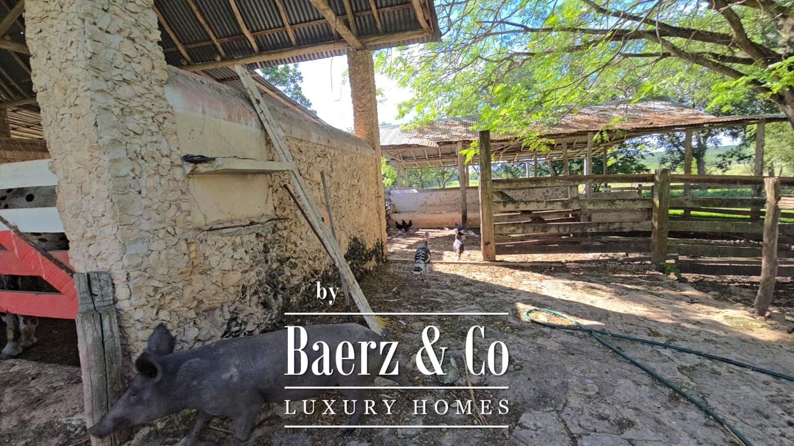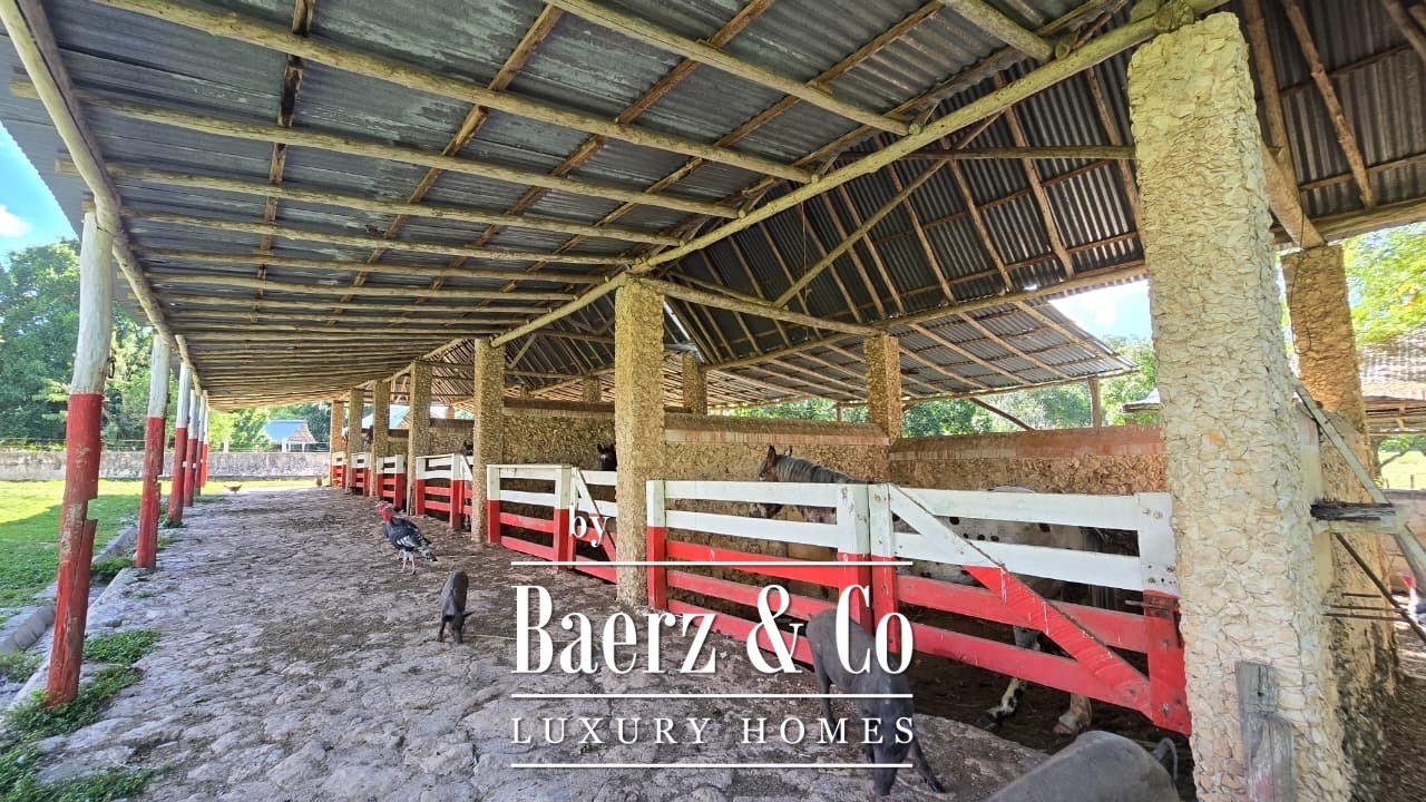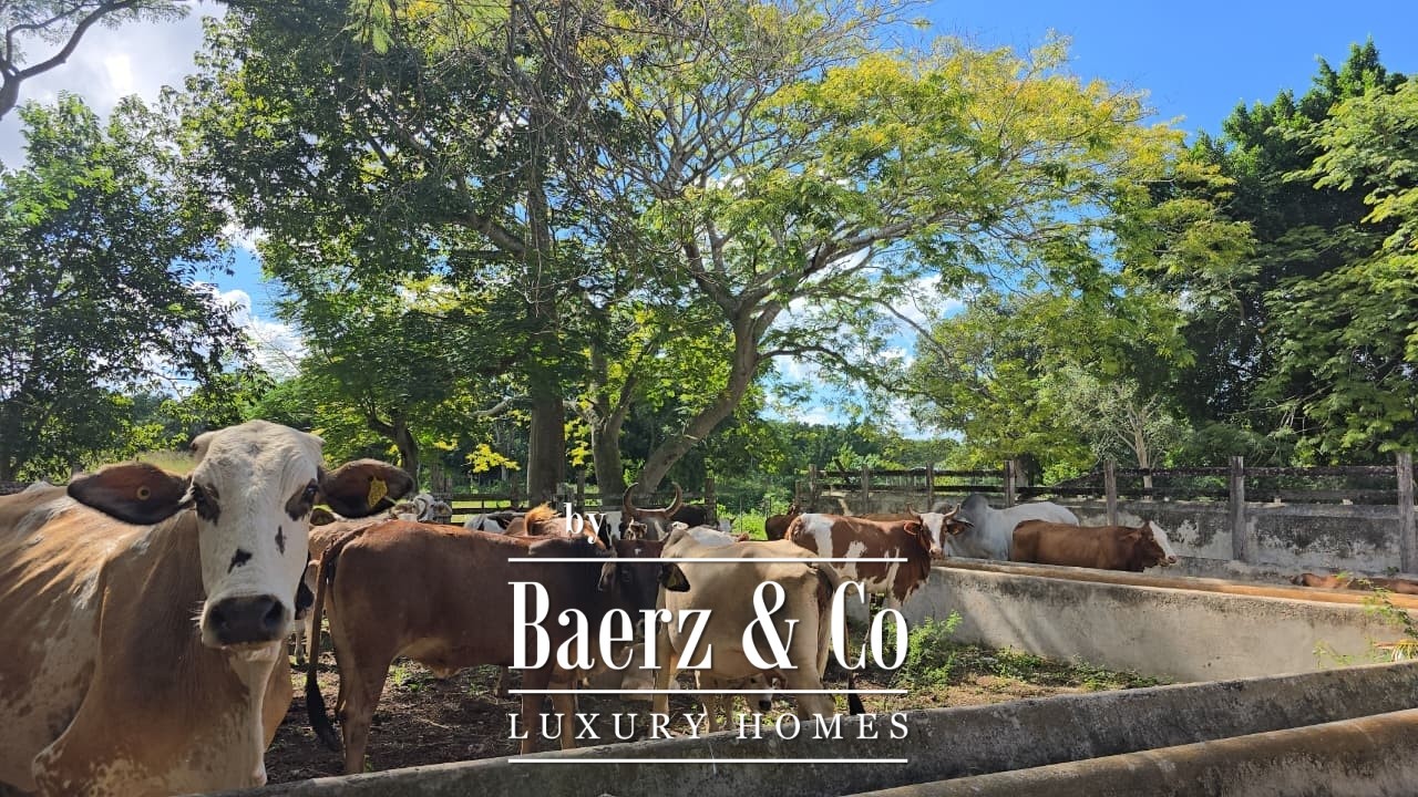 Direct access via a broad, government-maintained road provides ease of movement between the primary and secondary ranch parcels. The main hacienda compound covers approximately 650 square meters, anchored by a residence with spacious living and dining areas, a traditional kitchen, and five bedrooms with three bathrooms. Additional structures comprise a secondary workers’ house, service quarters, multiple warehouses, and machinery sheds, together supporting long-term operations and accommodating community.