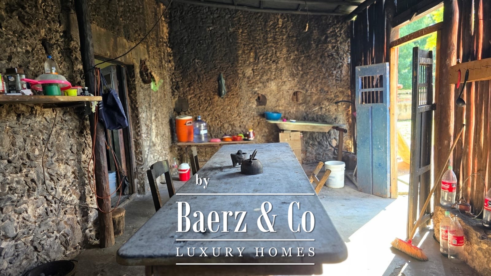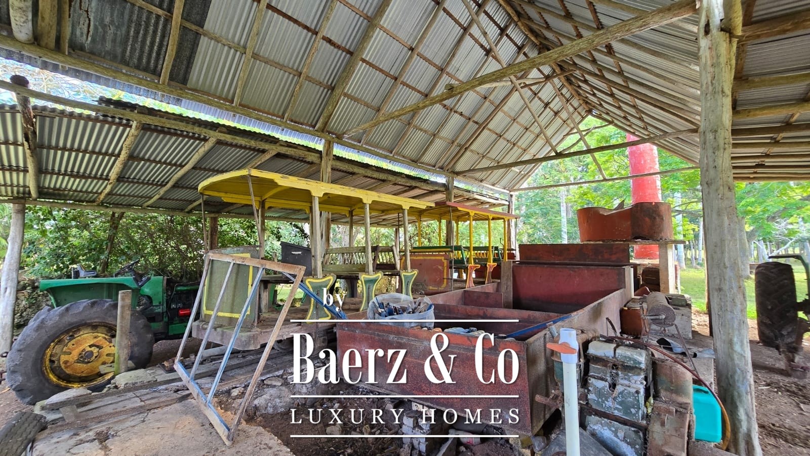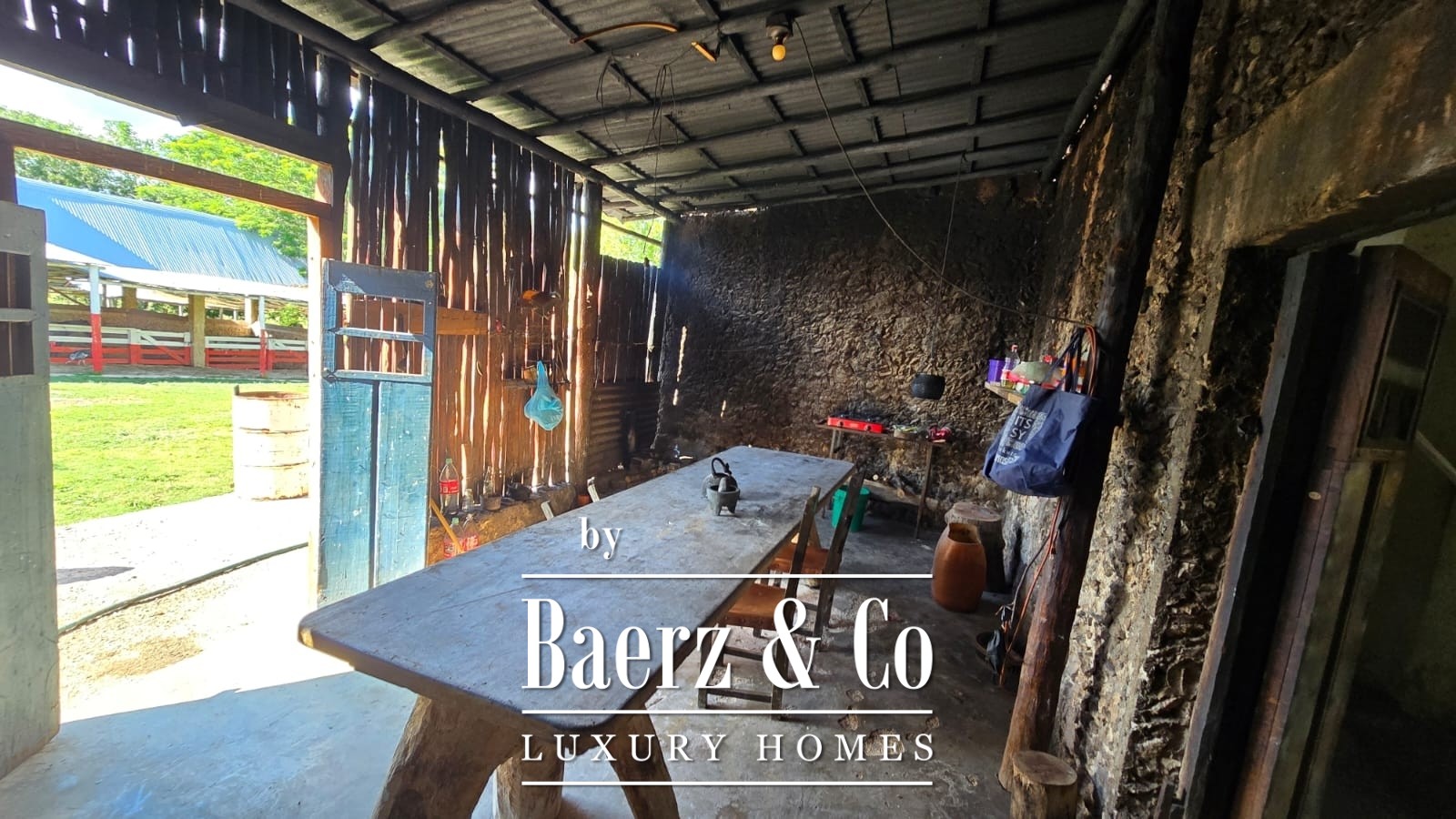 Direct access via a broad, government-maintained road provides ease of movement between the primary and secondary ranch parcels. The main hacienda compound covers approximately 650 square meters, anchored by a residence with spacious living and dining areas, a traditional kitchen, and five bedrooms with three bathrooms. Additional structures comprise a secondary workers’ house, service quarters, multiple warehouses, and machinery sheds, together supporting long-term operations and accommodating community.