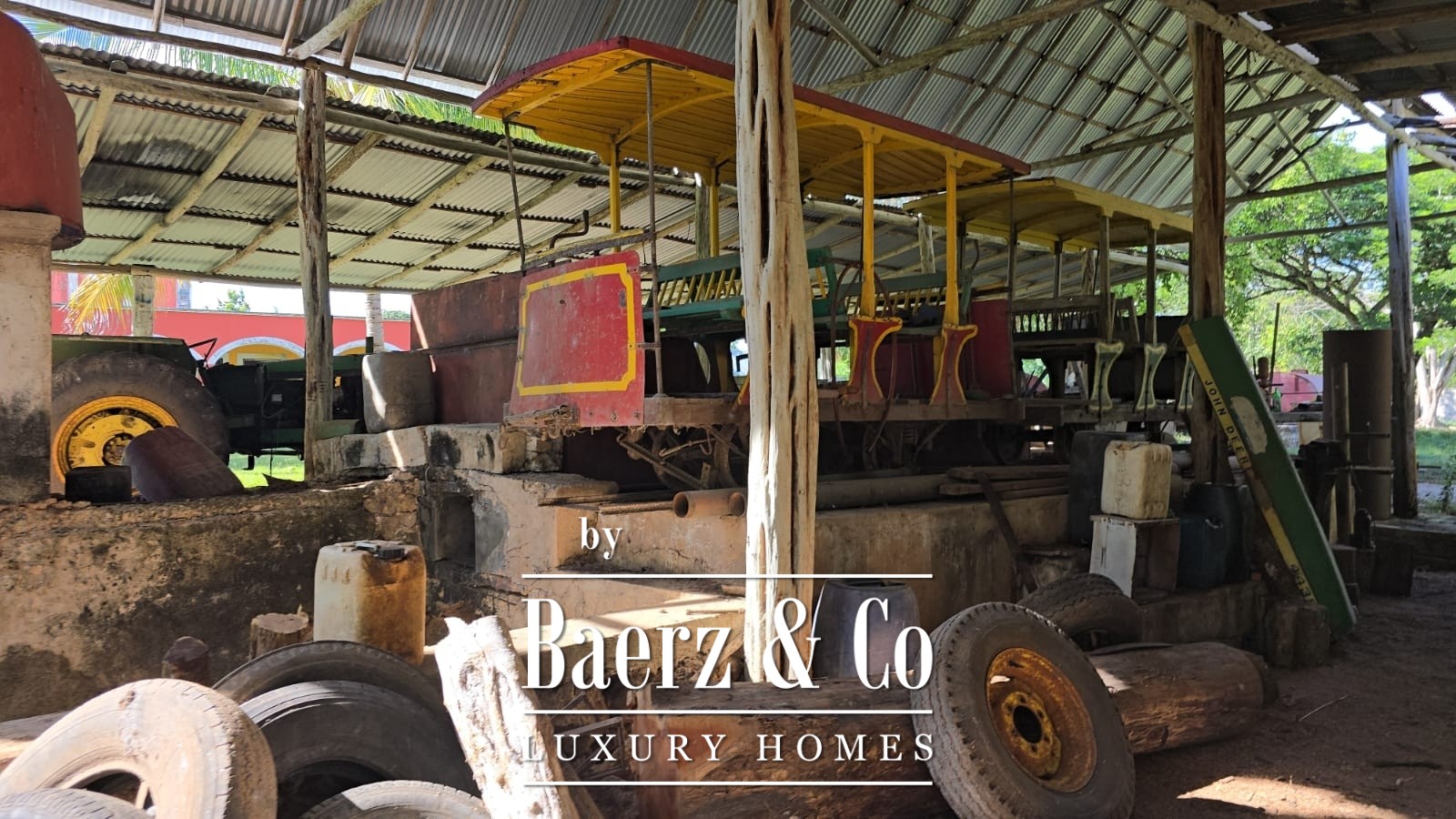 Water security is ensured by a deep well between 120 and 160 meters, a new pump, and a solar energy system with generator backup. Six corrals, twelve paddocks, stables, feeding and drinking troughs—most renovated within three years—sustain current livestock, including thirty cattle and eight horses, with historical capacity exceeding a thousand head. Period artifacts and original machinery recall the estate’s agricultural heritage, while the land’s virgin soils—Kancab, Calché, and Cacalum—remain highly valued for diverse agricultural pursuits.