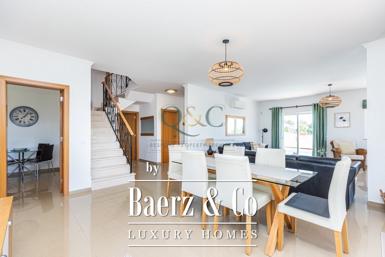 A walled, 400 m² plot with private gardens and mature plantings ensures privacy and a sense of retreat, yet the village’s charms are within walking distance. Practical features include air conditioning, double glazing, fitted wardrobes, and main drainage. The proximity to Faro Airport, under 20 minutes away, and the Golden Triangle’s coastline, just 15 minutes, offer an effortless balance of seclusion and accessibility. This luxury villa for sale in Santa Bárbara de Nexe invites a quietly refined Algarve life.