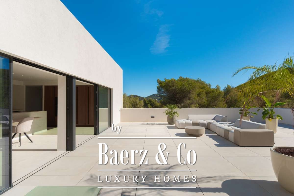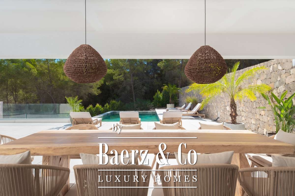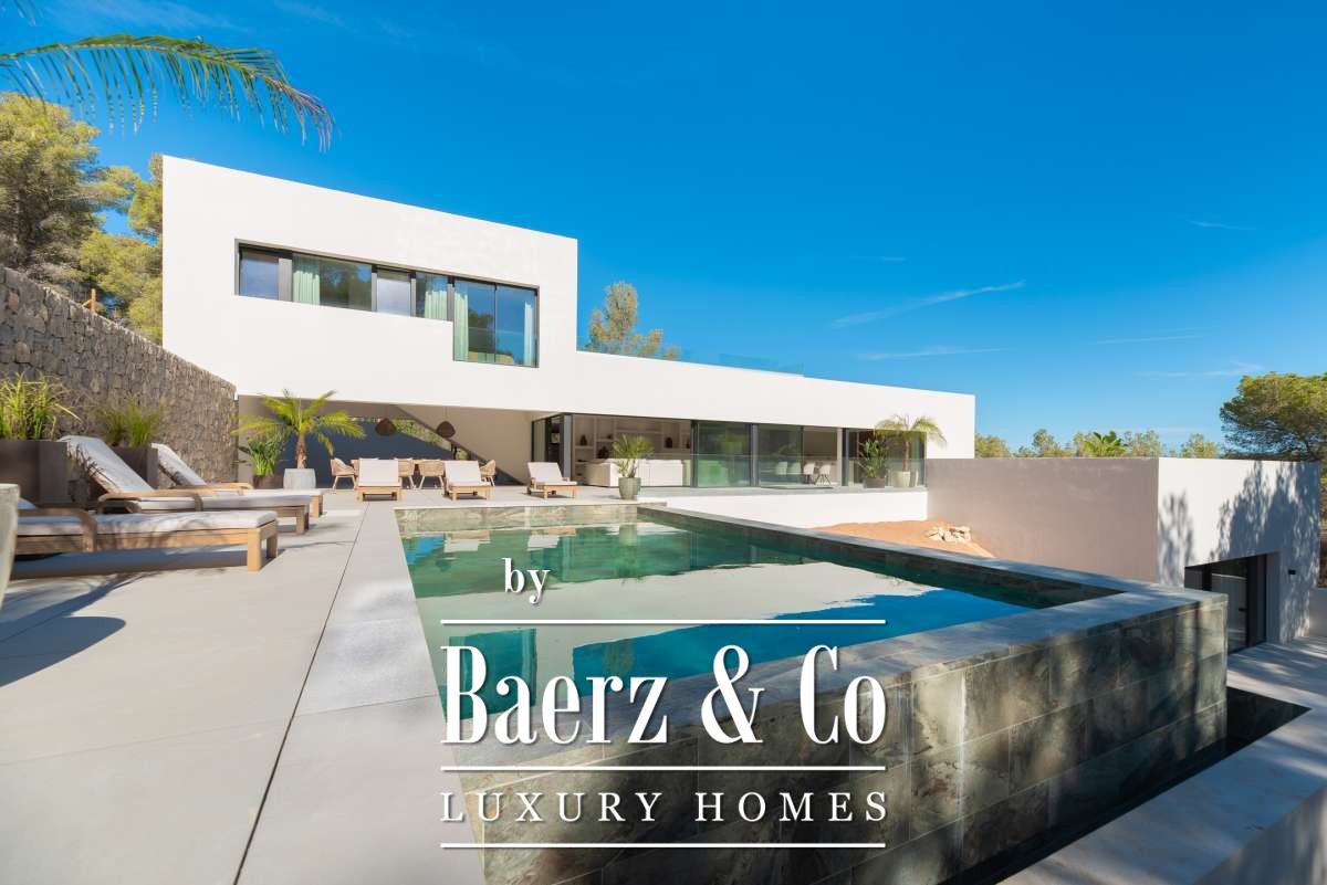 Villa Roca Llisa with pool and golf access forms a serene retreat within one of Ibiza’s most discreet enclaves, located perfectly between Ibiza Town and Santa Eulària. This villa invites you into 498 m² of modern, understated refinement across a 1,660 m² plot, set within a gated community renowned for its security and tranquility. Here, a sense of privacy coexists with immediate access to renowned golf courses and the cultural pulse of both Ibiza Town and Santa Eulària’s coastline.