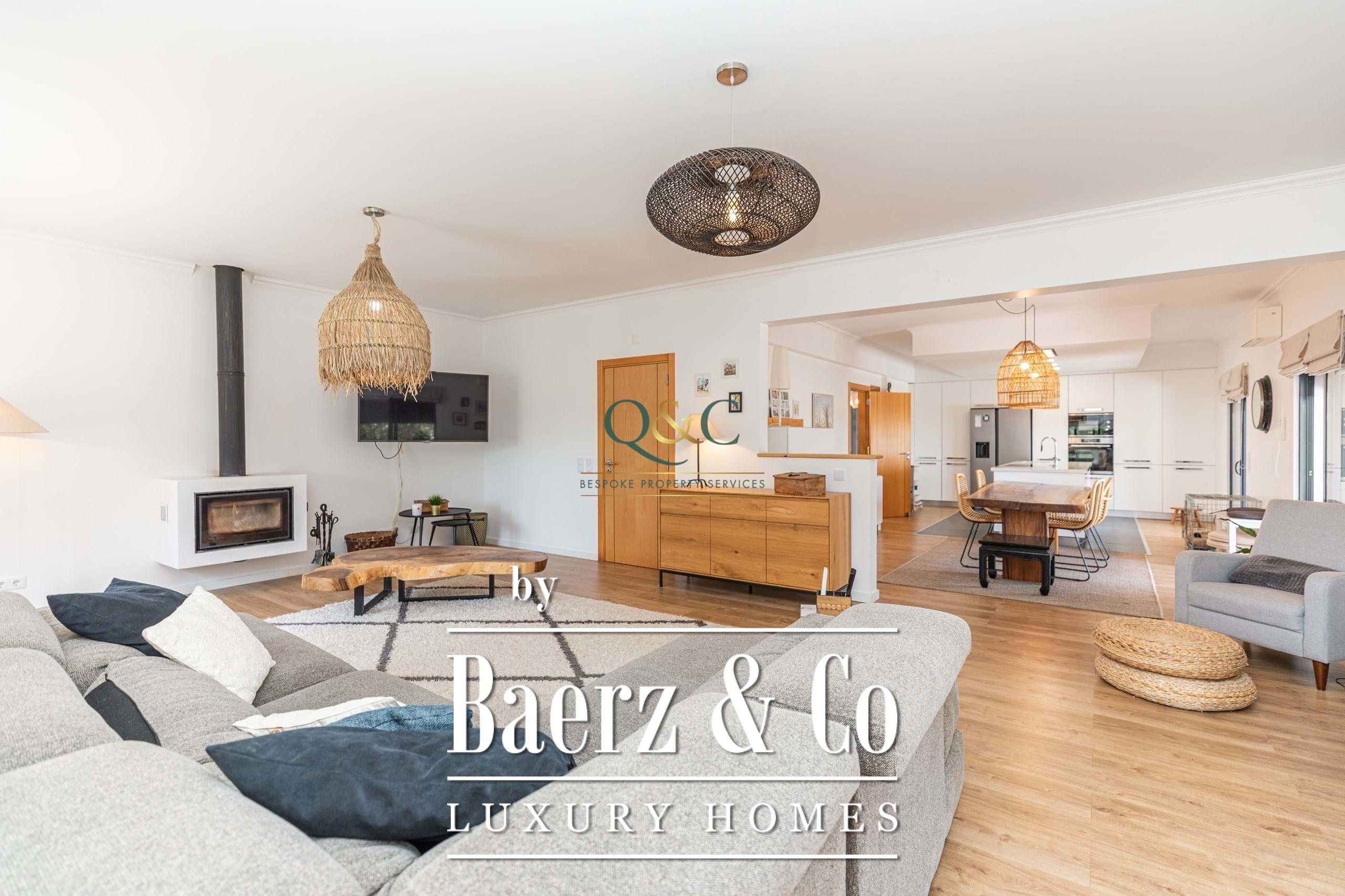 Villa São Brás de Alportel integrates seamless indoor and outdoor living with the serenity of the Portuguese countryside. This villa São Brás de Alportel welcomes you along a cobblestone path, opening to an understated 200 m² single-storey residence fully renovated in 2019. The entrance hall flows naturally into a luminous living room anchored by a wood-burning stove, paired with a modern open-plan kitchen and access to a covered terrace. The interiors are anchored by noble finishes and precise craftsmanship, while sunlight filters through expansive windows, drawing the outdoors in.