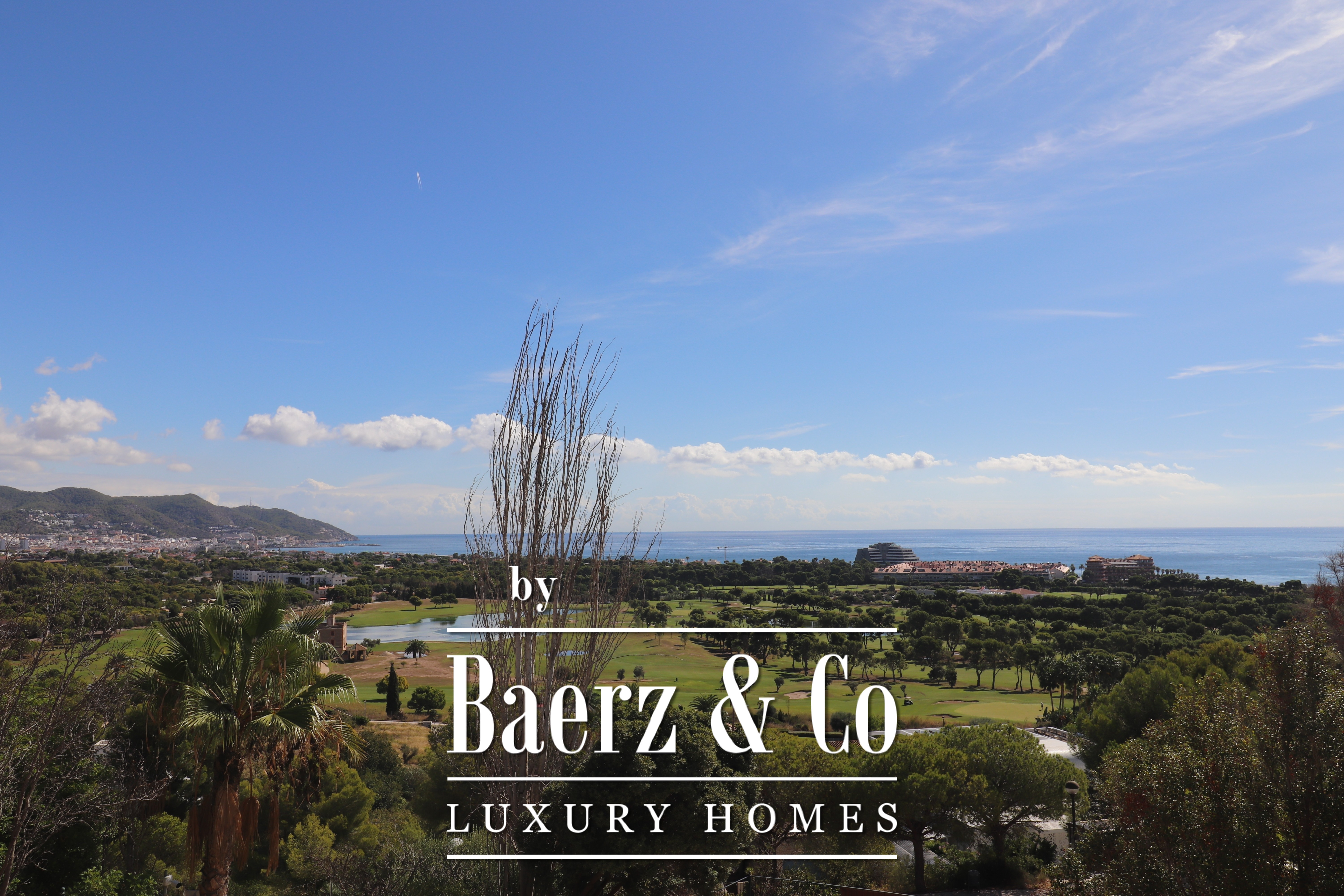 Contemporary villa Sitges defines the height of modern Mediterranean living, with 910 m² of architecture overlooking the golf course and the protected coastline. The property is set within 2,647 m² of mature land, embraced by native vegetation and oriented south to capture exceptional natural light. Residents experience serene privacy, expansive terraces, and sweeping sea views that extend over a manicured garden and a shimmering deep blue swimming pool.