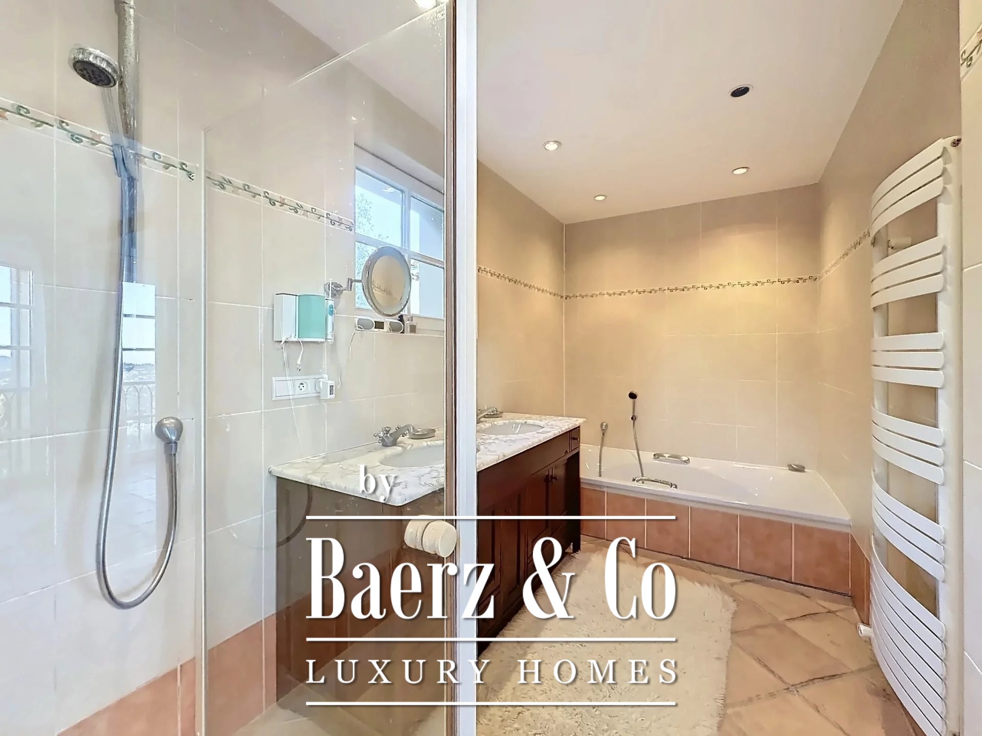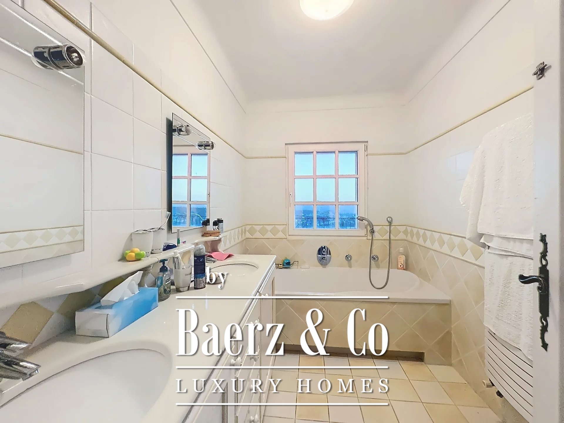 The upper floor reveals five comfortable bedrooms, including a luxurious master suite offering spectacular panoramic views, an en-suite bathroom, toilet and a walk-in closet. The master suite and two south-facing bedrooms share a large terrace with an exceptional panorama. Two additional bedrooms, a separate WC, a bathroom, and a shower room, all connected by a central hallway, complete this floor.