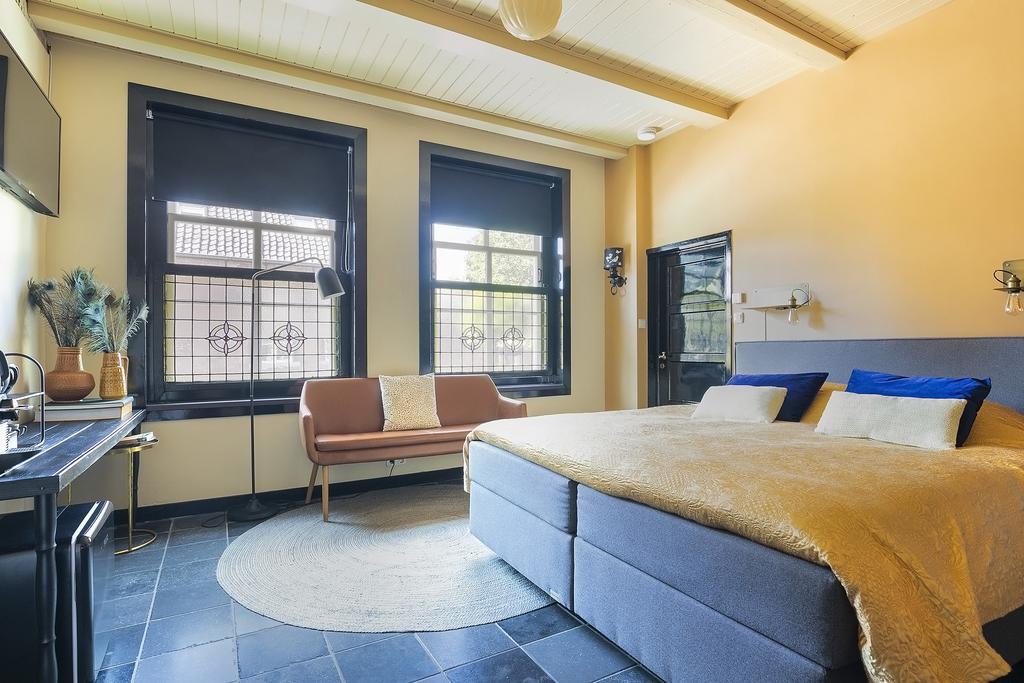 De Pronkkamer – Radiates grandeur with a yellow theme, featuring high ceilings, classic décor, a living room, a separate bedroom and a box bed. Suitable for two adults and two children.
