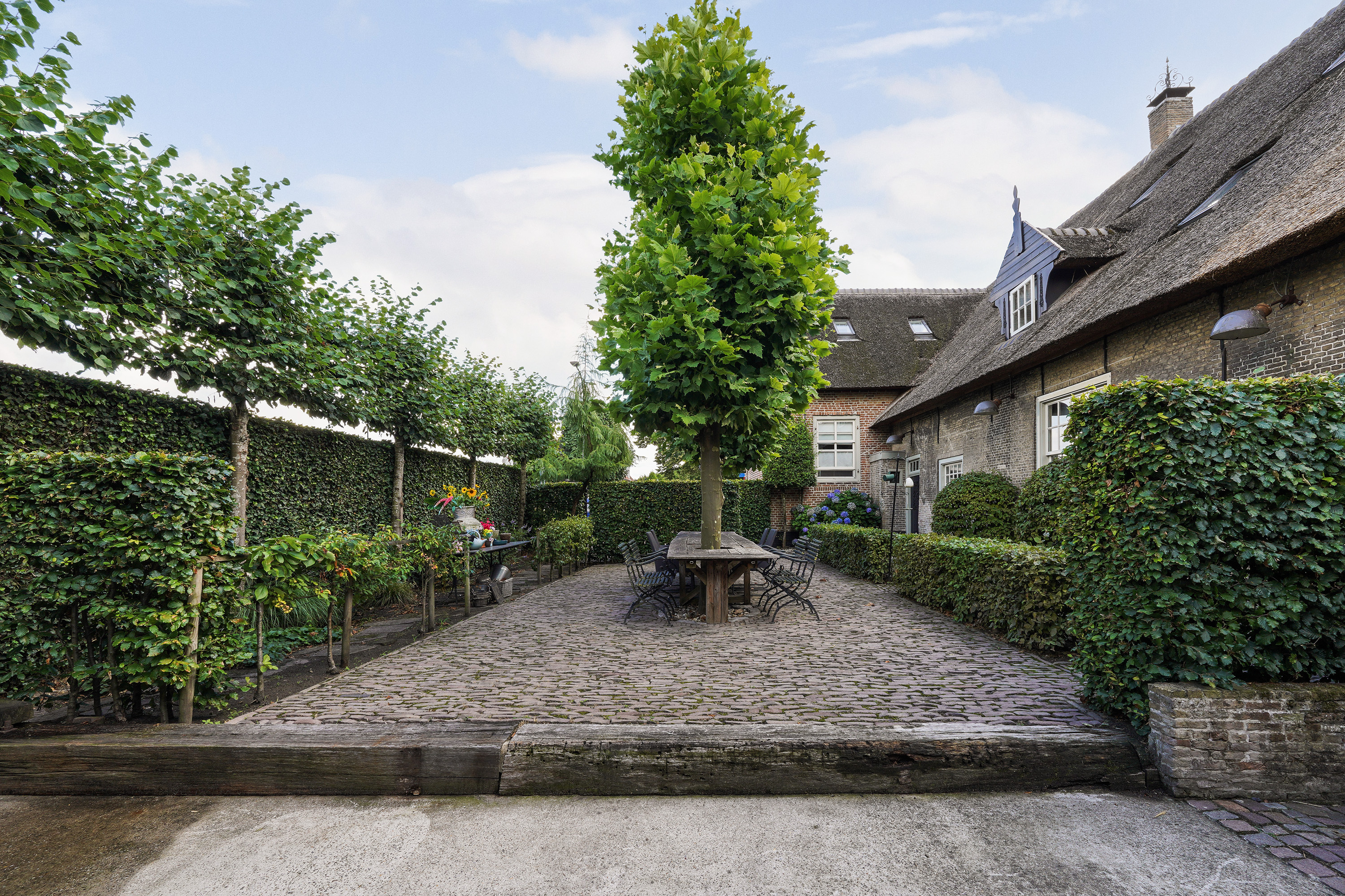 The rear garden is a true oasis of greenery, offering sunshine, privacy and ample space to relax. Whether you love gardening, dining outdoors or simply enjoying the peace and quiet — here, it’s all possible. The garden perfectly complements the historic appearance of the property, featuring cobblestones, dense hedges, mature trees and perennial plants. At the back of the garden stands a sturdy wooden canopy — a sheltered spot with a beautiful view across the entire garden. At the front, there is ample private parking.