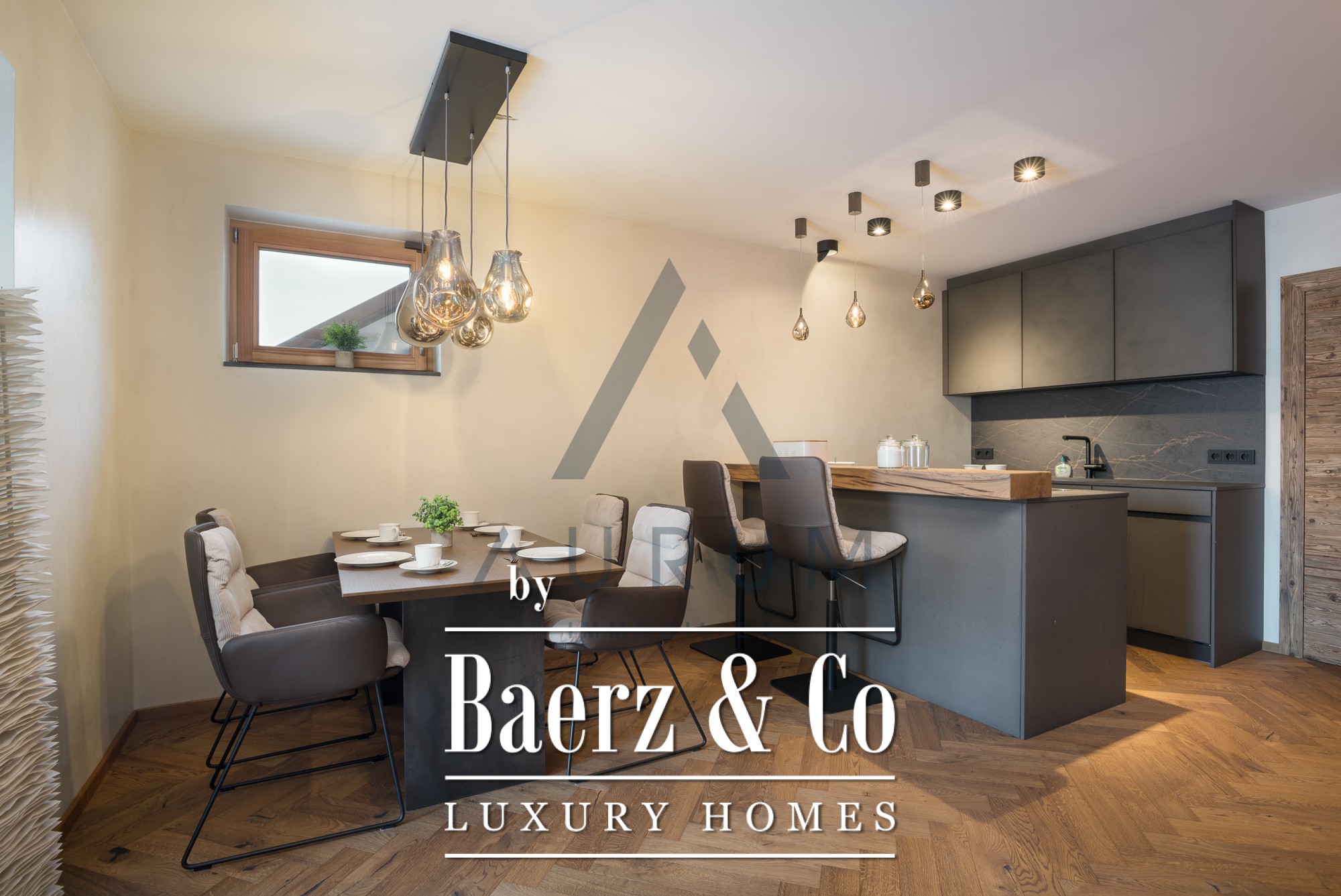 Throughout the interiors, elegant designer furniture, bespoke joinery, and reclaimed timber features reveal a devotion to craftsmanship. The kitchen is fitted with Gaggenau appliances and high-end fixtures, complemented by exclusive hardwood floors and a designer lighting concept. Two distinct apartments within the residence offer complete privacy, each equipped with their own kitchen and bathroom, allowing for flexibility in family living, guest accommodation, or remote work.