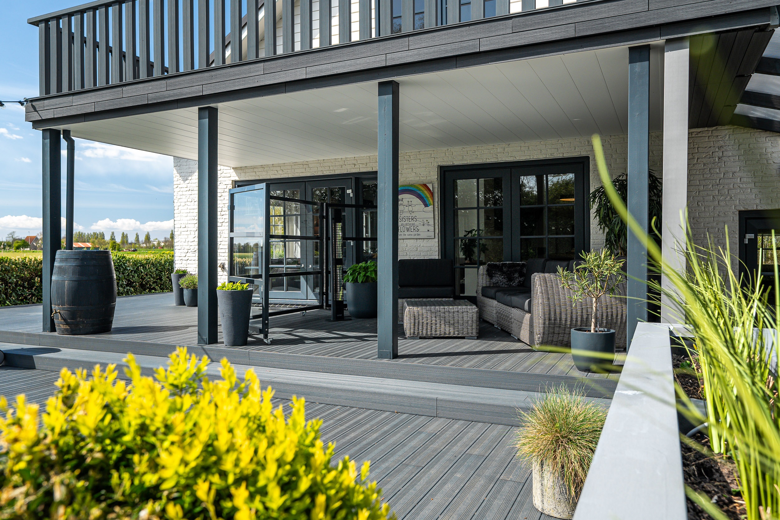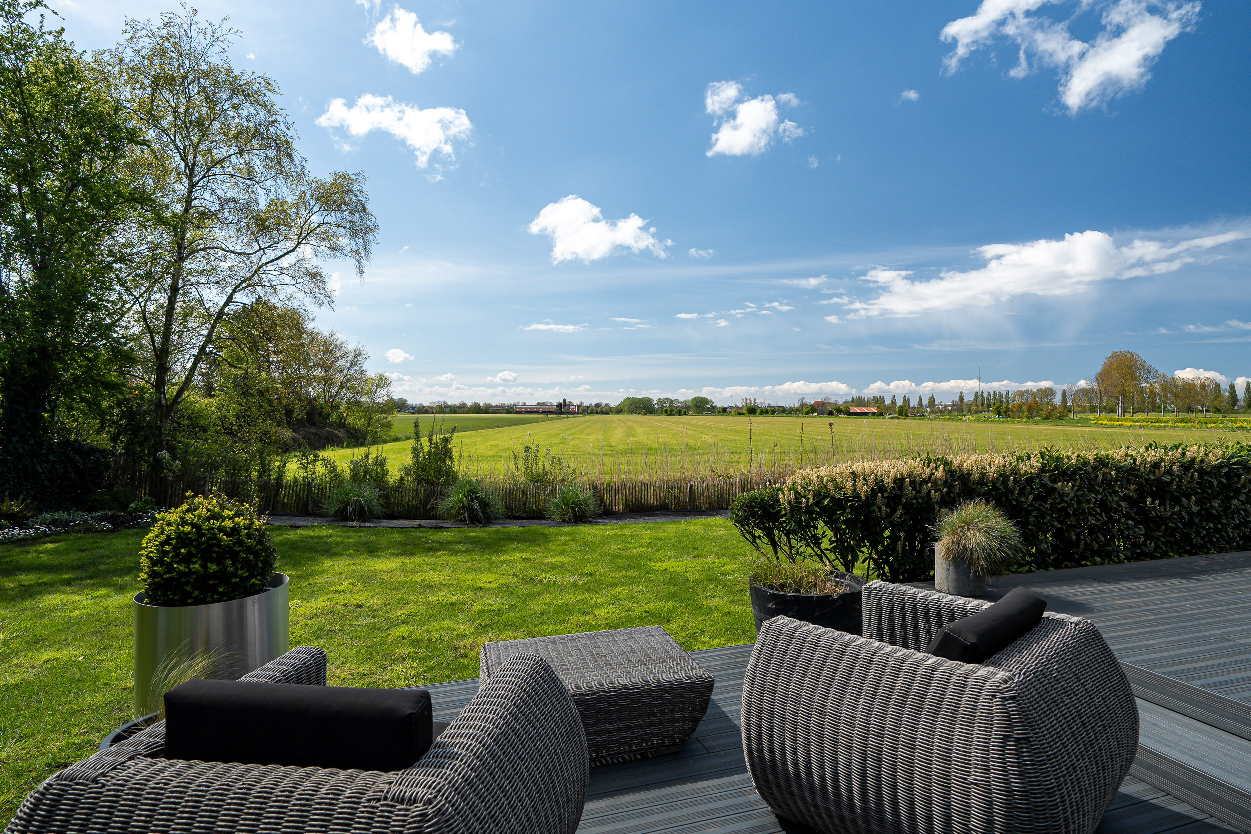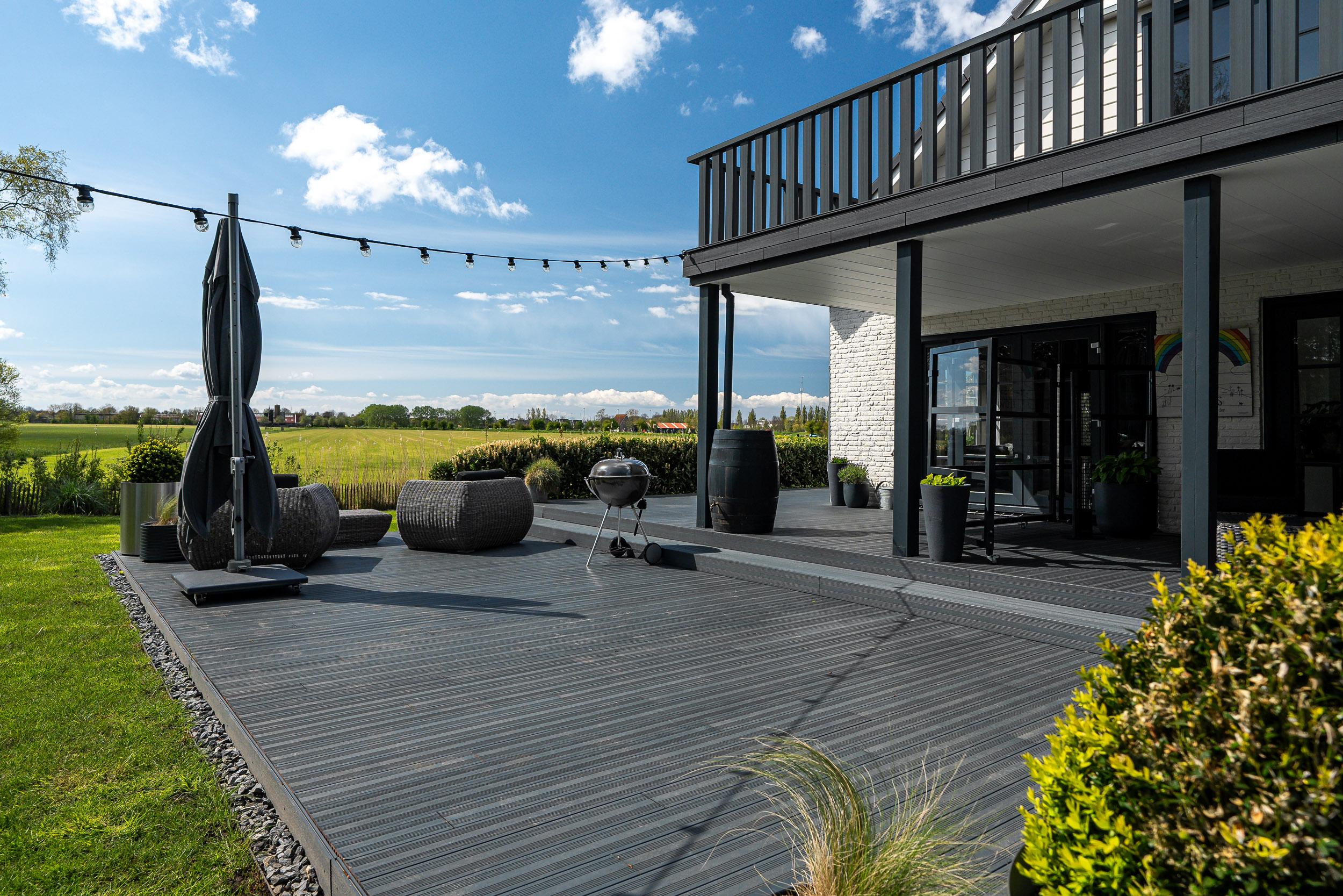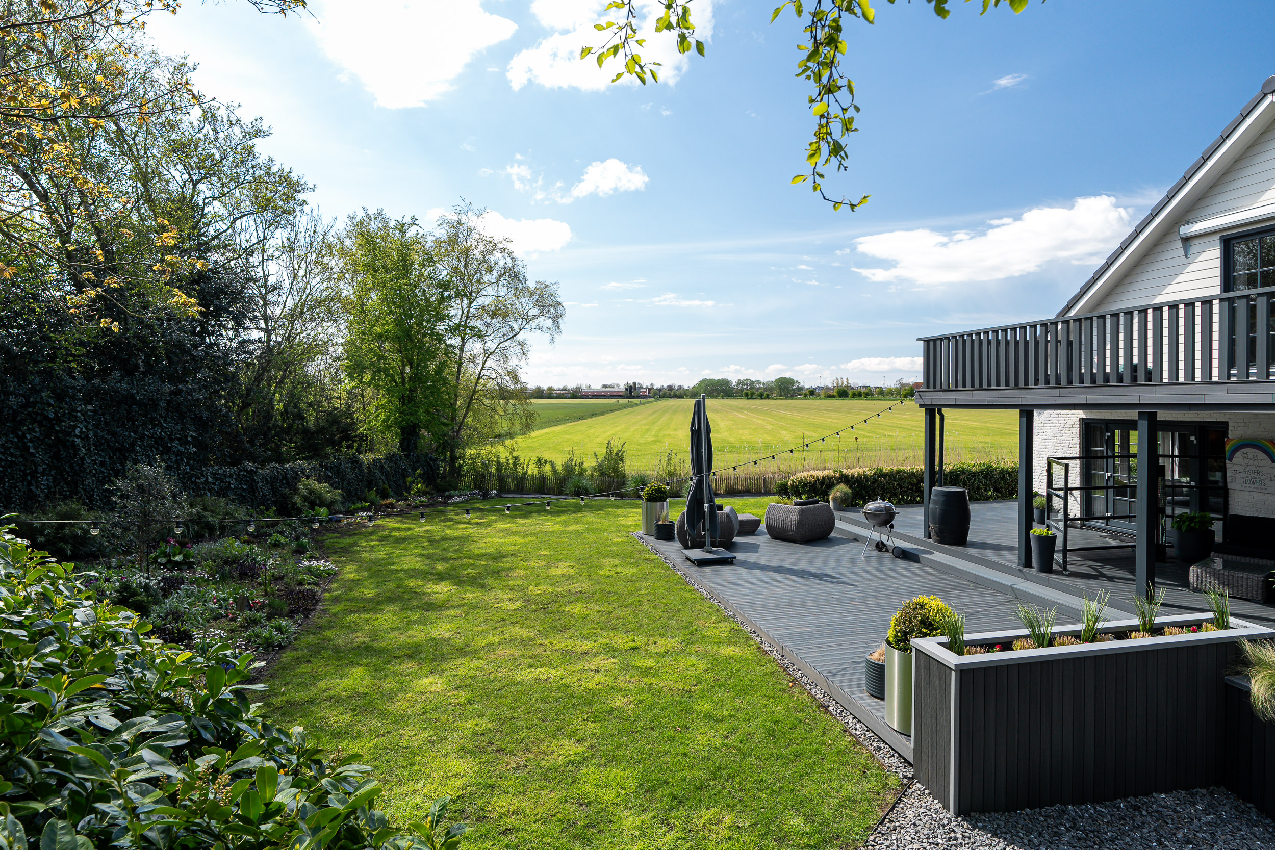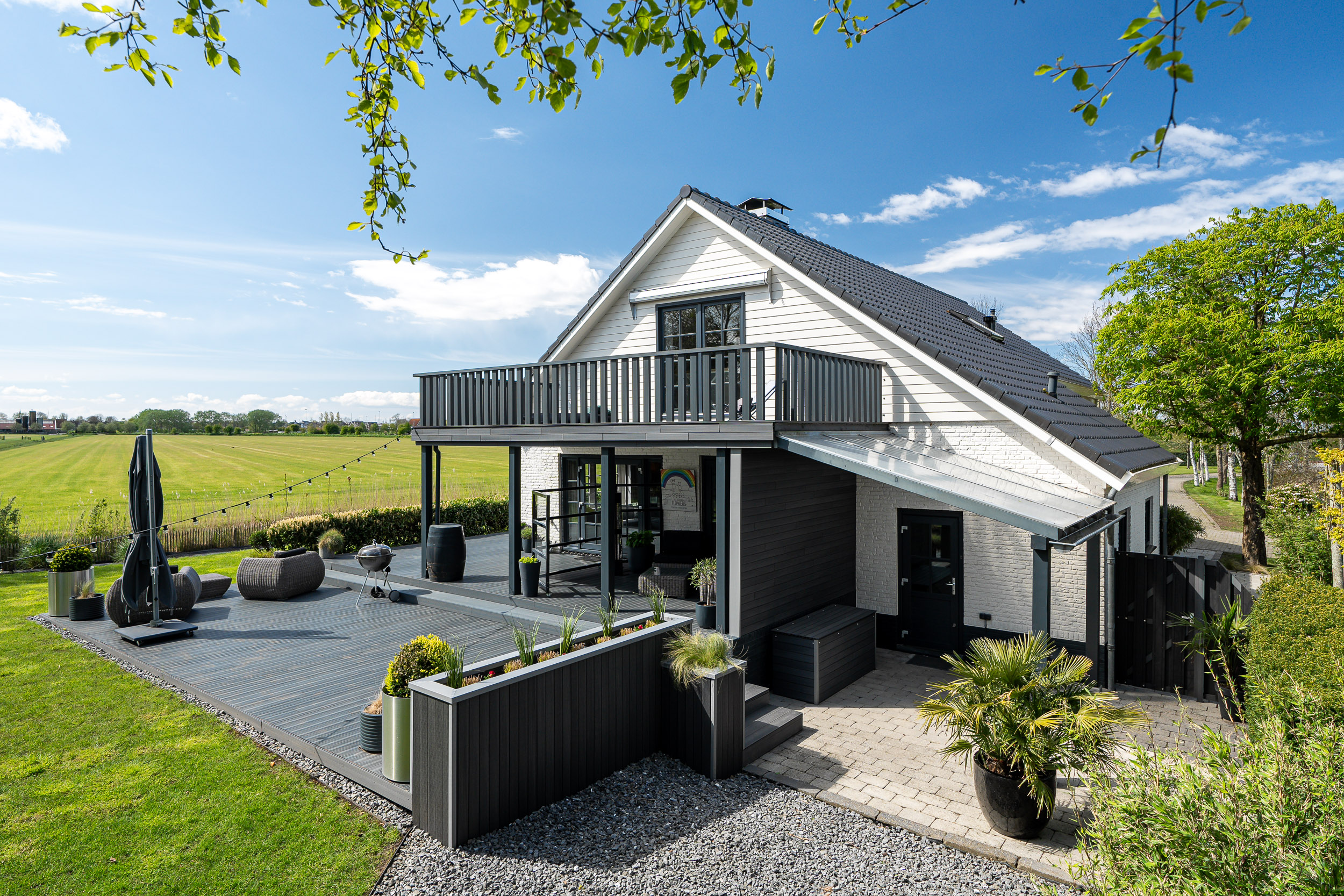 Both the main house and the guesthouse have sun-facing terraces, allowing residents to enjoy stunning views of the Frisian landscape and witness spectacular sunsets well into the evening.