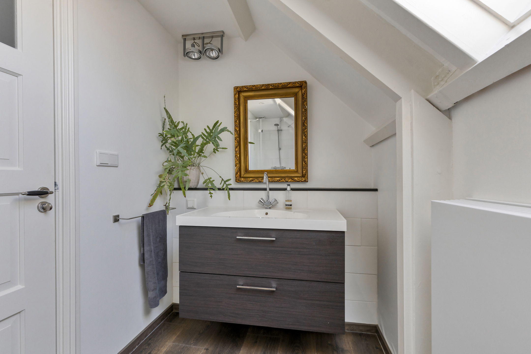 vanuit de tussenhal een trap naar de 1e verdieping, deur naar tuin/terras en schuifdeur naar bijkeuken en vanuit de hal/entree een trap naar de verdieping boven de slaap-/werk-/hobbykamer.