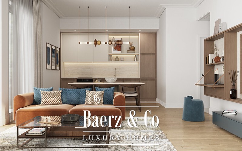 The project brings together 200 residences across two buildings, both rising five floors and scheduled for completion by the end of 2028. Amenities include a reception area, gym, and pool, with optional garage parking available. Each apartment comes equipped with kitchen appliances and built-in storage, with options for additional furnishings.