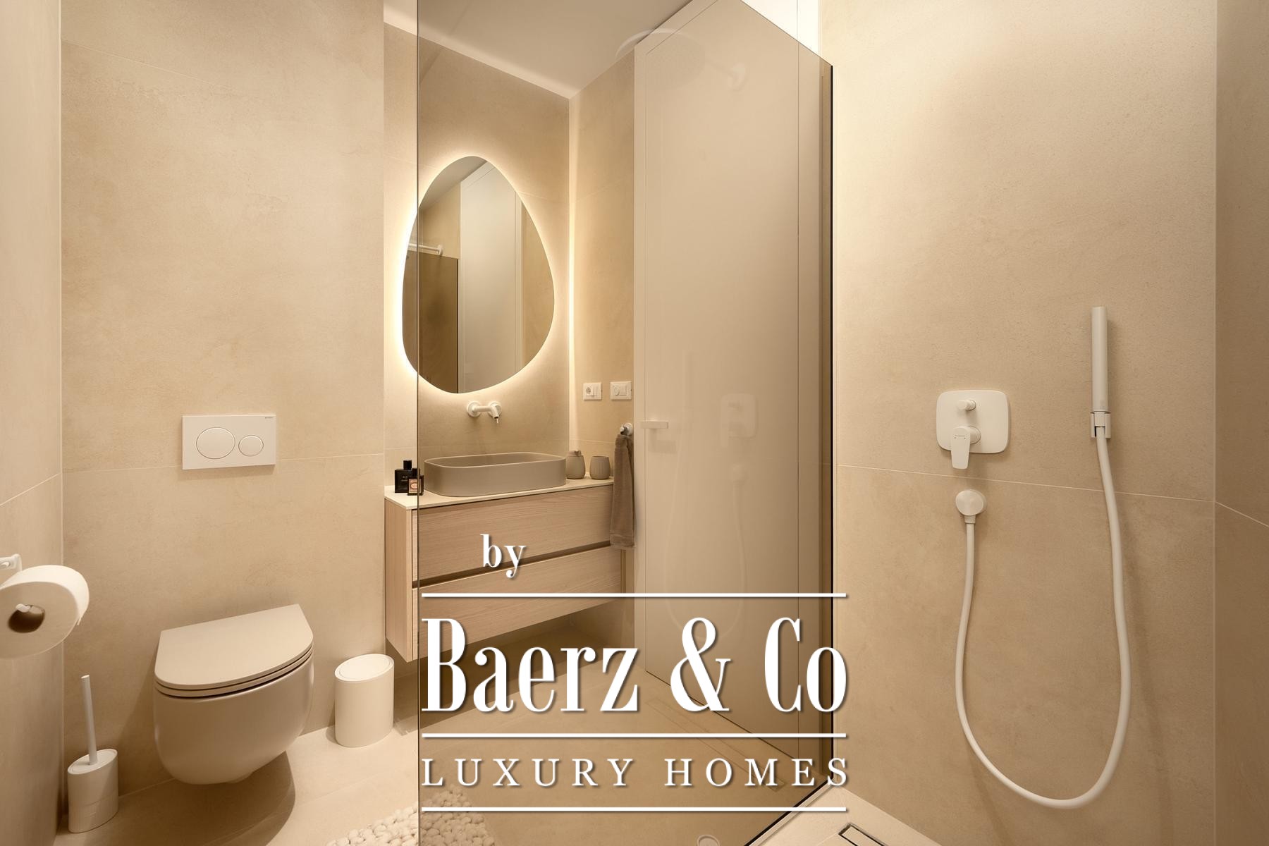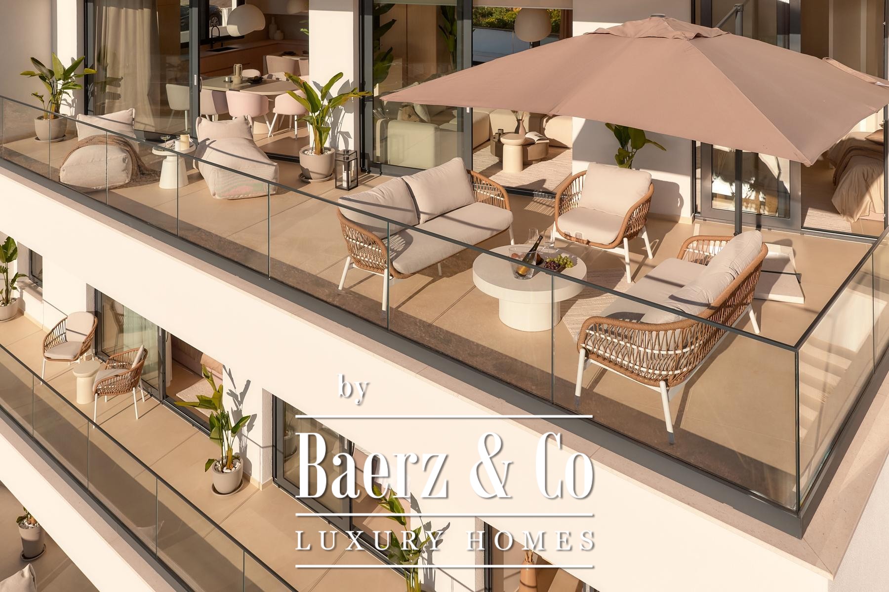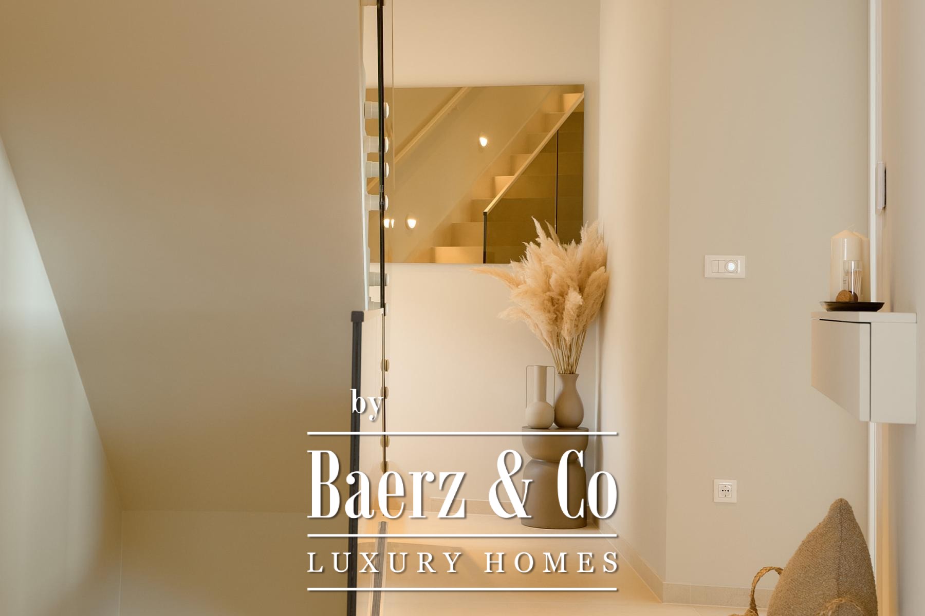 Three bedrooms with en suite bathrooms on the ground floor enjoy direct access to an 18.8 m² loggia. A private garage of 31 m², features electric vehicle charging. The first floor introduces a voluminous 52 m² living area, complemented by a fourth bedroom, additional bath, and expanses of terrace, each vantage point oriented toward the shimmering horizon.