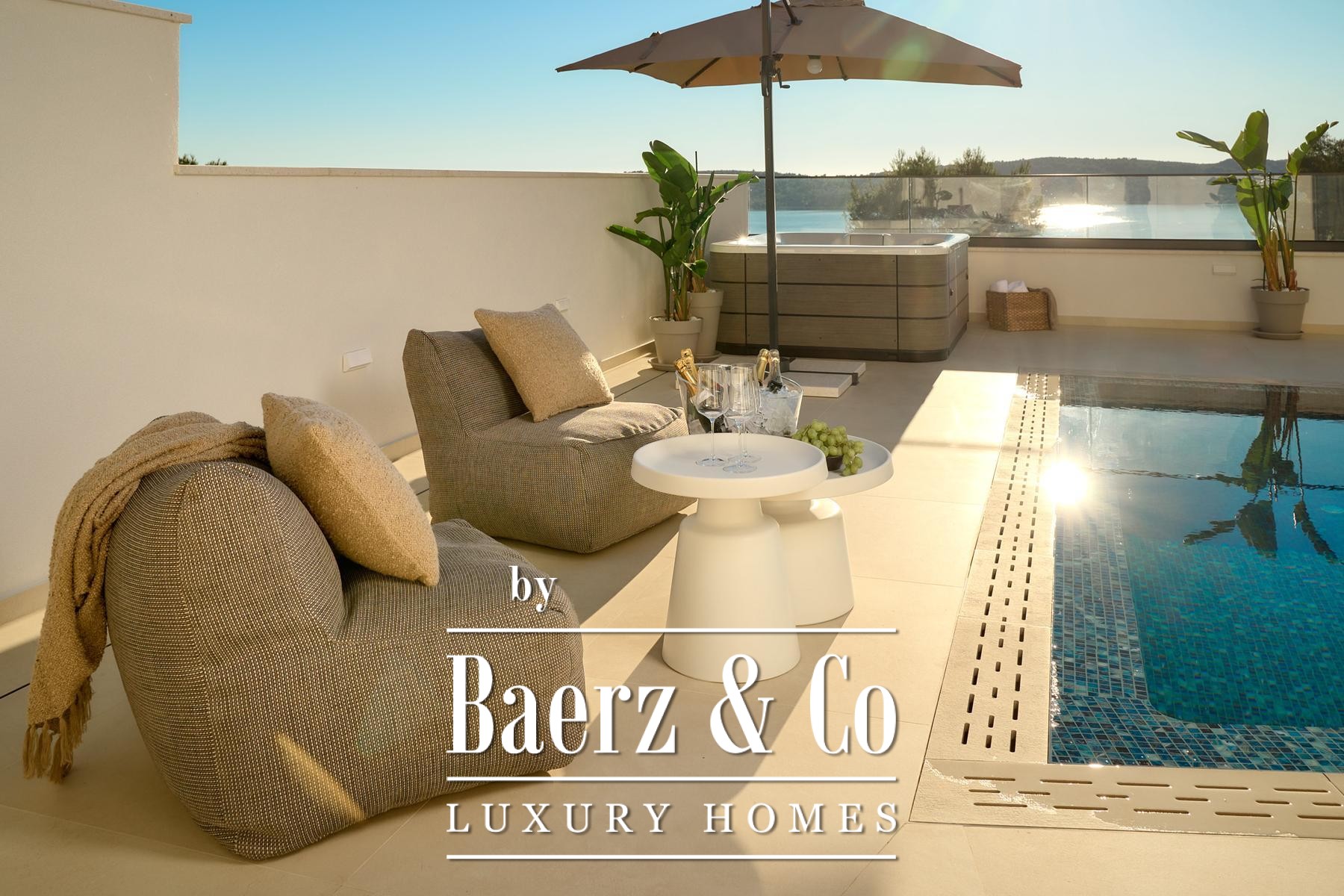Modern villa Trogir presents an elevated interpretation of Mediterranean living in Croatia, where panoramic sea views and contemporary architecture are realised with discreet precision. Set on a plot of 560 m², this 351 m² residence unfolds across three levels, each designed to balance comfort and innovation. The villa commands an unobstructed outlook over the Adriatic, blending serene privacy with a cosmopolitan rhythm.