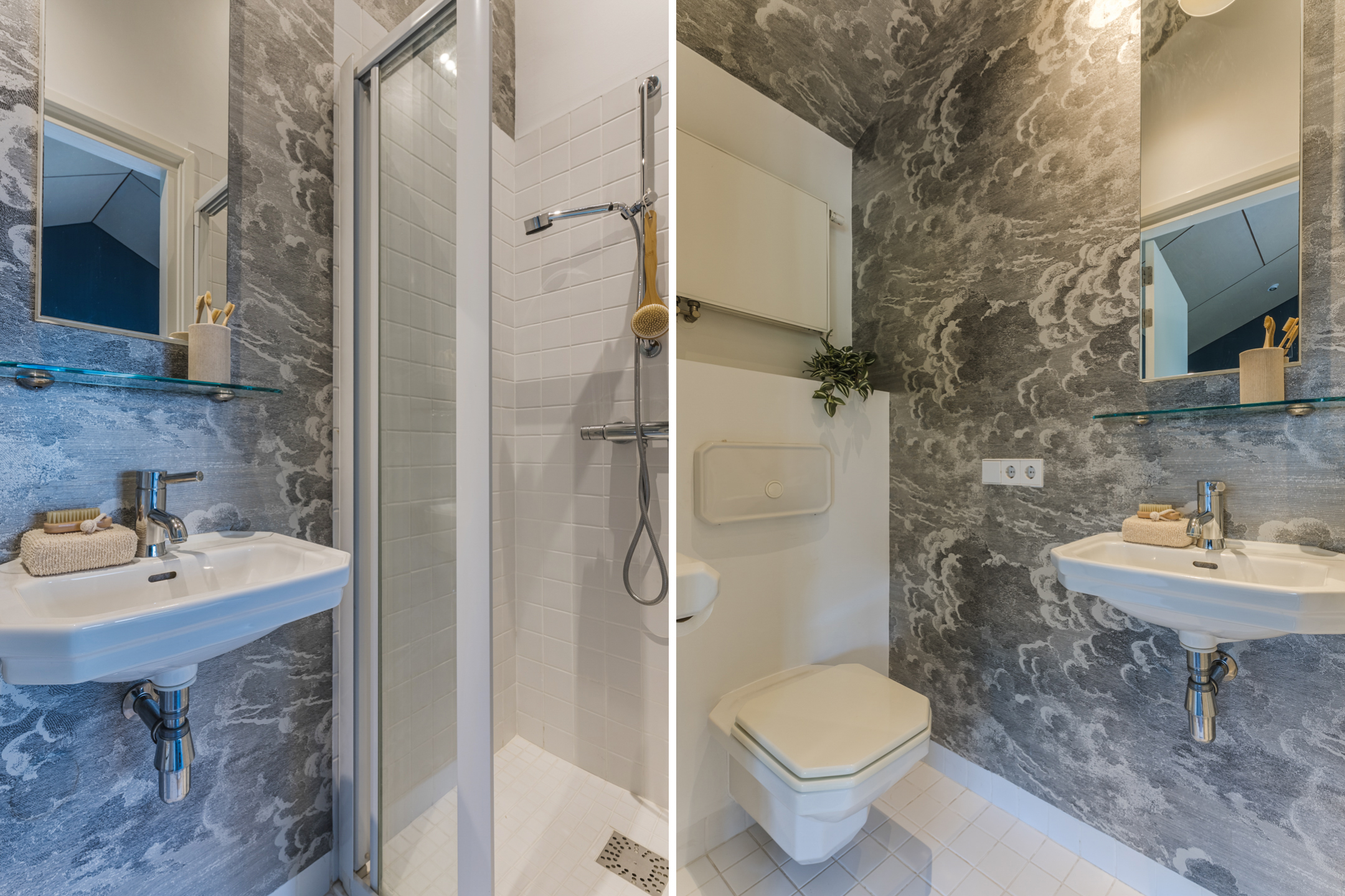 The spacious living area benefits from abundant natural light, underfloor heating, and a gas fireplace. The living room connects openly to the kitchen-diner but can be separated by elegant pivot doors. A practical cellar provides additional storage, and the unique raised room (opkamer) offers access to the first floor.