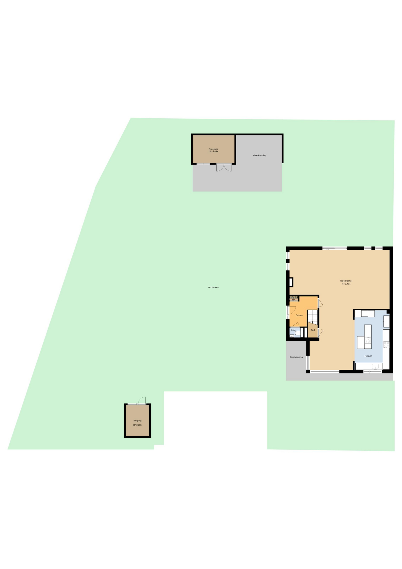 The beautiful garden is a true outdoor paradise, directly accessible via the sliding doors in the living room and via the side of the house through a charming open gate. The garden offers plenty of privacy and enjoys sunlight throughout the day, perfect for enjoying the outdoors. At the rear, there is a spacious terrace with a cozy seating area, complete with an awning spanning the full width of the house, ideal for both sun and shade. At the back of the garden stands a charming garden house with a covered area, perfect for a dining area with barbecue. The garden house features a neat wooden floor, electricity, and water, making it perfect as a workspace, hobby room, or for storage. Adjacent to the covered area is an additional terrace with seating, sheltered by a natural canopy of four beautiful plane trees, creating an idyllic spot to relax or entertain guests.
