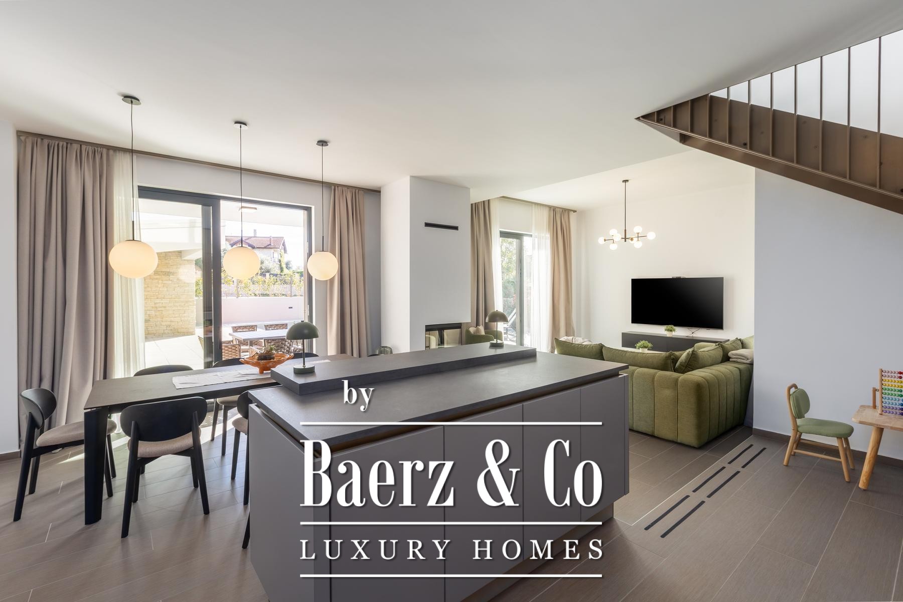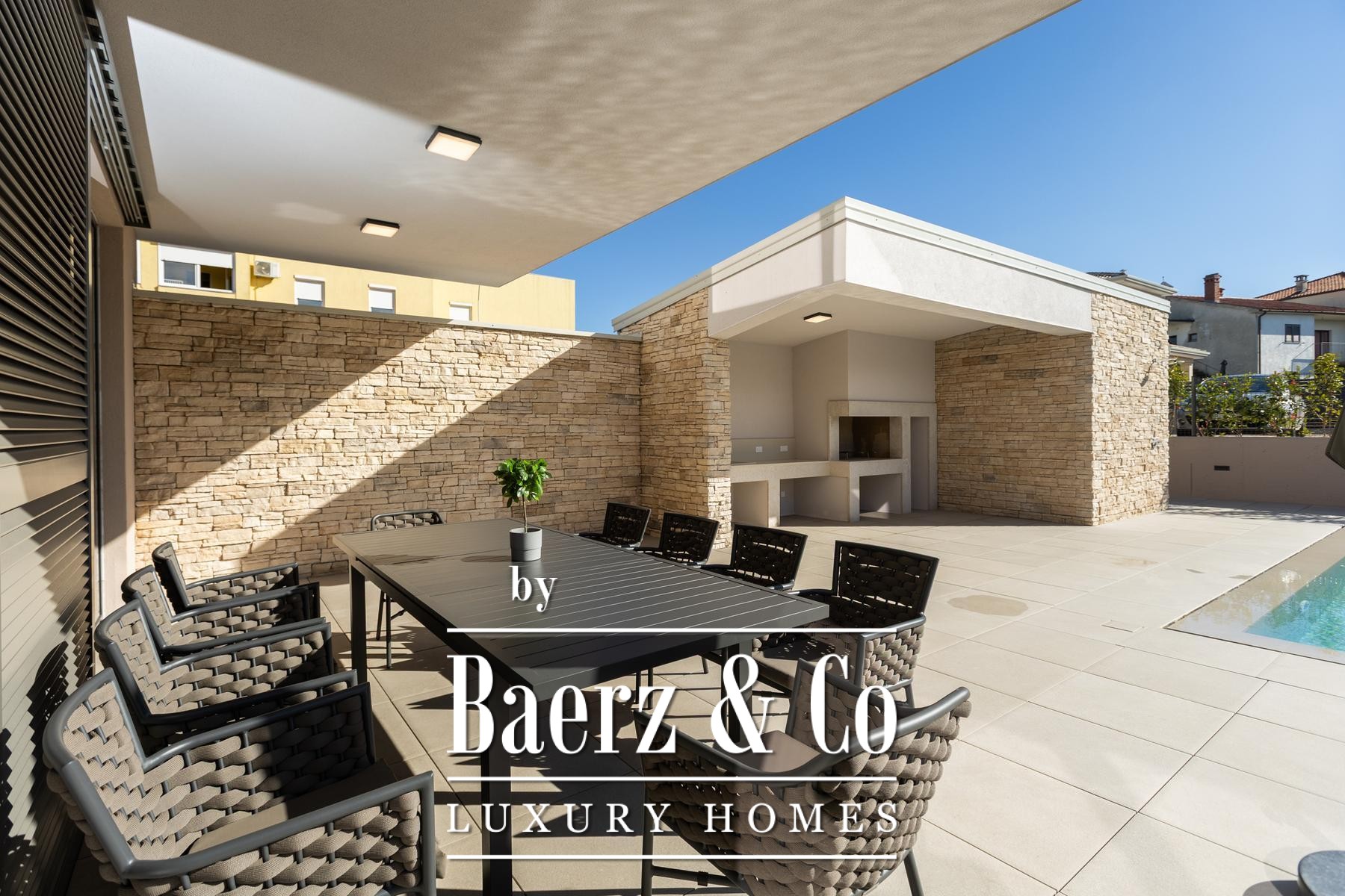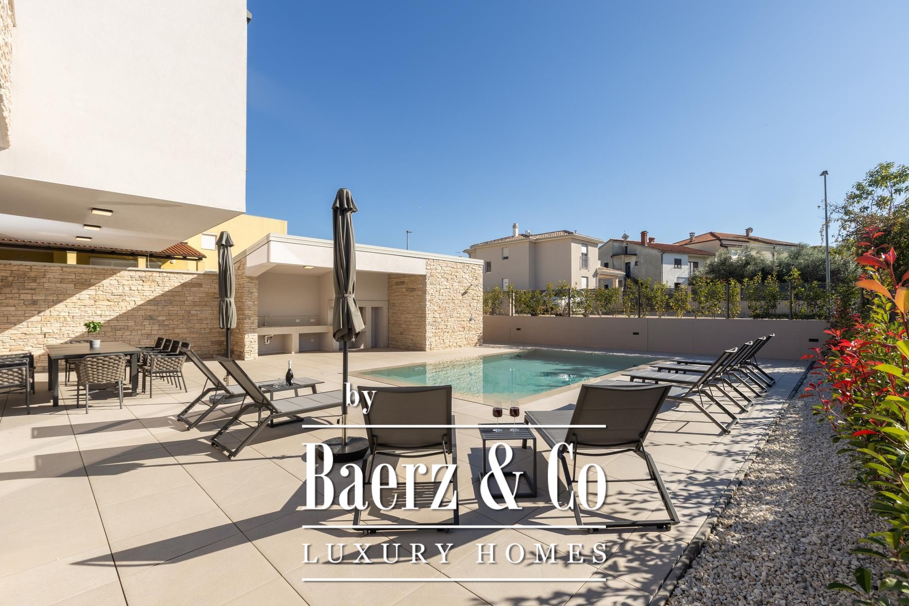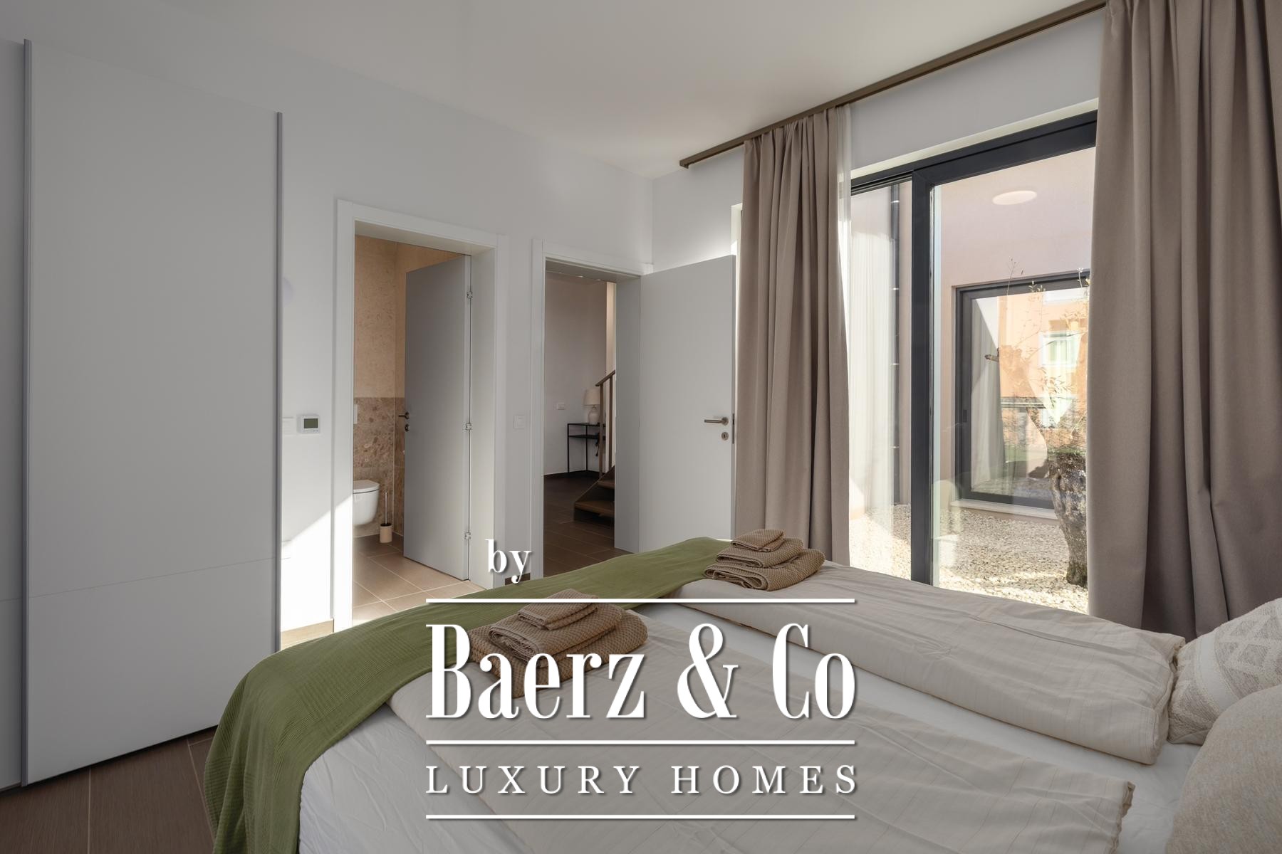 Four upstairs bedrooms each offer a private en suite, ensuring individual comfort for family members or guests. Underfloor heating via heat pump and comprehensive air conditioning in every room provide a consistently temperate environment regardless of season. This property is an impeccable example of a modern villa for sale in Umag, balancing authenticity and practicality for discerning buyers.