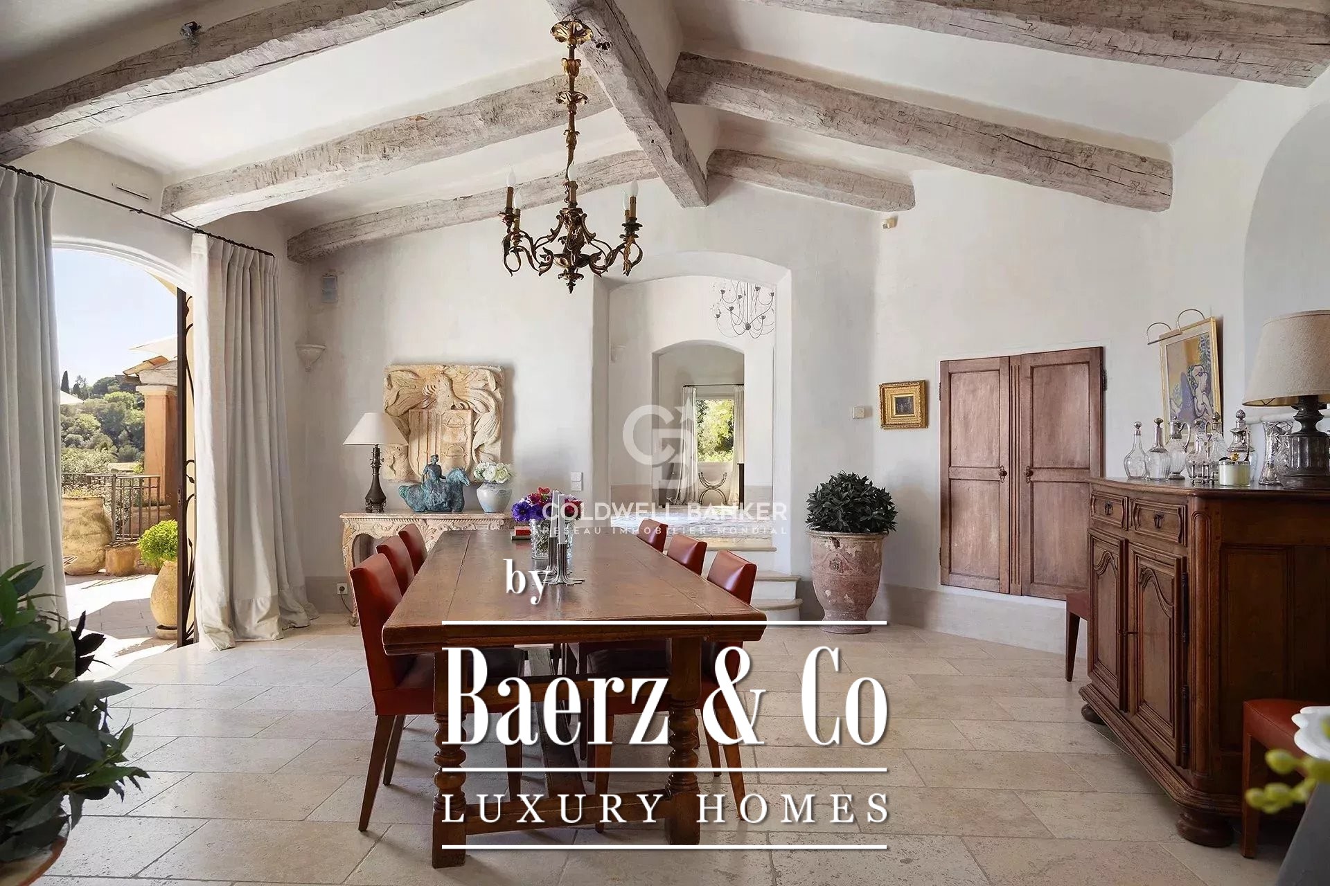 Villa Valbonne offers an understated retreat in the heart of Biot, with panoramic sea views and a lush garden that defines its serene setting. This villa, thoughtfully designed across 350 m², embodies Provençal character, expressed through natural materials, refined finishing, and generous spatial flow. The property presents a series of elegant reception rooms, a private office, and a superb kitchen with a fireplace, each space oriented to capture the garden or sea vistas. Four bedroom suites, including a master suite with an exceptional panorama, allow for privacy and tranquil renewal.