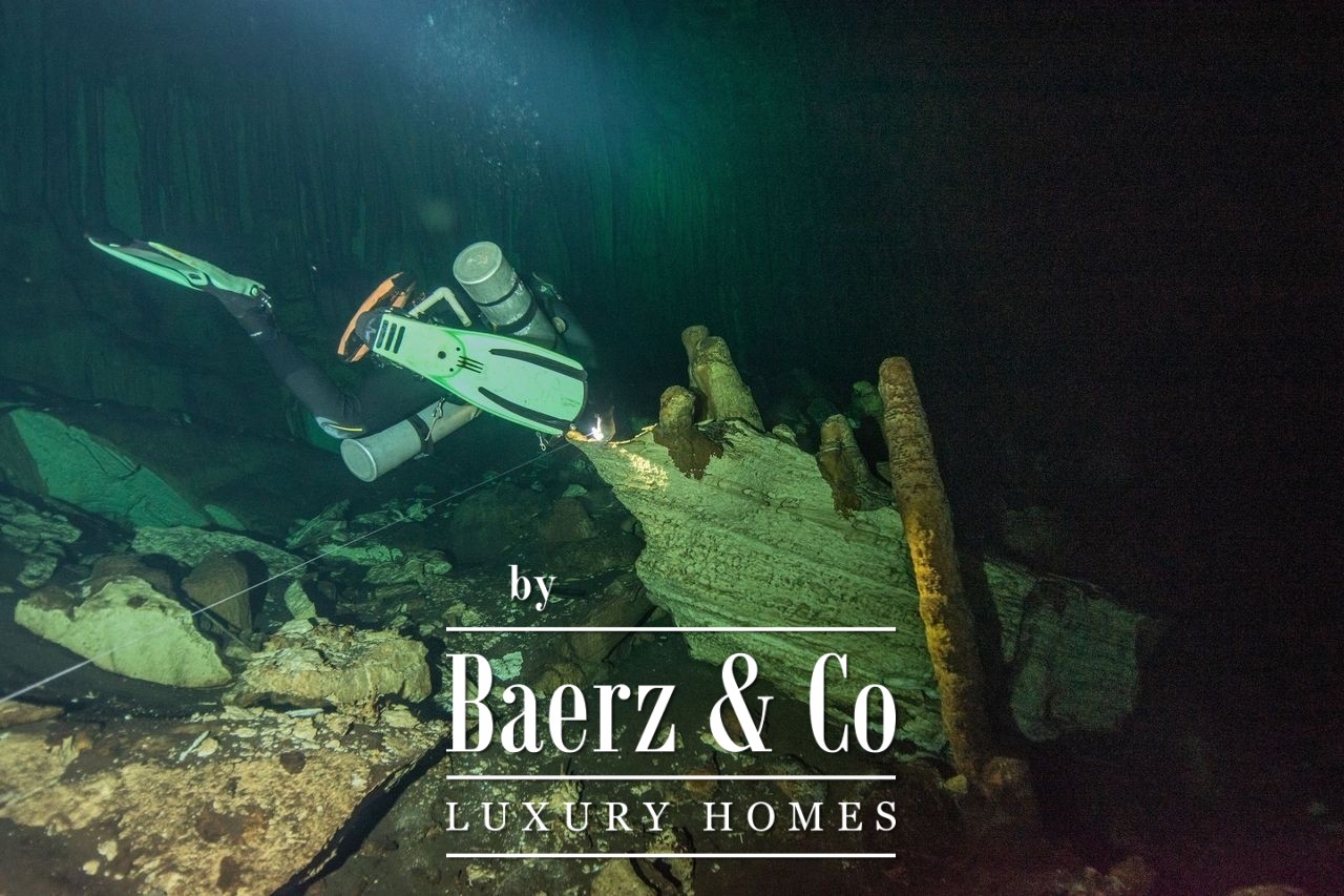 Natural elements are central to its appeal. The land contains a rare rejollada, a limestone formation creating a singular microclimate and landscape for climbing, hiking, and eco experiences scarcely found elsewhere. Beneath the property, a large underground cenote of roughly 55 meters in diameter and 60 meters in depth adds historic significance and avenues for research, having yielded Mayan artifacts during professional explorations. Water access is reachable at 18 meters, highlighting the property’s sustainability.