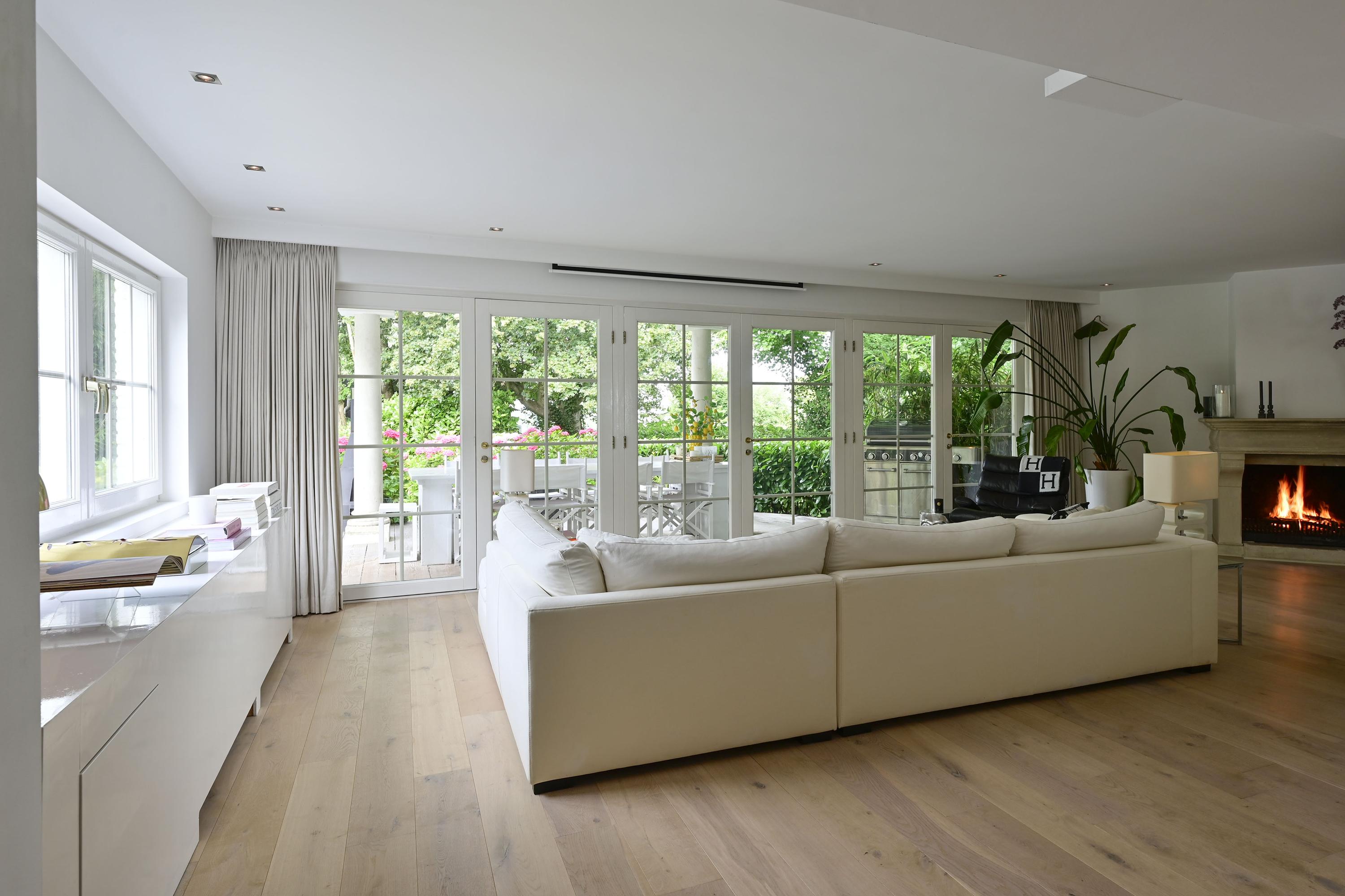 Through the spacious entrance, you step into a home where every detail has been thoughtfully considered. The generous hallway feels welcoming and open. A stylish staircase and practical built-in wardrobe under the stairs complete the space. The oak wood engineered parquet floor with underfloor heating provides both warmth and elegance.