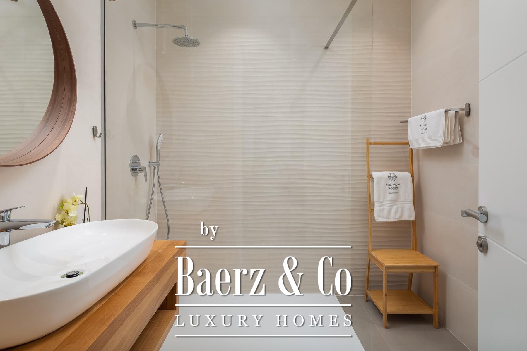 a terrace with a sea view.The villa is superbly equipped, and we would like to highlight the following: underfloor heating connected to a heat pump, an electric car charger in the garage, aluminum joinery, Miele kitchen appliances, central vacuum cleaner, saltwater pool with counter-current swimming system, smart remote home control system, summer kitchen with professional appliances, preparation for solar panels on the roof, electric bicycles...A beautiful garden and sunbathing area surrounds the villa. In addition to the garage, the villa has parking for 3 cars. The microlocation of the villa is excellent, in a very quiet place, yet only 900 meters from the sea.All other information on request.