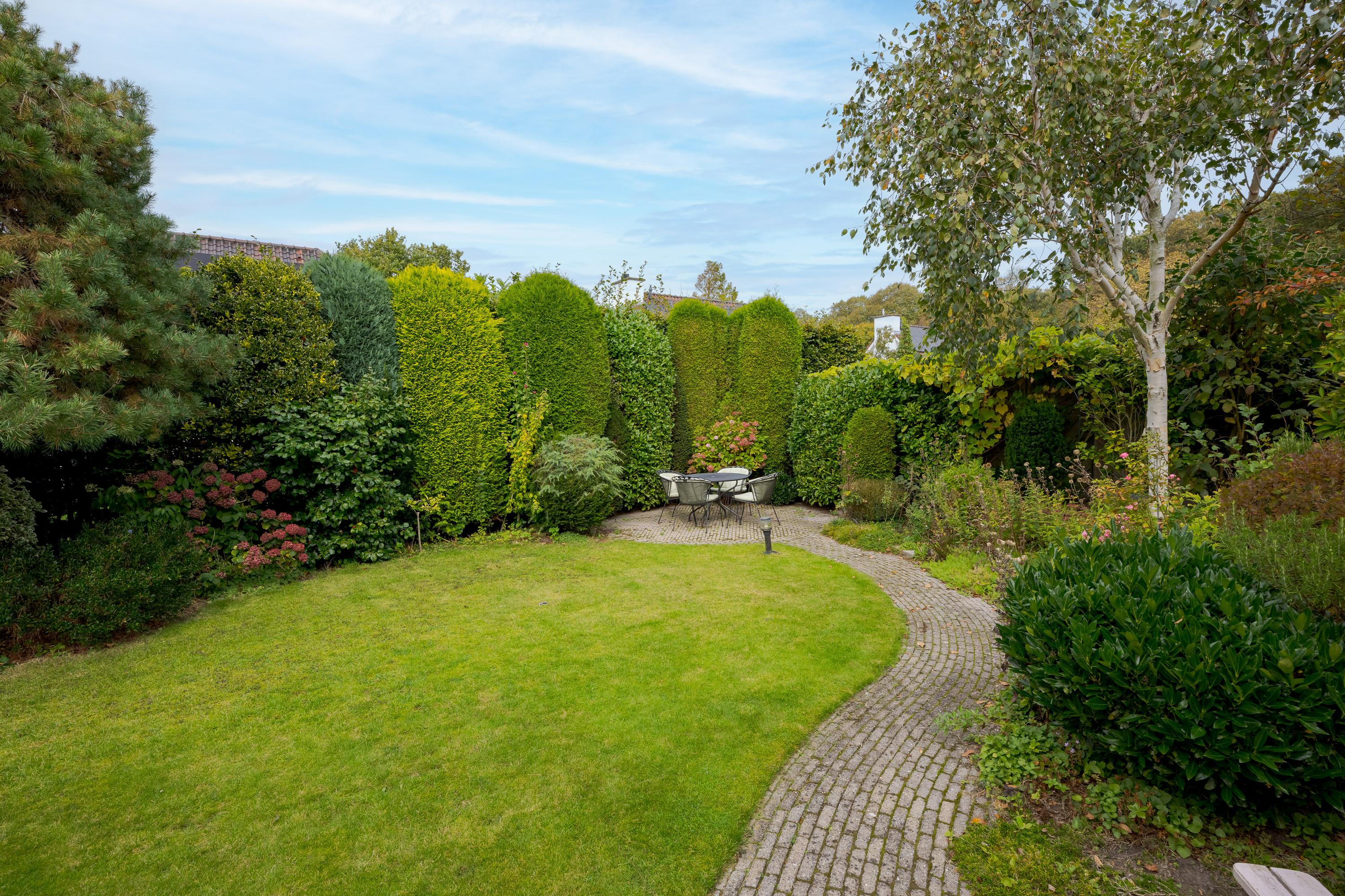 The beautifully landscaped garden surrounding the house offers several terraces and seating areas, where you can choose between sun and shade throughout the day. The mature planting ensures complete privacy and a green view year-round.