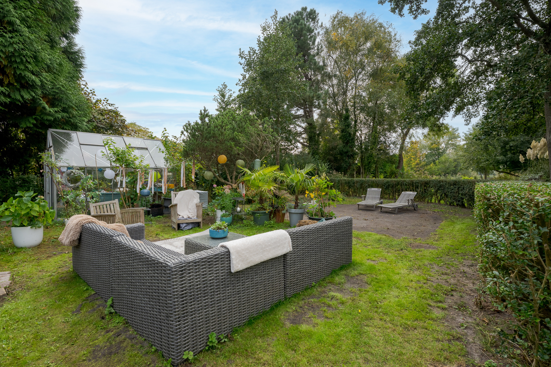 In truly the most beautiful location in Warmond, at a dead end, nestled among trees and water features, lies this truly unique villa. The house itself is a so-called Finn House, a highly sustainable wooden house in typical Scandinavian colors, making it a perfect fit for the green and watery surroundings.
