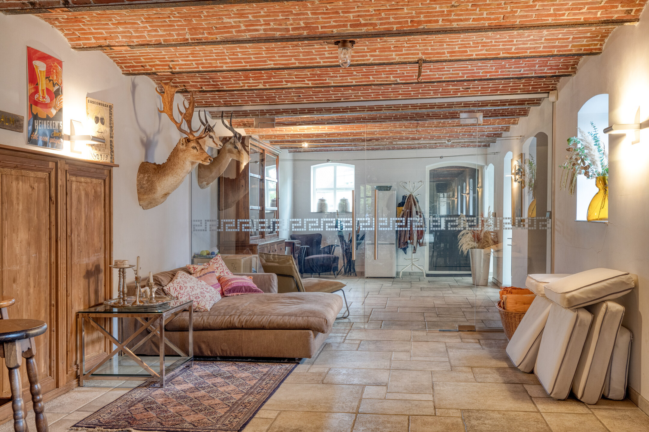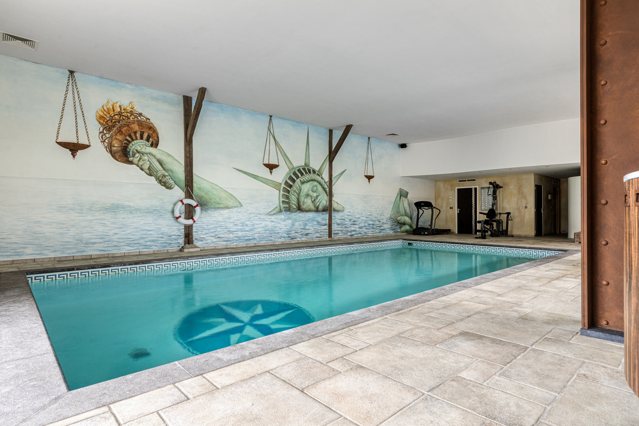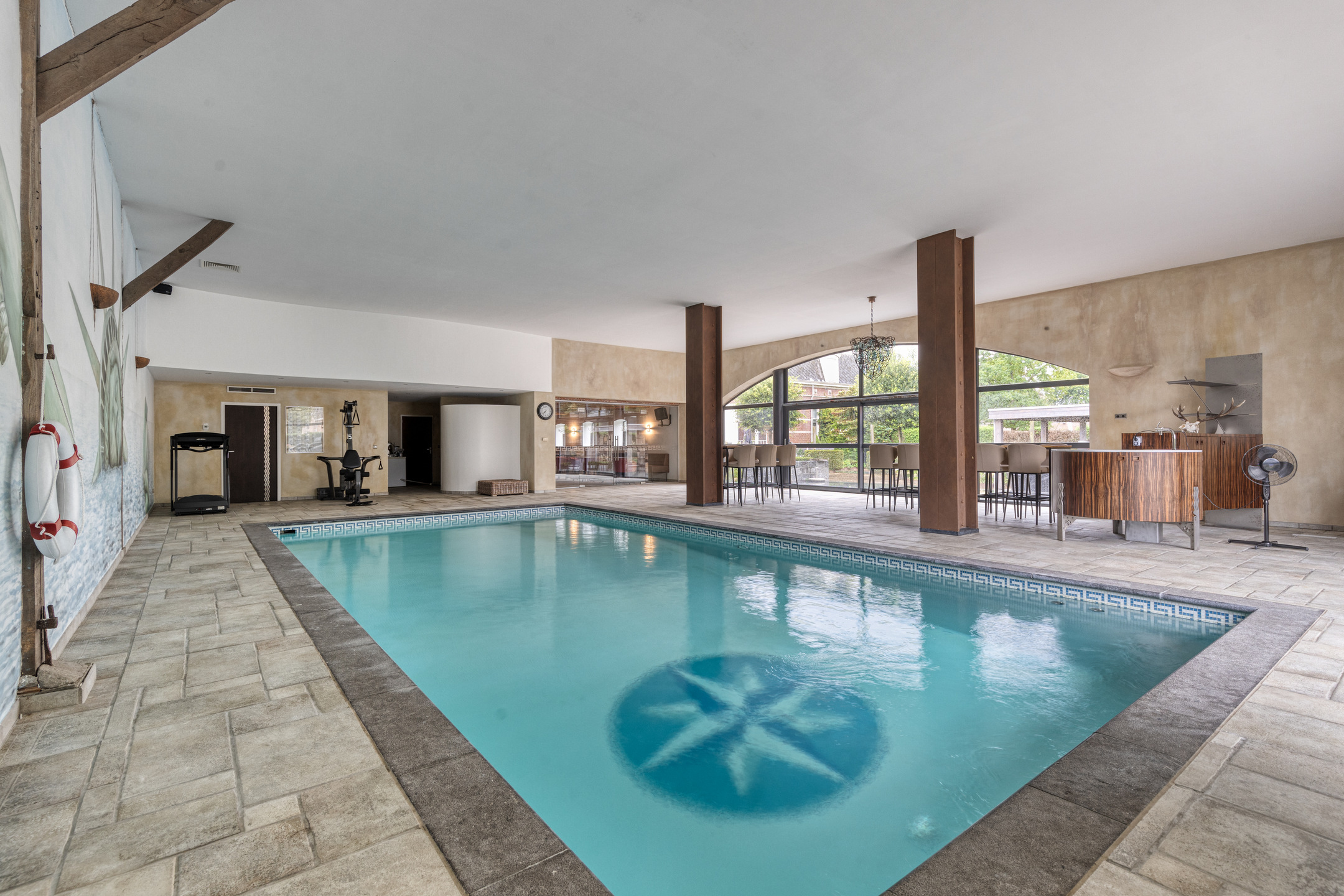 Het fraaie bijgebouw is voorzien van een ontspannings- en wellnessruimte met een bar, overdekt zwembad, sauna, was- en douchegelegenheid, fitness-ruimte, 3 royale garages en een berging.