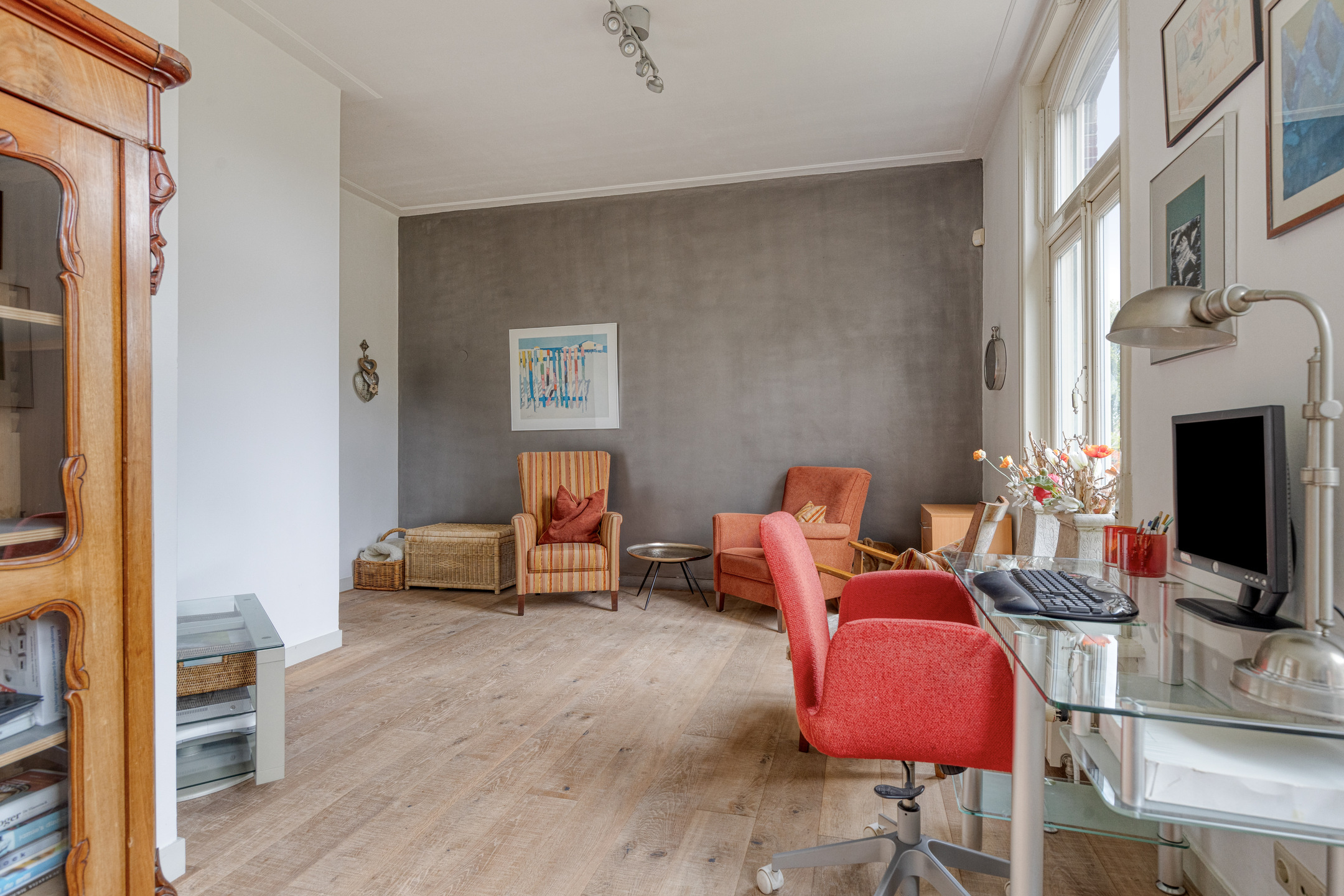 werkkamer (ca. 18 m²) met een schouwpartij, wandafwerking stucwerk, parketvloer, authentiek plafond;