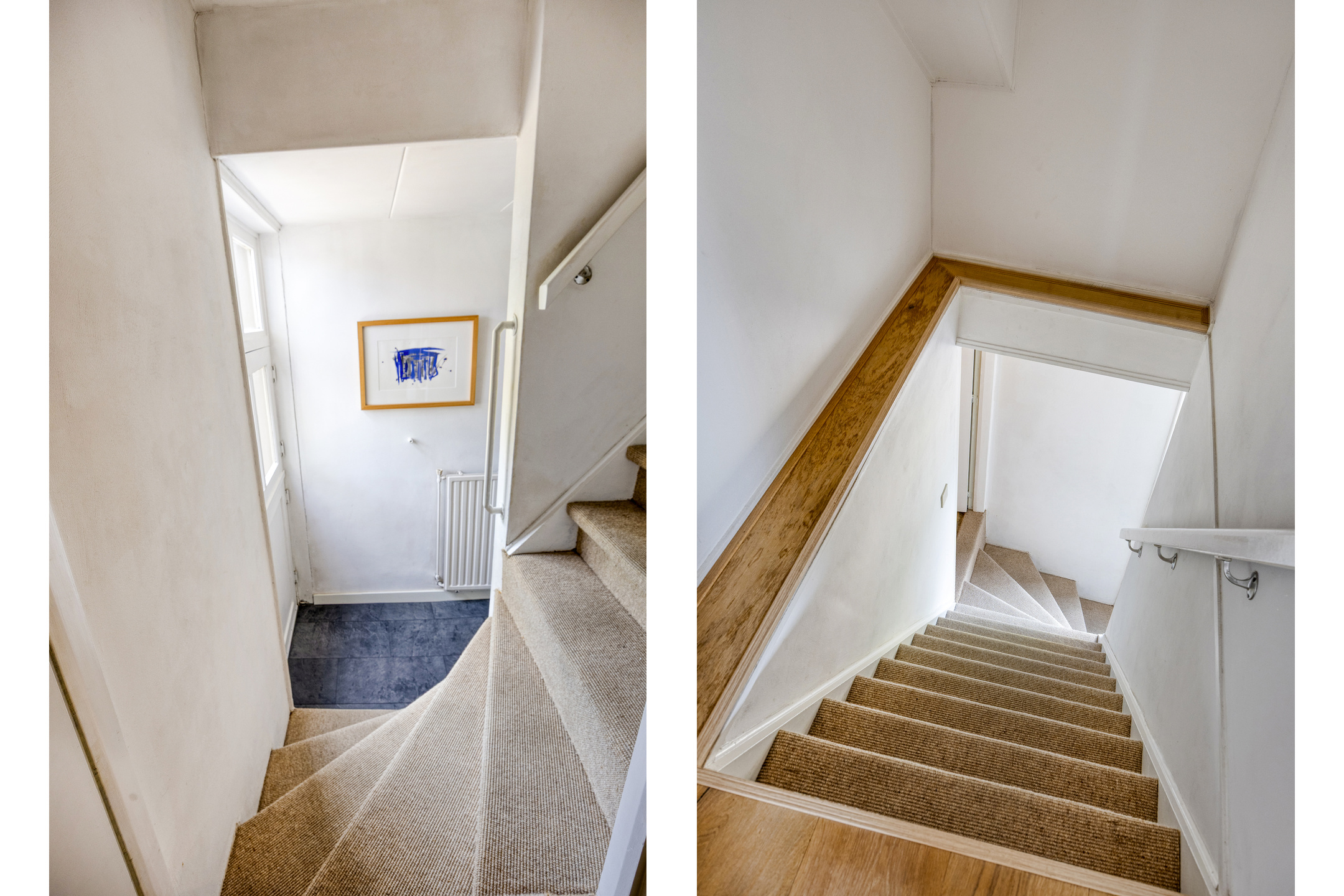 Side entrance hall with cloakroom, staircase to the first floor and access to the cellar; plastered walls, tiled floor, ceiling finished with plasterboard;