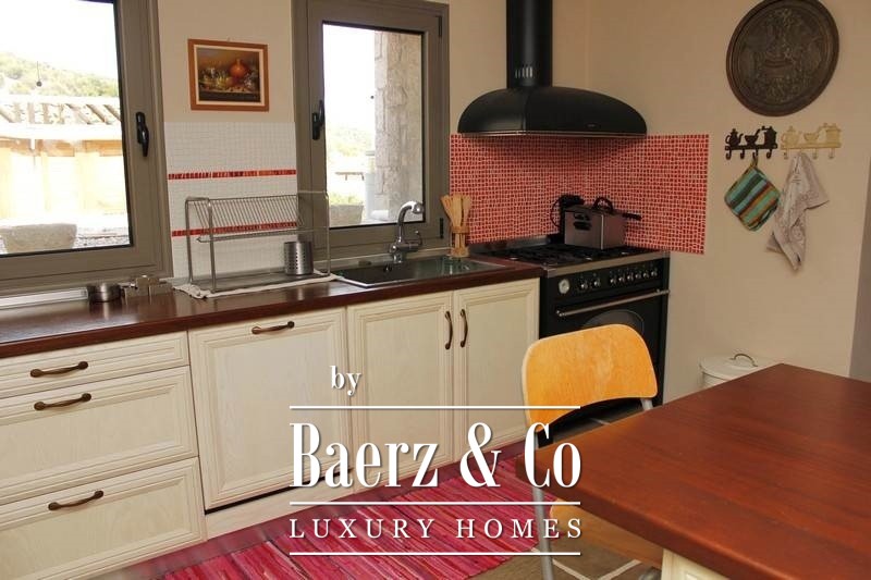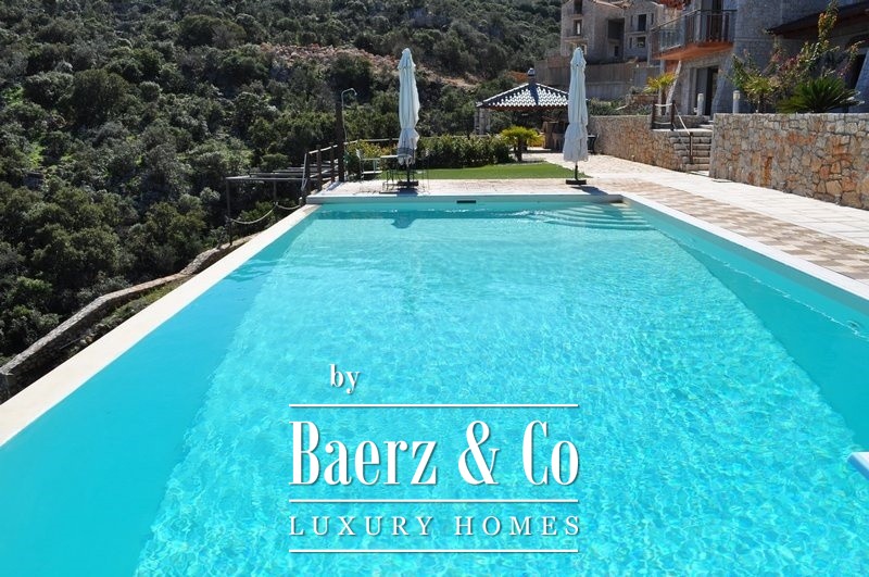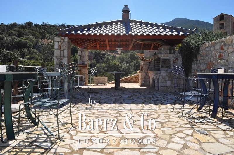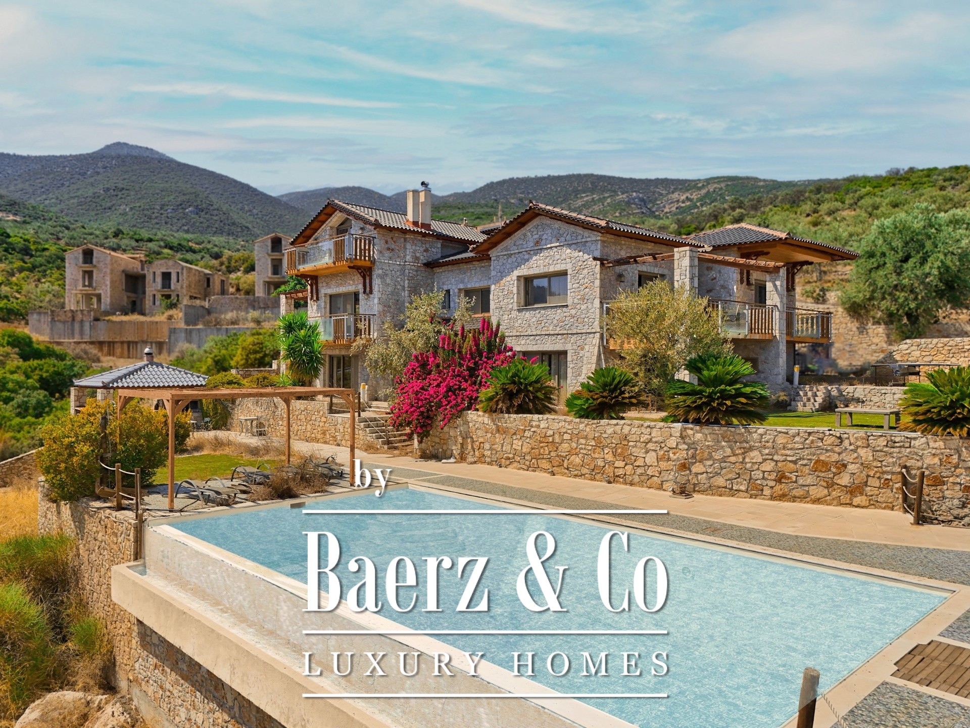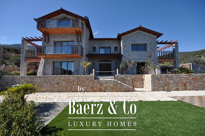 Just 1 km from the sea, in a lush olive grove, a unique stone-built villa with a total area of ​​380 sq m is offered for sale, built on a private plot of 9,000 sq m. The residence combines traditional architecture with modern comfort in a unique way, while the unobstructed and panoramic sea view dominates all areas. The 1st level (160 sq m) includes a bright kitchen, dining area, two living rooms with large openings, 1 WC and direct access to the well-kept garden. On the 2nd level (160 sq m) we find three spacious bedrooms – each with its own terrace – as well as areas that can be configured as an office or gym, and 2 bathrooms. The