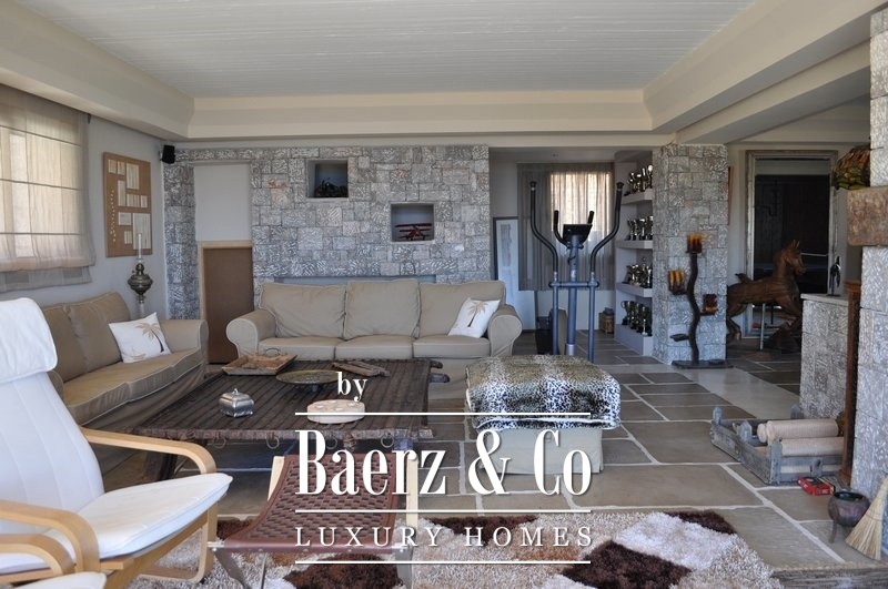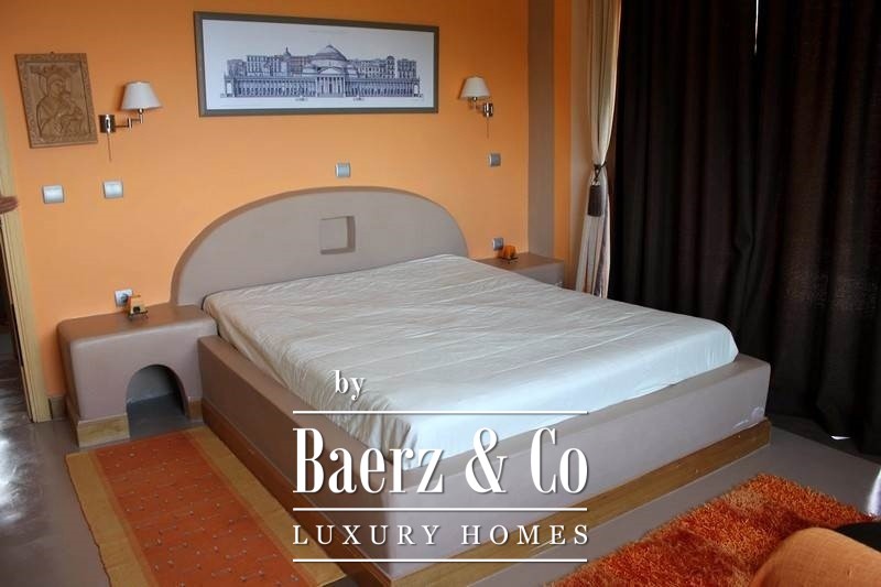 3rd level (60 sq m) hosts a special open-plan space with a fireplace, bathroom and balcony with a magnificent view. The house is sold fully furnished and equipped, has infrastructure for an elevator, 2 fireplaces, autonomous heating/cooling and thermally broken aluminum frames. The surrounding area is carefully landscaped and includes lush planting, as well as an impressive 72 sq.m. infinity pool, which enhances the character of the villa as an ideal relaxation haven. A house with a strong traditional character, special architecture and excellent, unobstructed sea view that can satisfy even the most demanding buyer.