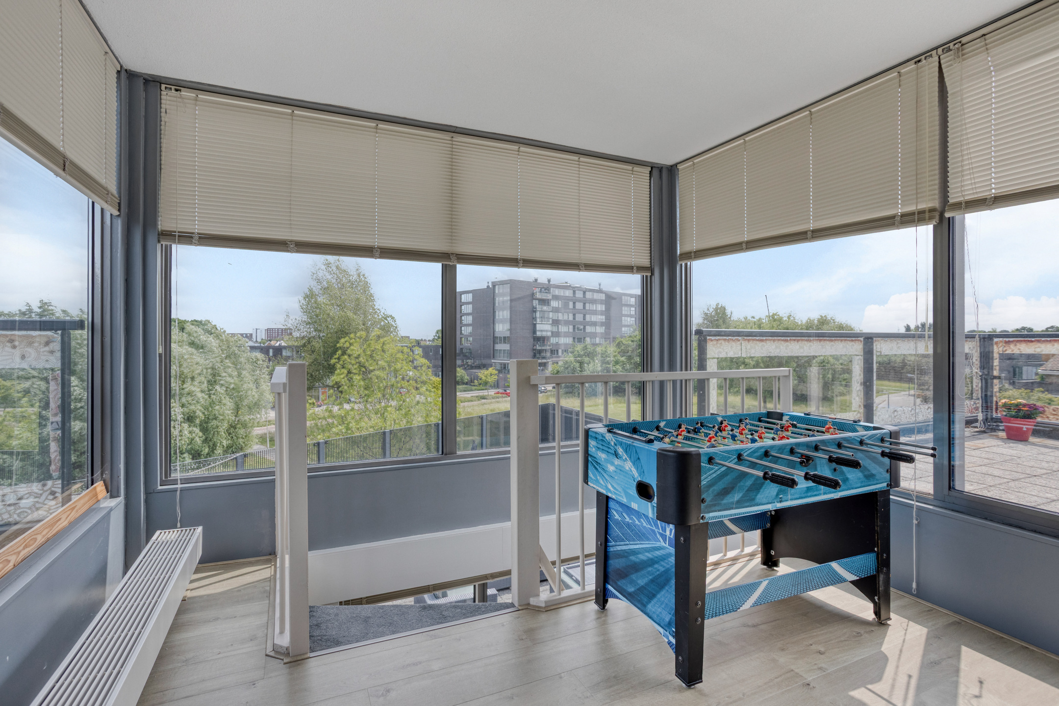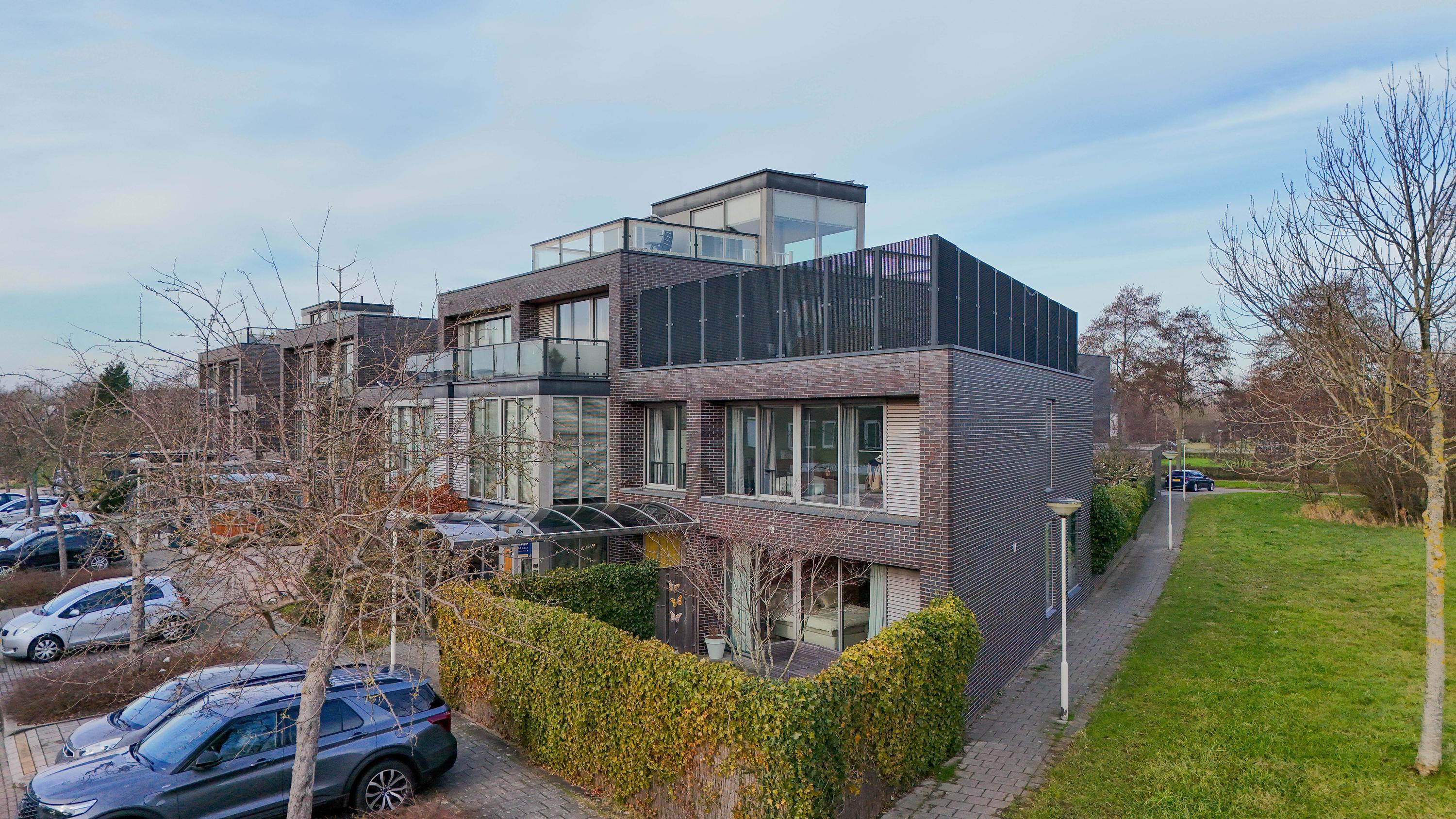 The outdoor space is just as impressive: a total of 168 m2 of outdoor area divided over a spacious front garden, back garden, 3 balconies and 3 roof terraces. This means you always have a spot in the sun as well as privacy. There is parking space on private property under the carport and there is even a private charging station available. The location in a green, quiet neighbourhood of Zoetermeer completes the living comfort. From the living room you have an unobstructed view over a green strip and mature trees – a rare combination of space, privacy and nature within easy reach.