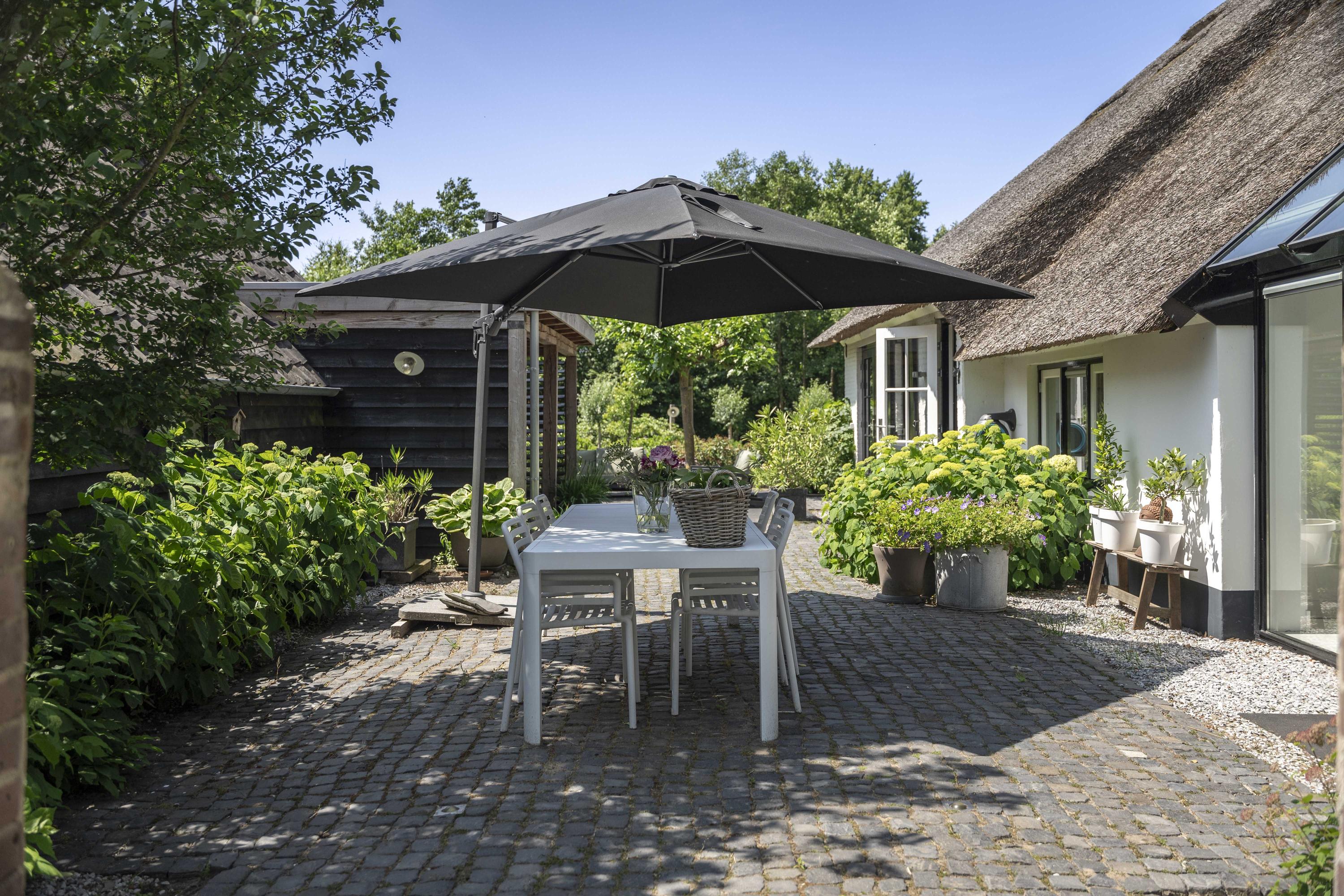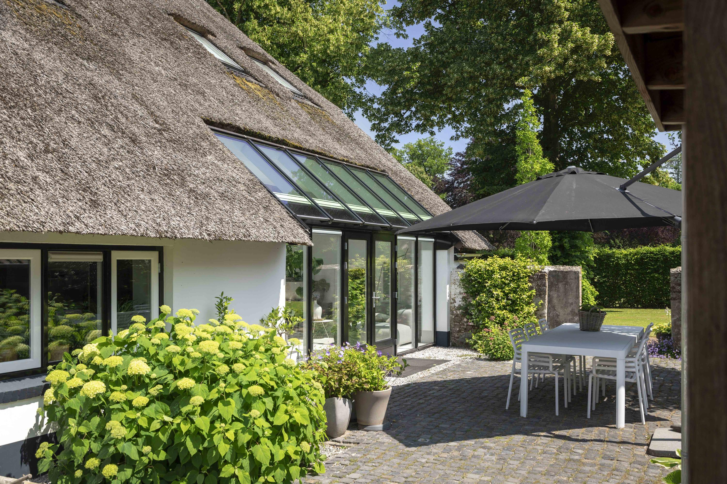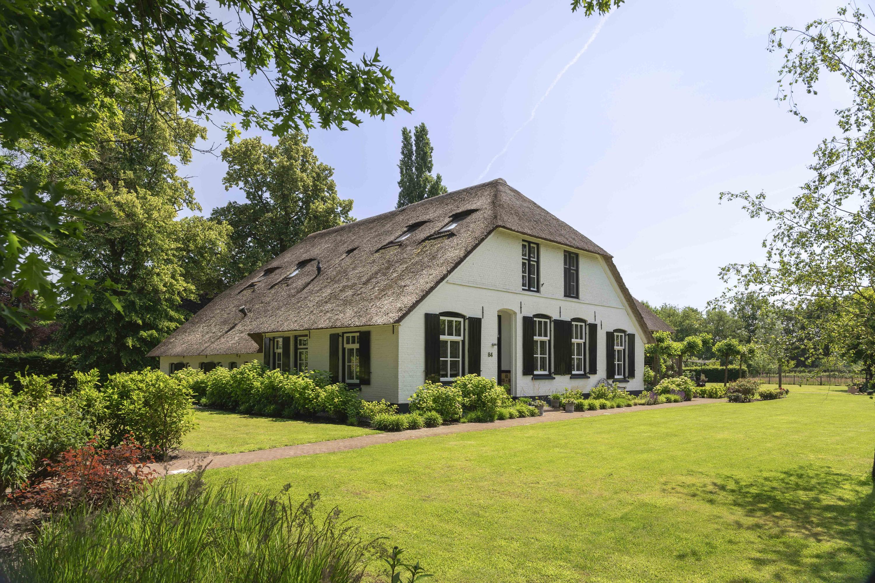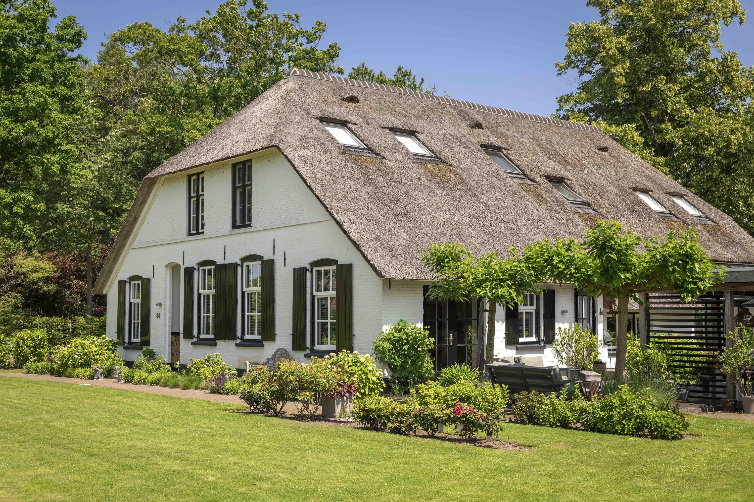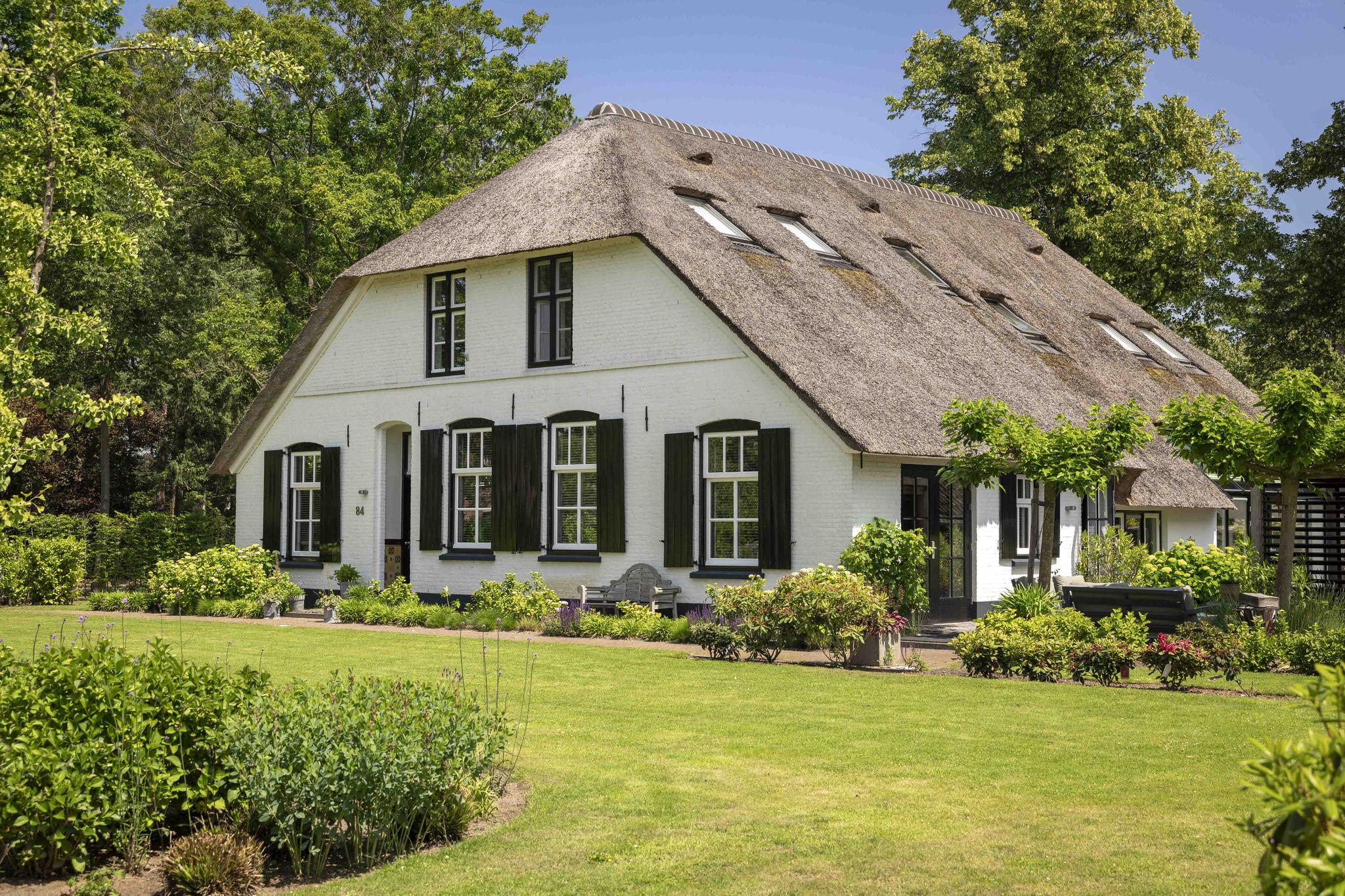 Woonboerderij Almen propone un raro diálogo entre la tradición holandesa y la visión contemporánea, ofreciendo un refugio junto al agua definido por su tejado de paja y fachadas blancas inmaculadas. Esta propiedad, originalmente construida en 1926 y transformada en años recientes, descansa en silencio en la cabecera del dique, a minutos de las arboladas rutas de Zutphen y de sus pueblos históricos circundantes. El acceso se desarrolla por un sendero de grava, flanqueado por rododendros maduros, hasta una parcela privada de 8.415 m².