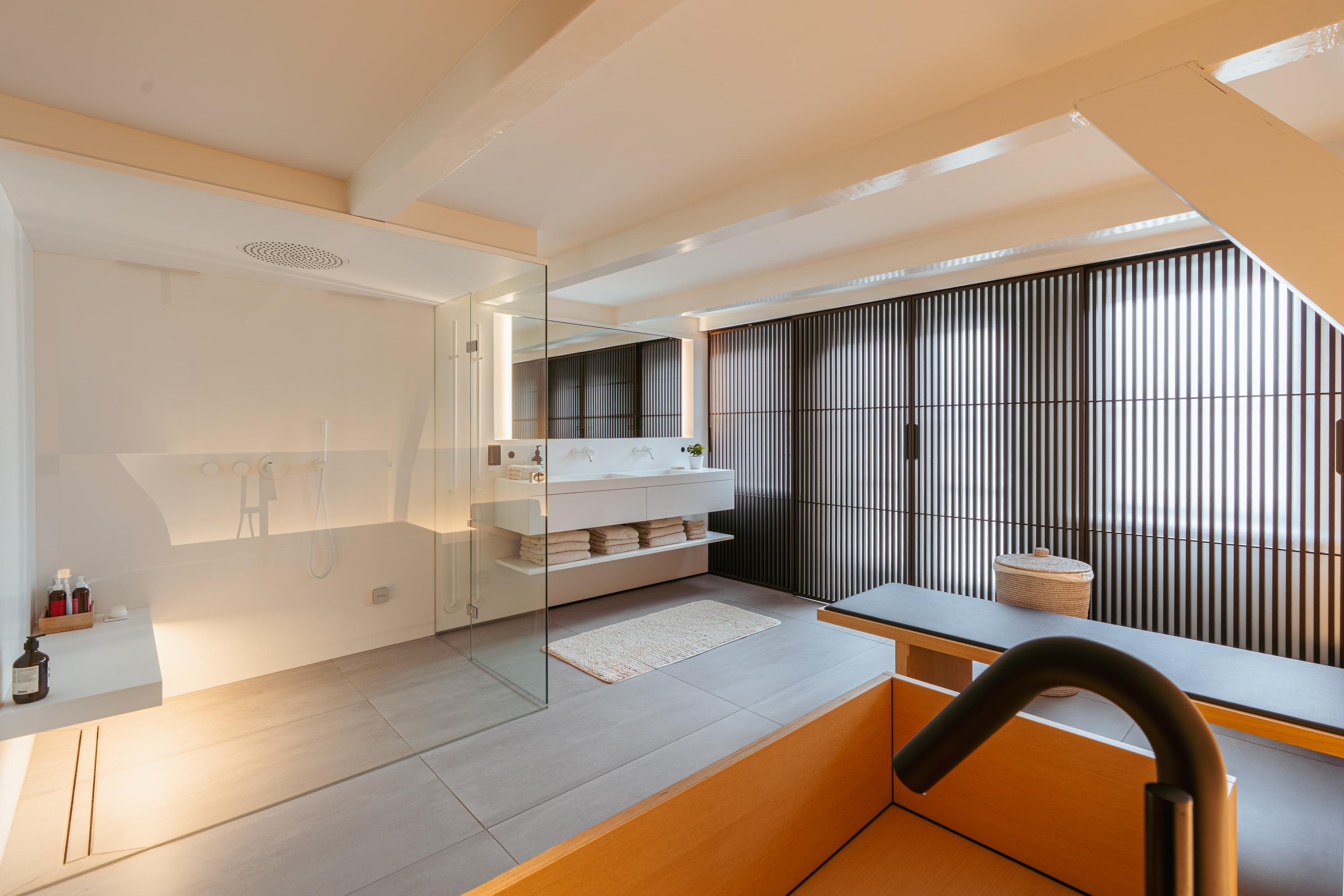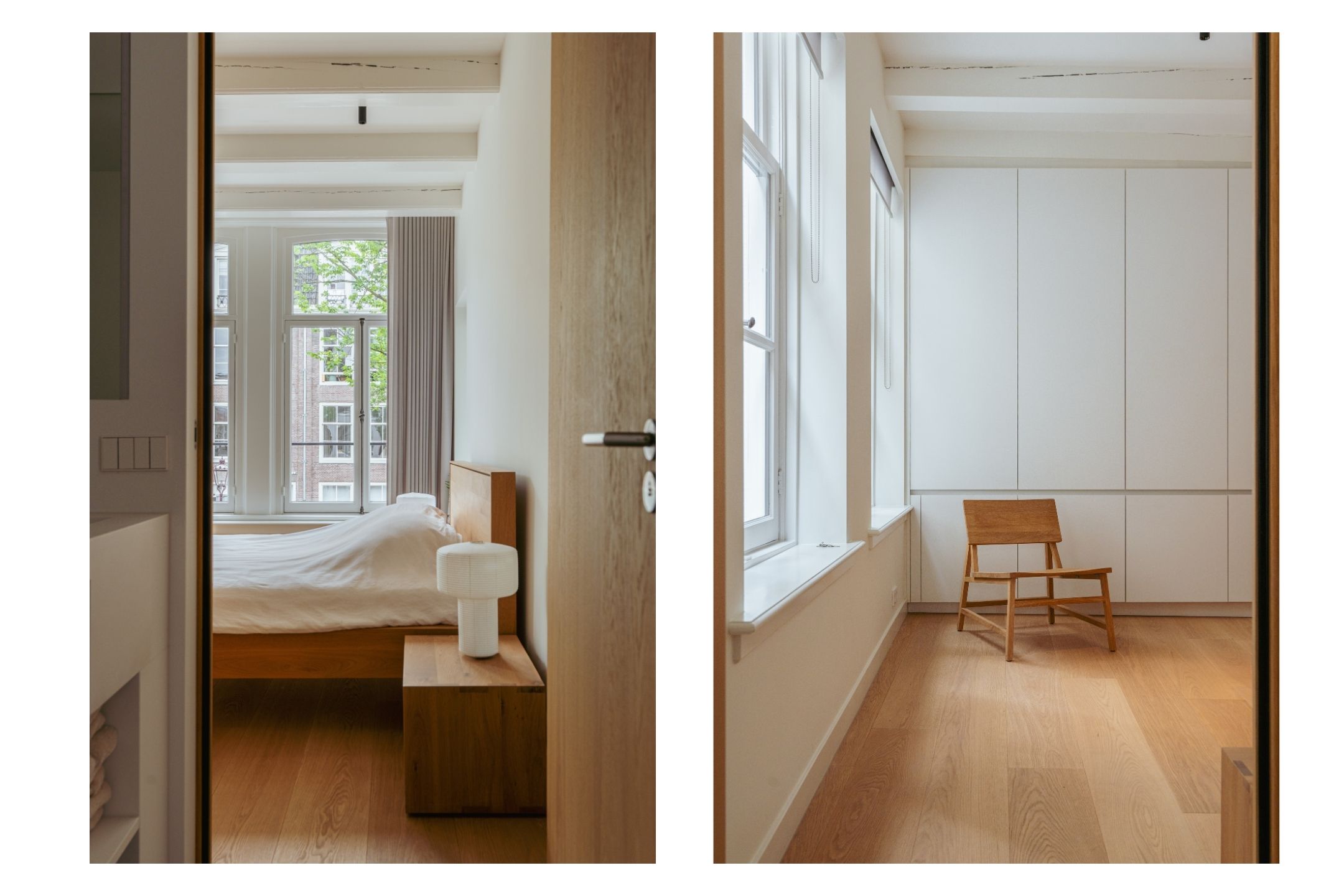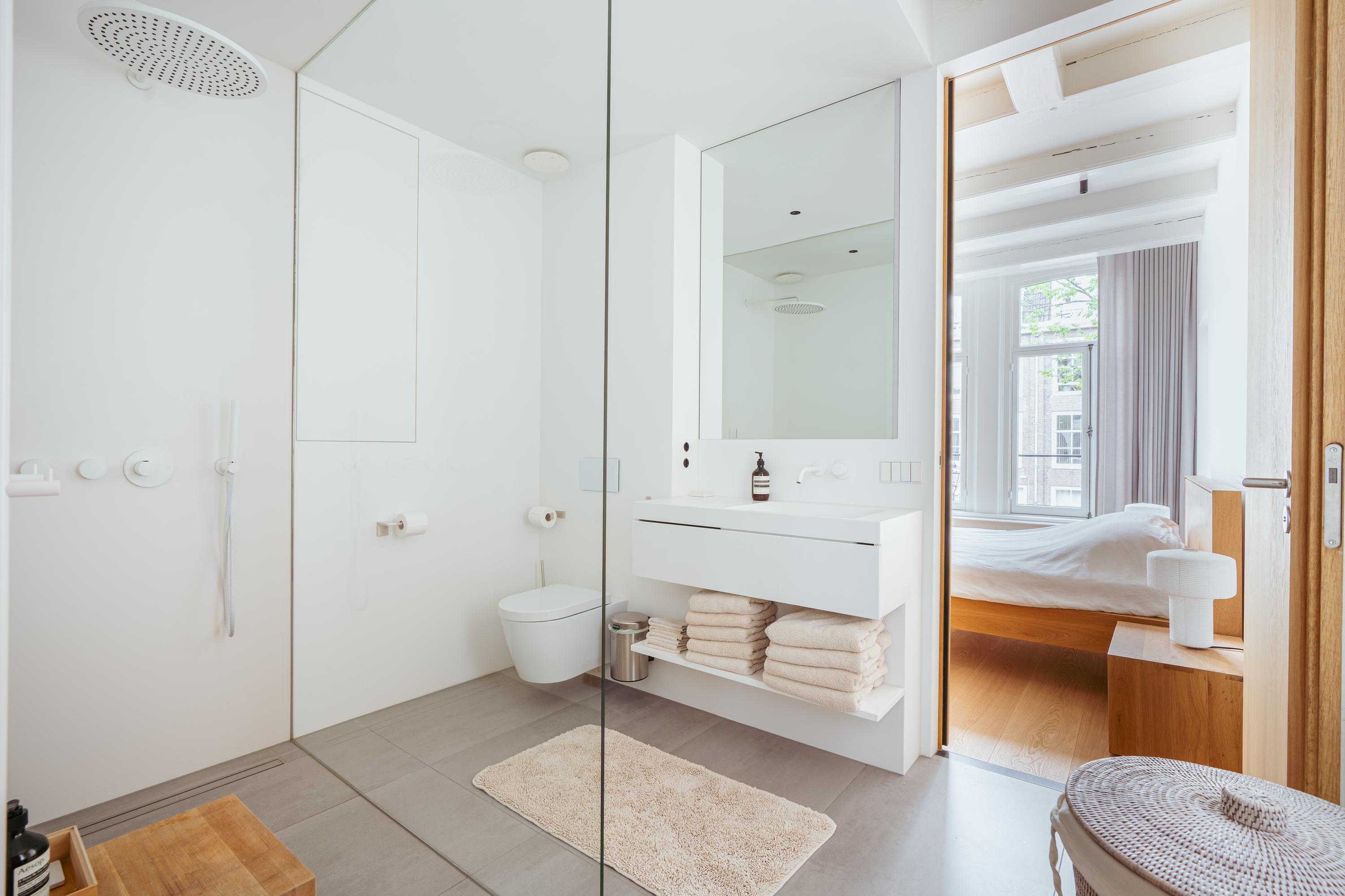 Canal House Amsterdam define una presencia sofisticada en el legendario cinturón de canales de la ciudad, discretamente situado entre Herengracht y Singel. Esta residencia de cinco plantas ofrece aproximadamente 239 m² de espacio habitable y fusiona su origen histórico con detalles minimalistas japoneses, resultado de una meticulosa renovación en 2020. Al entrar, la planta baja presenta un espacio comercial multifuncional presidido por madera de roble, vigas expuestas y abundante luz natural, ideal para un estudio discreto o una oficina en casa. Los pisos superiores albergan tres dormitorios tranquilos y dos baños, cada uno acabado con un elevado y atemporal estándar. La suite principal incluye un baño privado de bienestar con bañera Agape exenta, ducha a ras de suelo, cabina de vapor y una tumbona integrada, enriquecida con iluminación ambiental y cálidas texturas de madera.