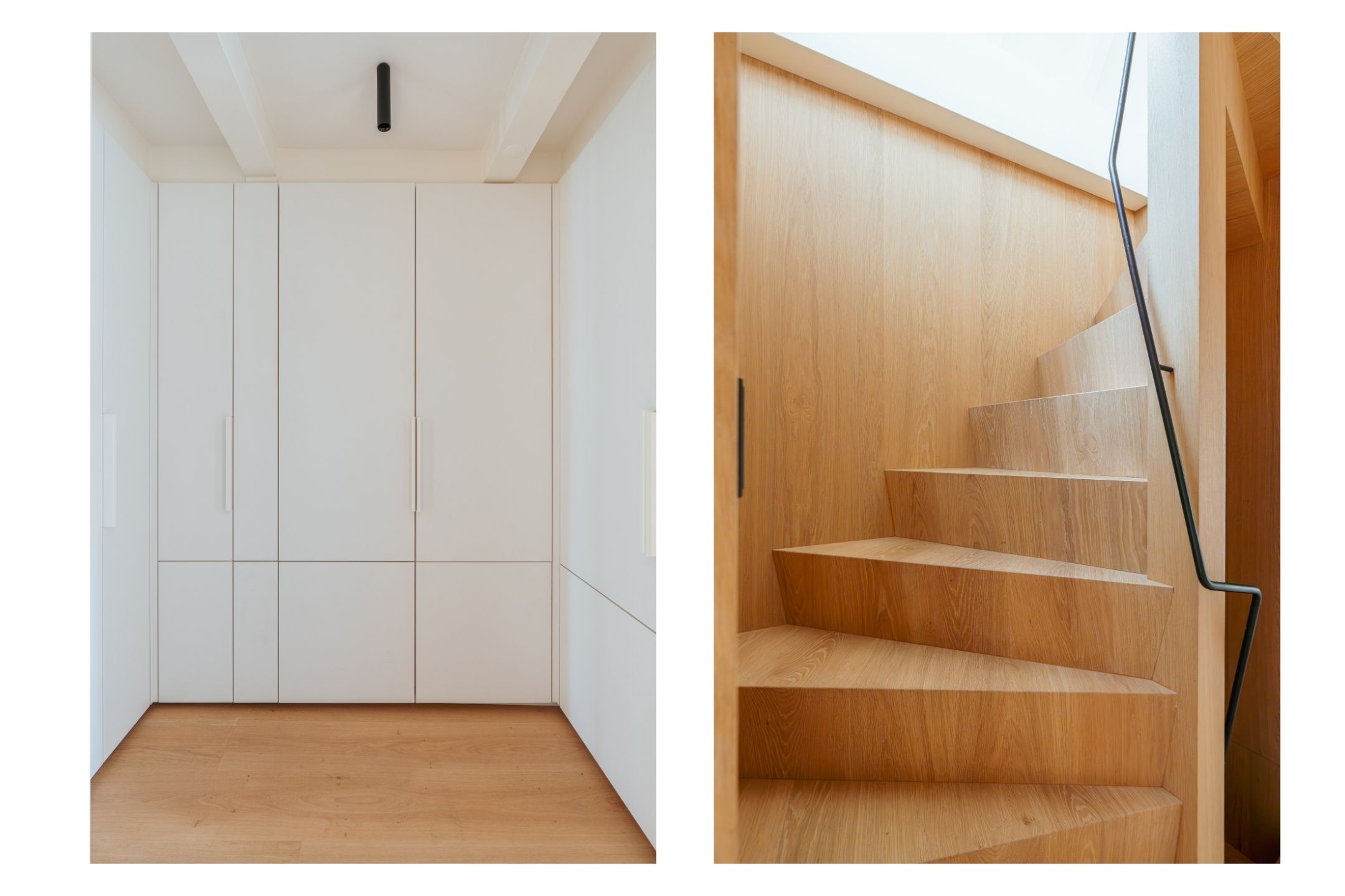 La segunda planta está dedicada a la vida familiar y social, con una moderna cocina dotada de electrodomésticos premium, isla central y amplios espacios para relajarse, todo enmarcado por vistas al canal a través de altos ventanales. Los momentos privados se extienden hasta el balcón del último piso, un refugio íntimo bajo techos inclinados. En toda la vivienda, suelos de roble macizo, calefacción por suelo radiante de alta eficiencia y un sistema climático totalmente actualizado reflejan el compromiso con el confort y la sostenibilidad, avalado por una etiqueta energética A+++.