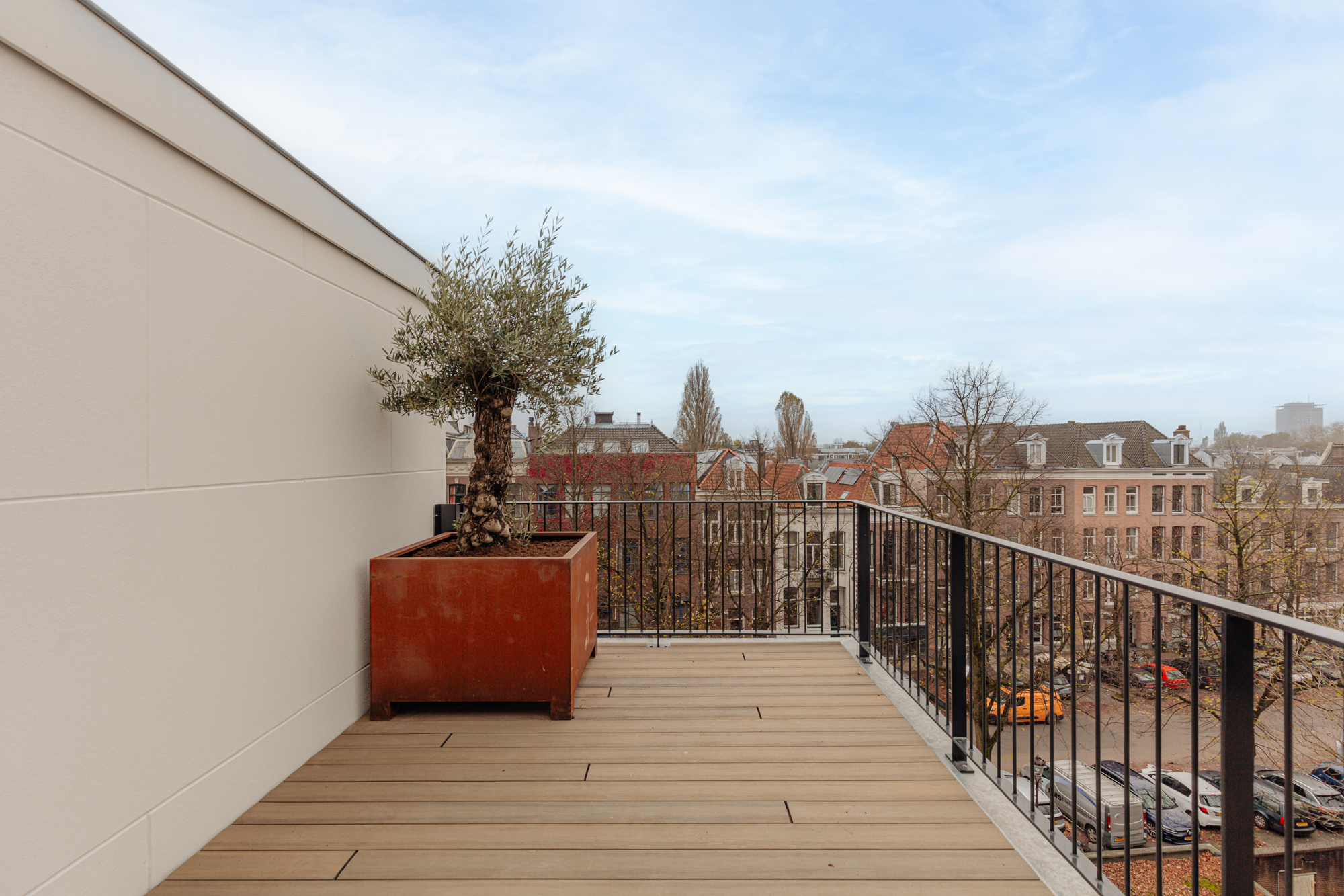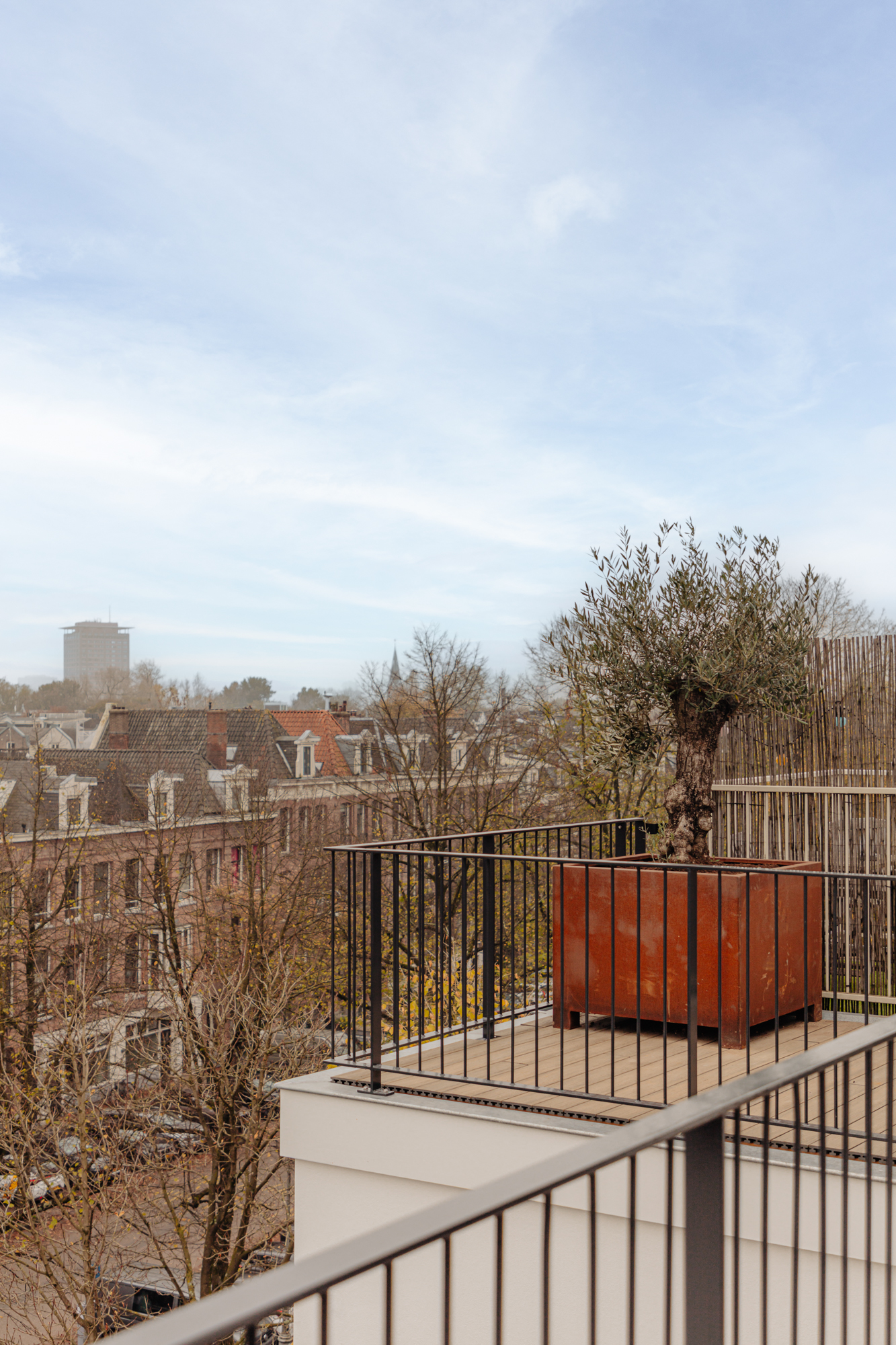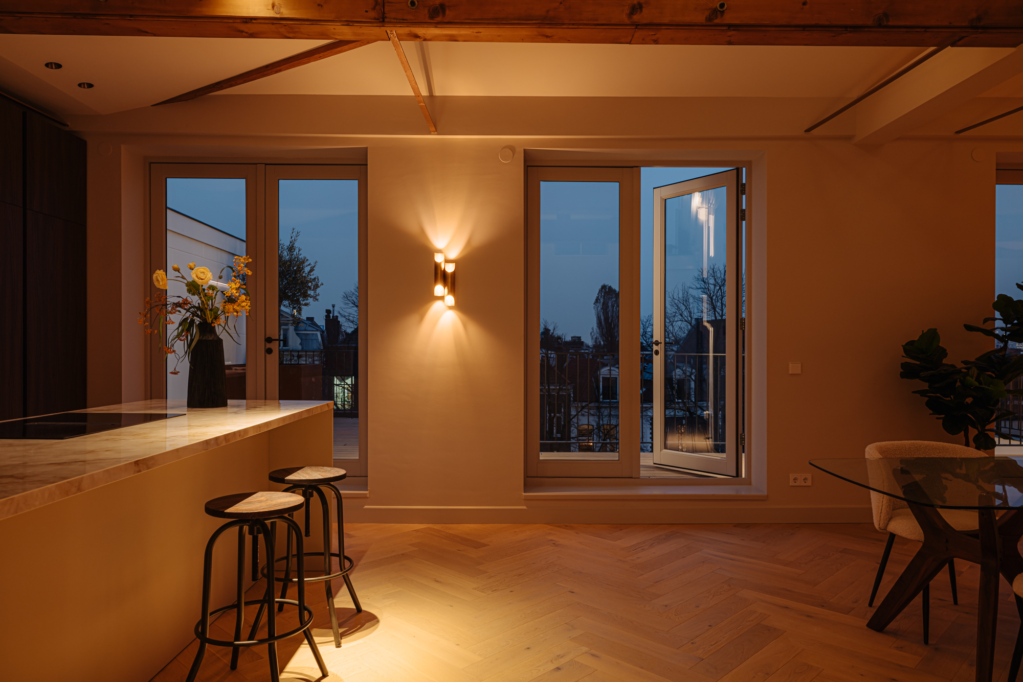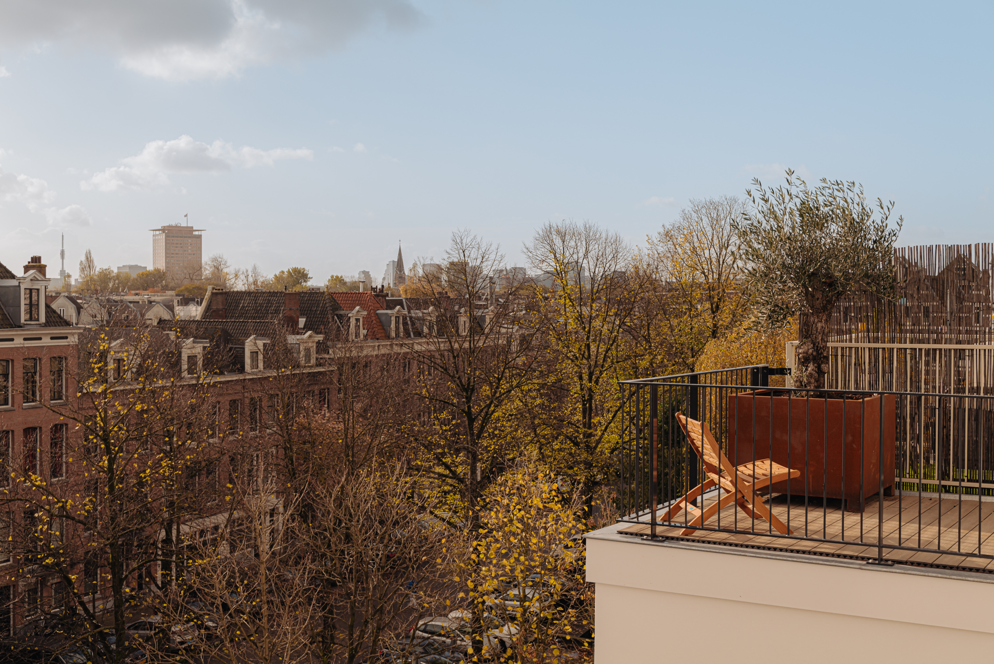 Penthouse Amsterdam ofrece lujo discreto y una experiencia residencial serena en uno de los barrios más vibrantes de la ciudad. Esta refinada residencia abarca aproximadamente 148 m², con tres dormitorios, dos baños y una luminosa zona de estar de planta abierta que se integra elegantemente con una terraza en la azotea de 38 m² orientada al sur. Los materiales han sido cuidadosamente seleccionados, incluyendo suelos de espiga de alta gama, techos altos y un esquema de iluminación armonioso que realza la atmósfera tranquila.