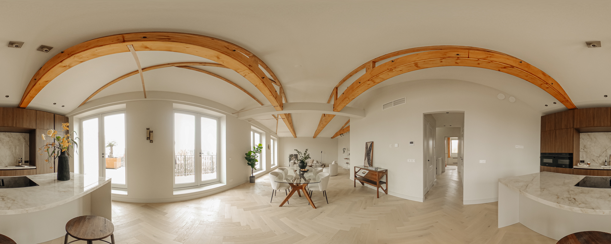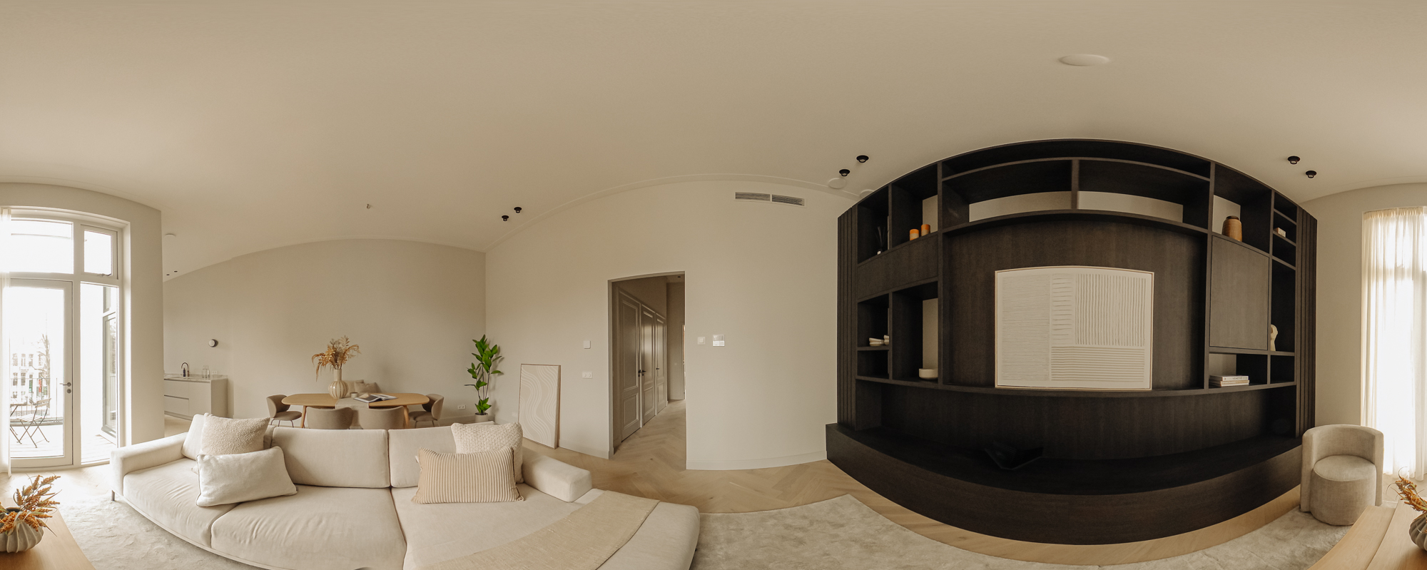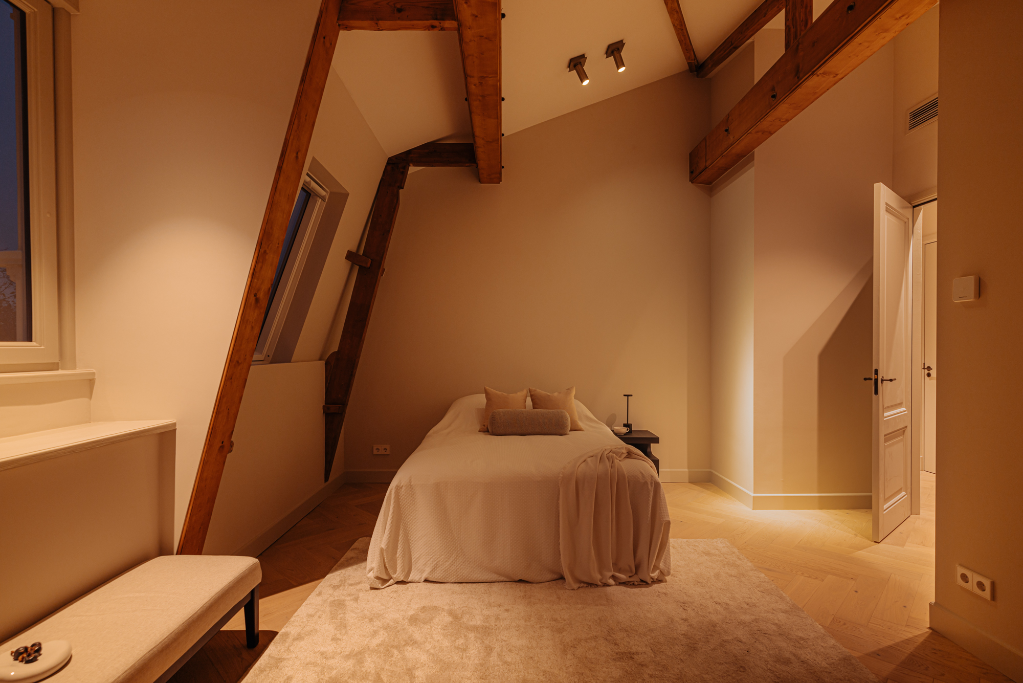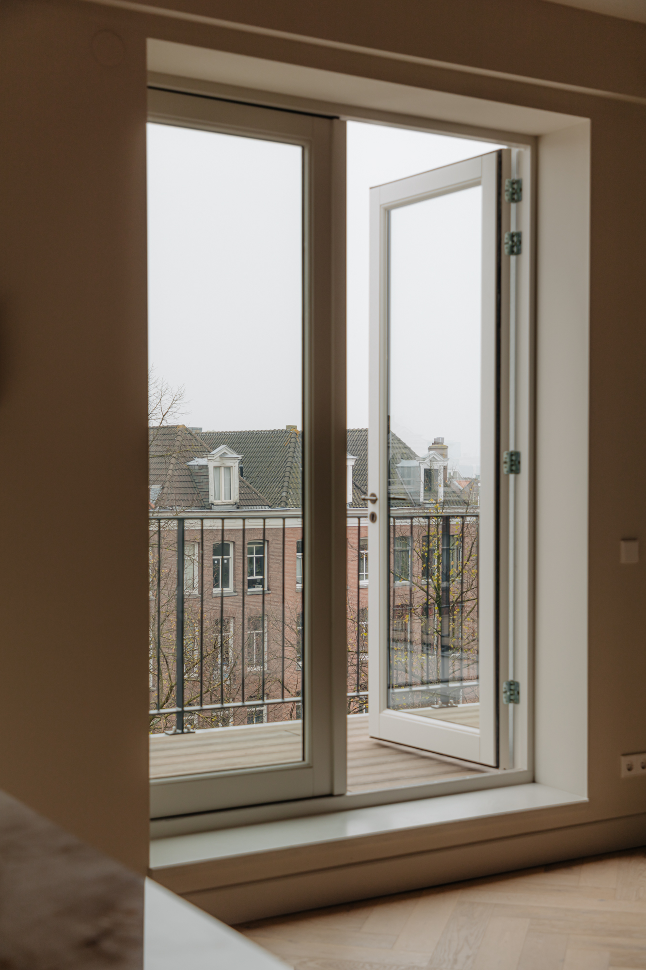 Penthouse Amsterdam ofrece lujo discreto y una experiencia residencial serena en uno de los barrios más vibrantes de la ciudad. Esta refinada residencia abarca aproximadamente 148 m², con tres dormitorios, dos baños y una luminosa zona de estar de planta abierta que se integra elegantemente con una terraza en la azotea de 38 m² orientada al sur. Los materiales han sido cuidadosamente seleccionados, incluyendo suelos de espiga de alta gama, techos altos y un esquema de iluminación armonioso que realza la atmósfera tranquila.