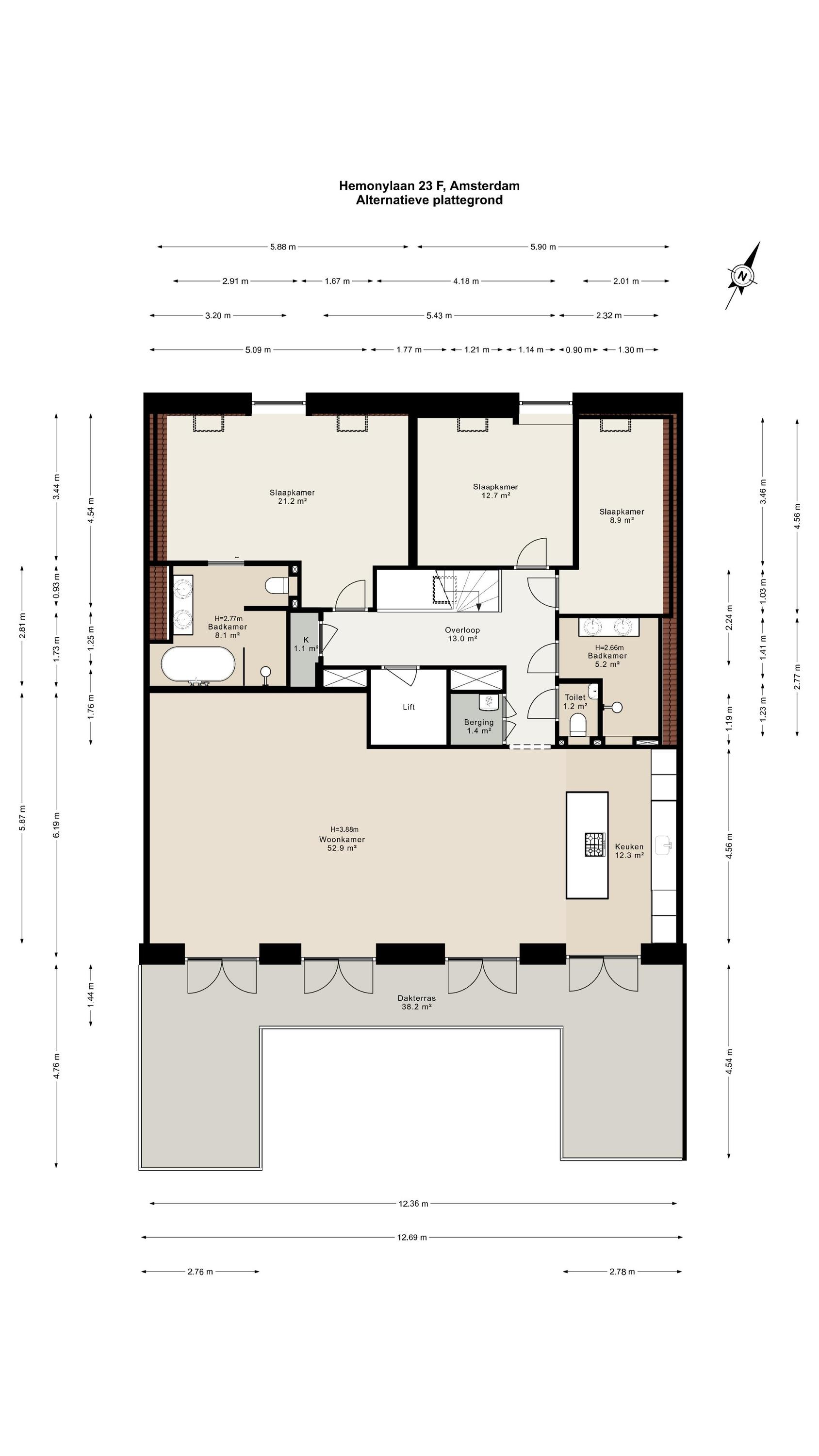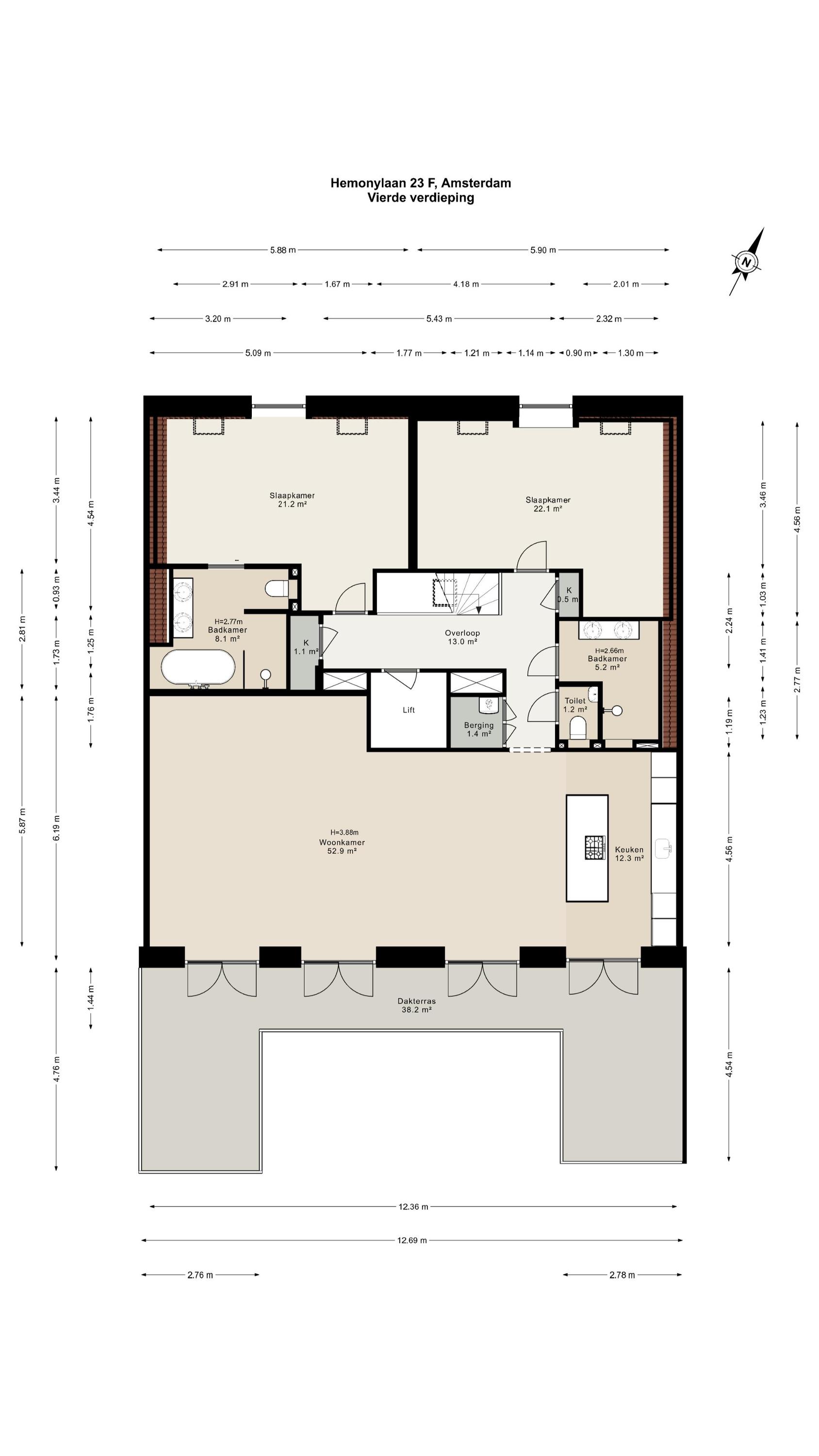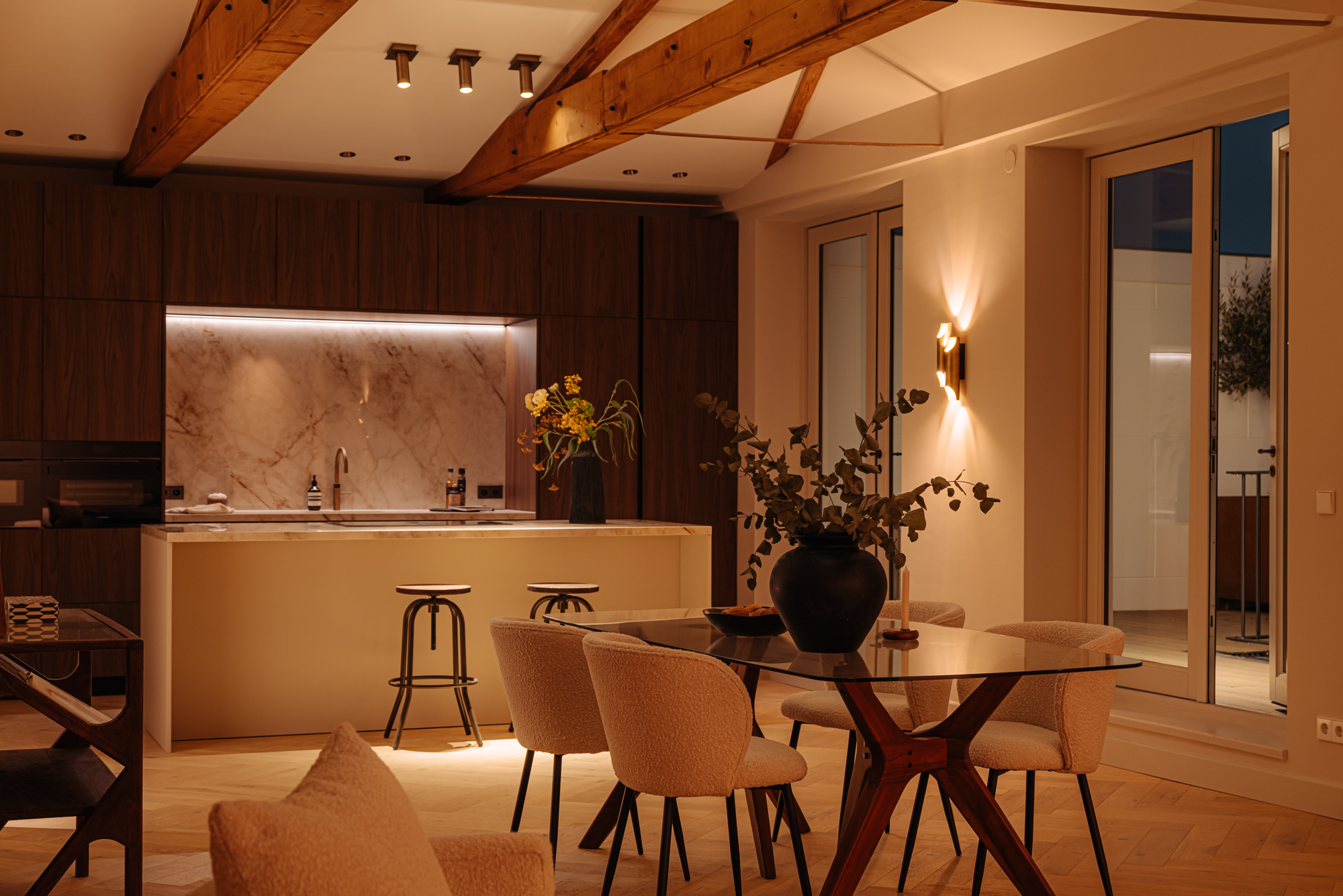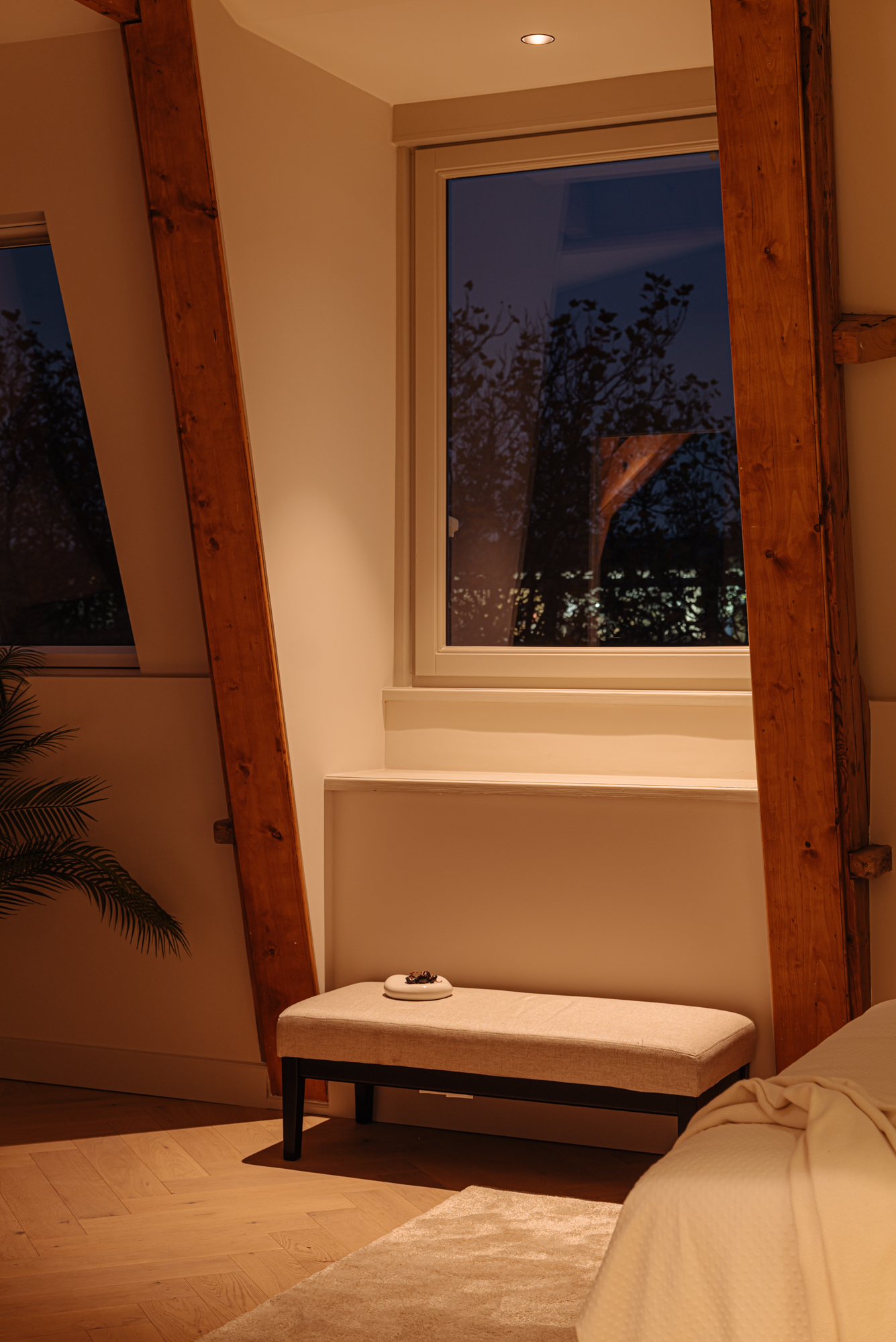 Penthouse Amsterdam ofrece lujo discreto y una experiencia residencial serena en uno de los barrios más vibrantes de la ciudad. Esta refinada residencia abarca aproximadamente 148 m², con tres dormitorios, dos baños y una luminosa zona de estar de planta abierta que se integra elegantemente con una terraza en la azotea de 38 m² orientada al sur. Los materiales han sido cuidadosamente seleccionados, incluyendo suelos de espiga de alta gama, techos altos y un esquema de iluminación armonioso que realza la atmósfera tranquila.