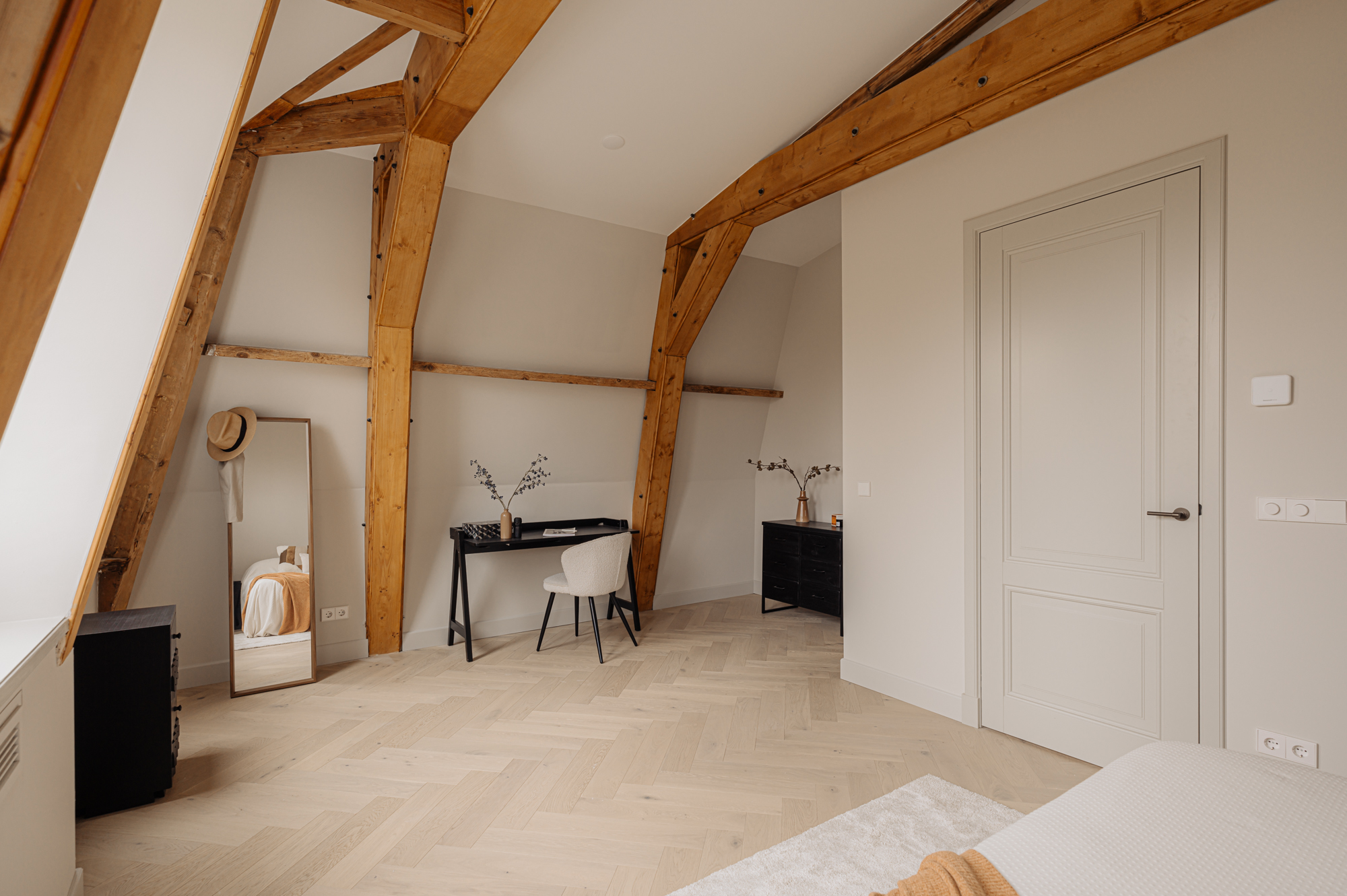 Los dormitorios, caracterizados por vigas originales y generosas dimensiones, ofrecen comodidad y versatilidad. La suite principal cuenta con un lujoso baño en suite, mientras que el segundo baño da servicio tanto a invitados como a residentes. Entre las características modernas destacan un sistema de recuperación de calor, aire acondicionado, calefacción por suelo radiante integral y aislamiento avanzado para máxima eficiencia energética. Hay opción de aparcamiento privado en el edificio y la propiedad es de libre dominio con una asociación profesionalmente gestionada. Servicios, cafeterías, boutiques y zonas verdes como Sarphatipark se encuentran a poca distancia, creando un sofisticado estilo de vida urbano con una tranquilidad inigualable.