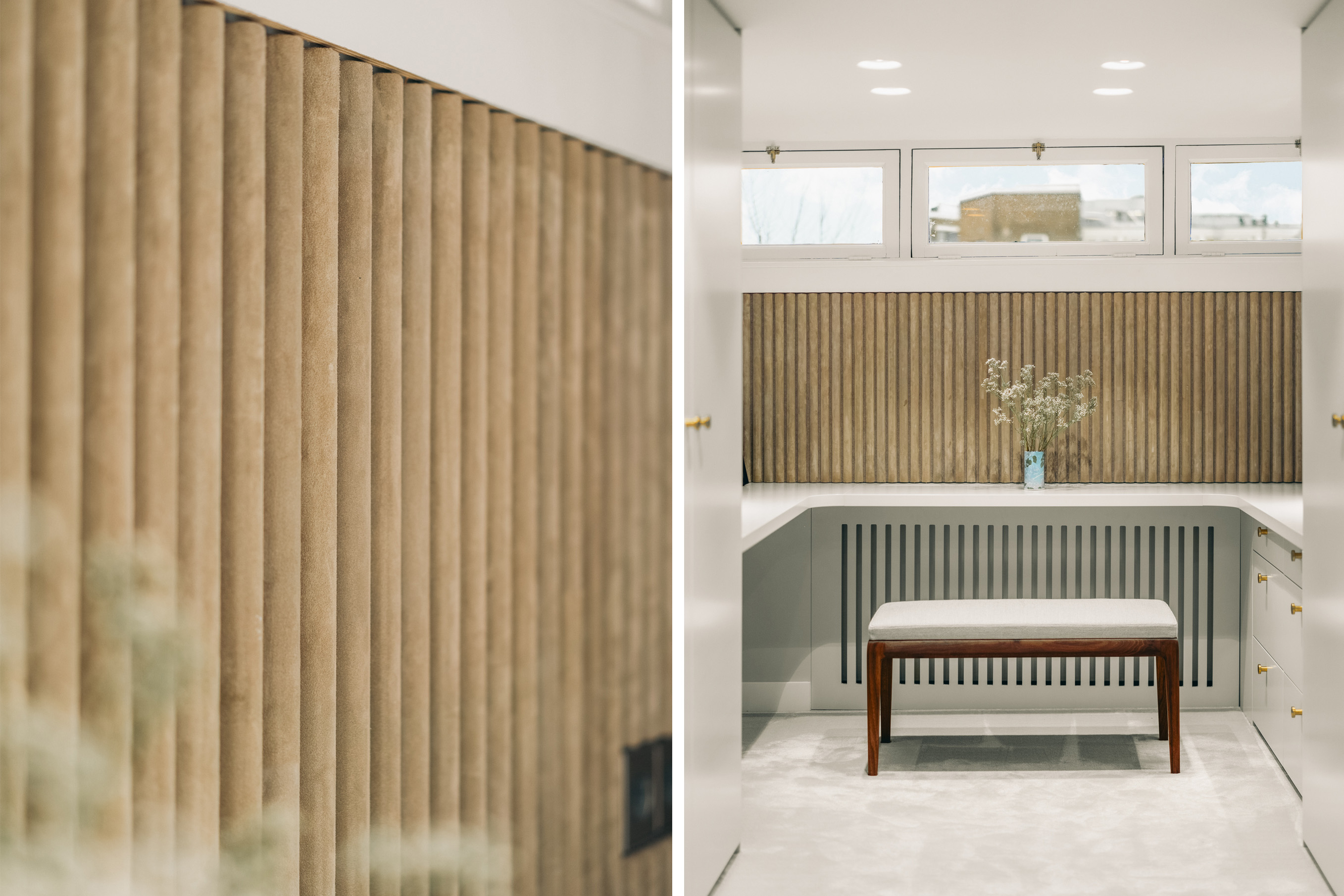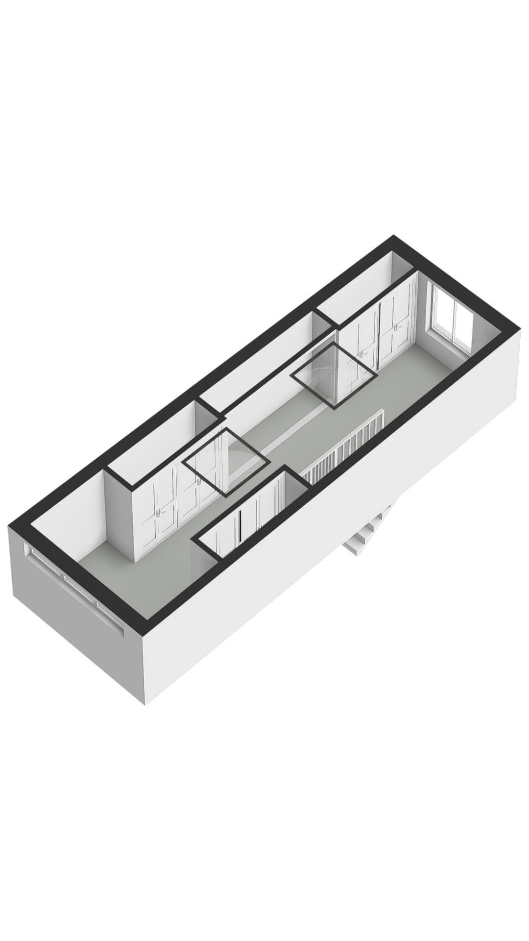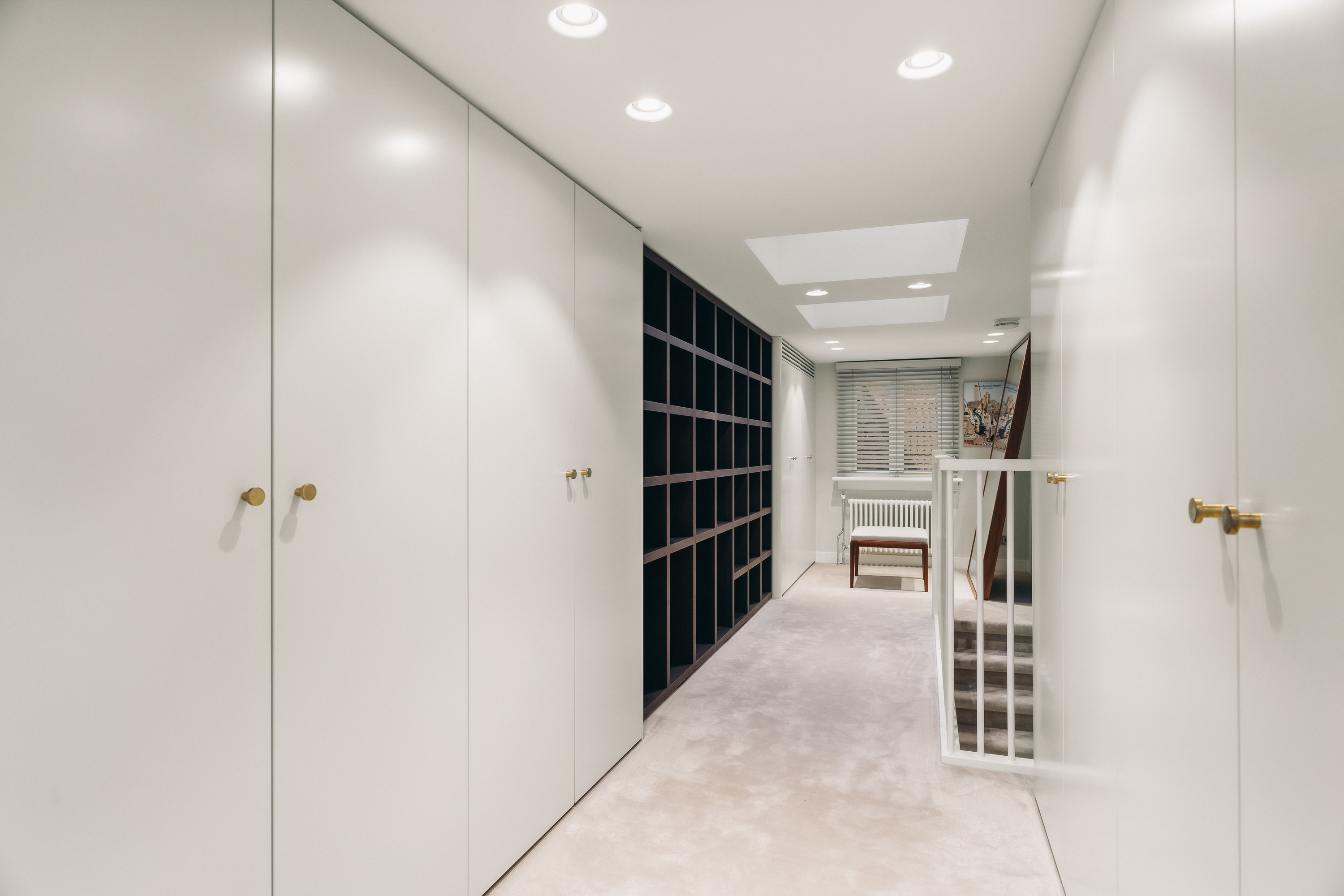 En la planta sótano, se encuentra una zona de estar sosegada con almacenaje hecho a medida en madera noble y una amplia sala de servicios equipada para las necesidades cotidianas. Subiendo, la primera planta presenta un elegante salón caracterizado por ventanales amplios y una pared revestida en nogal, ideal para exposición o trabajo. En las plantas superiores se encuentra un dormitorio espacioso, baño revestido en travertino con suelo radiante y un vestidor luminoso gracias a un tragaluz y acondicionado con aire.