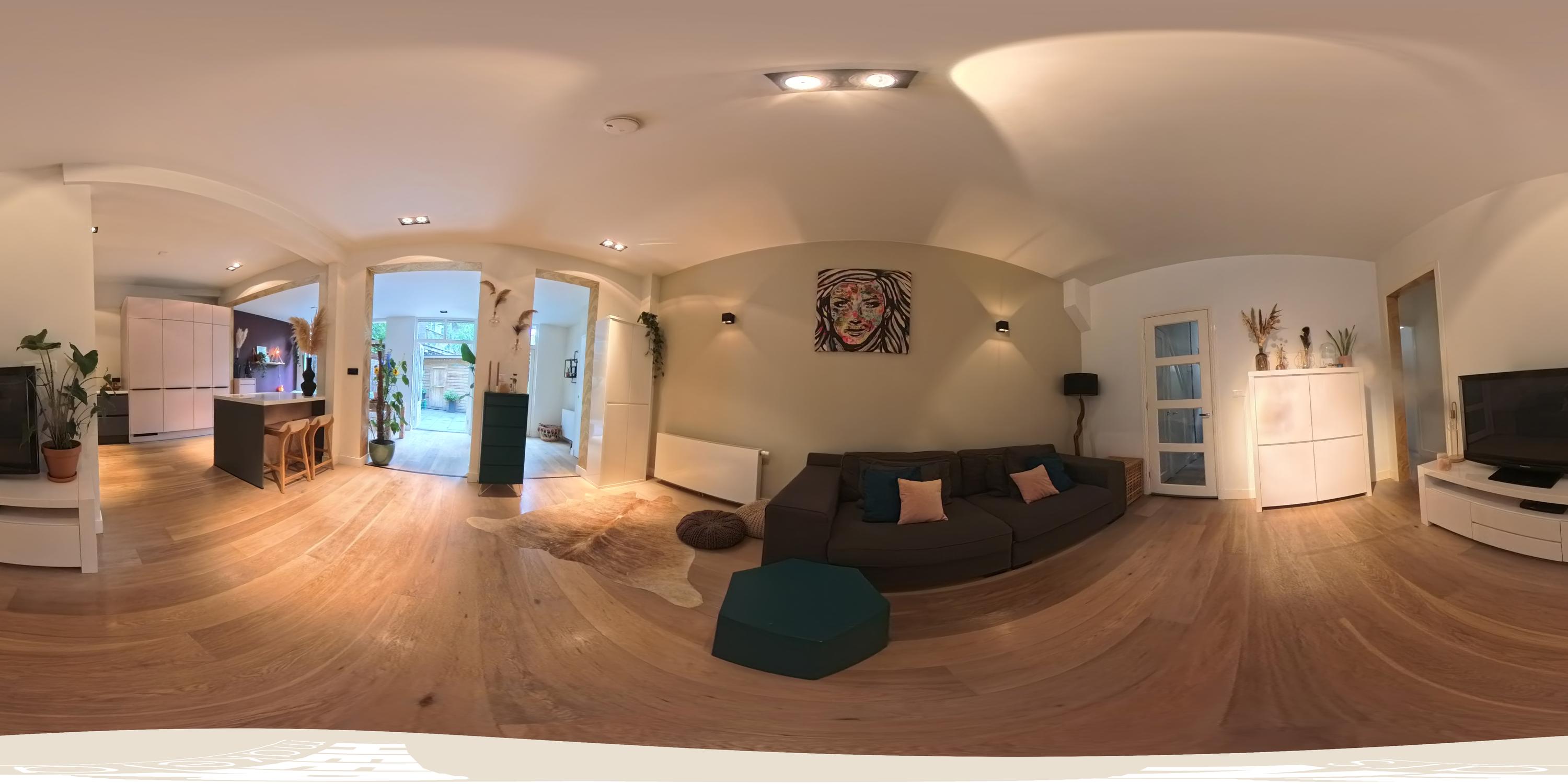 La distribución presenta un generoso espacio de estar y una cocina abierta equipada con isla, electrodomésticos modernos como placa de gas de cinco fuegos, horno combinado, lavavajillas, frigorífico-congelador, congelador adicional y Quooker. Dispone de tres dormitorios y un baño central con bañera, lavabo doble y ducha a ras de suelo. Los techos altos de aproximadamente 3 metros en la mayoría de las estancias refuerzan la sensación de amplitud y luminosidad.