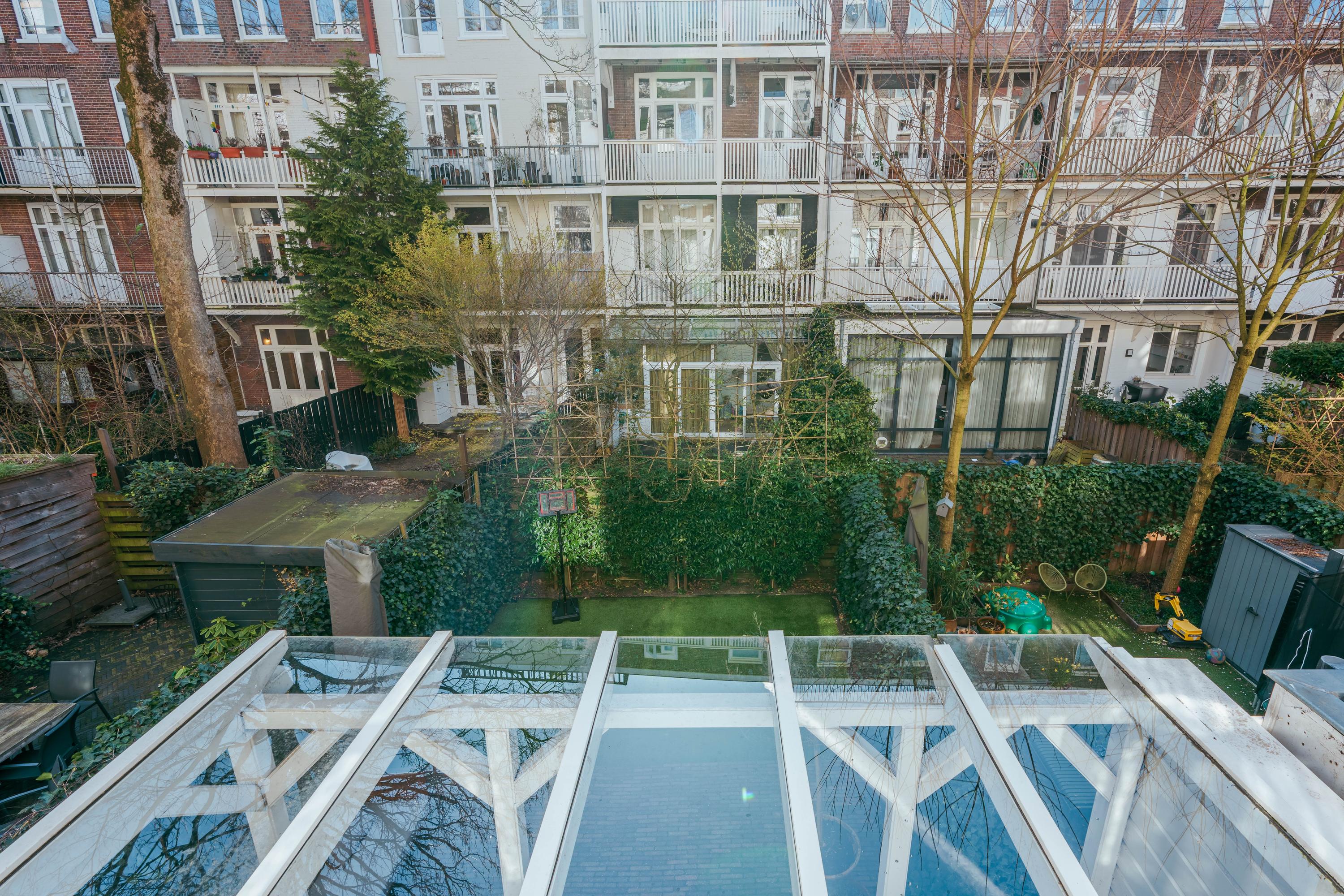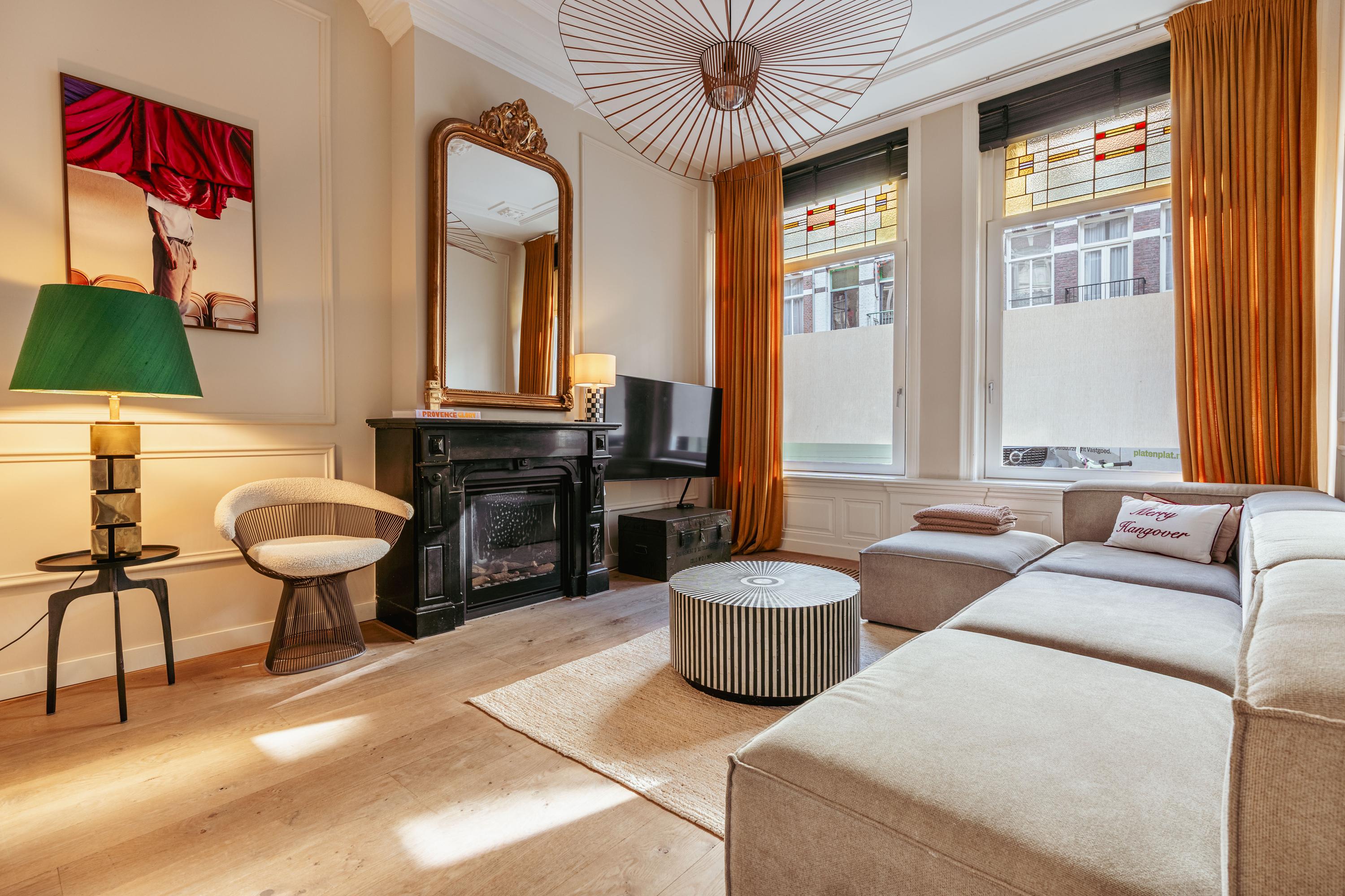 Este apartamento dúplex en planta baja en Ámsterdam combina el carácter clásico con el confort contemporáneo en el corazón de Helmersbuurt. Con una superficie de 124 m², la vivienda destaca detalles auténticos—vidrieras, molduras ornamentadas en el techo, chimeneas y paneles de madera—sin renunciar a las comodidades modernas. La generosa zona de estar y comedor en suite recibe abundante luz natural a través de grandes ventanales y puertas francesas, conectando de manera fluida con un jardín orientado al sureste de 61 m² que incluye una terraza cubierta. La cocina, abierta y elevada, aporta una sensación de amplitud y cuenta con roble oscuro, electrodomésticos integrados y acceso directo al jardín—perfecto para desayunos tranquilos o veladas llenas de ambiente.