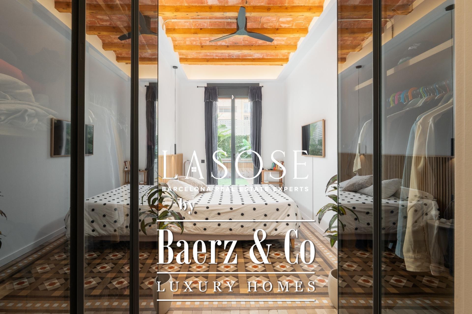 Tres dormitorios se disponen en la zona de noche, poniendo en valor los tradicionales techos abovedados catalanes. La suite principal cuenta con vestidor tras puertas de cristal y baño en suite; el segundo dormitorio ofrece un rincón de estudio. Ambos espacios abren a una terraza orientada al sureste, equipada con toldo eléctrico y bañera exterior. Ventanas con triple acristalamiento, climatización por conductos y suelos de parquet de alta calidad garantizan un ambiente sereno y confortable.